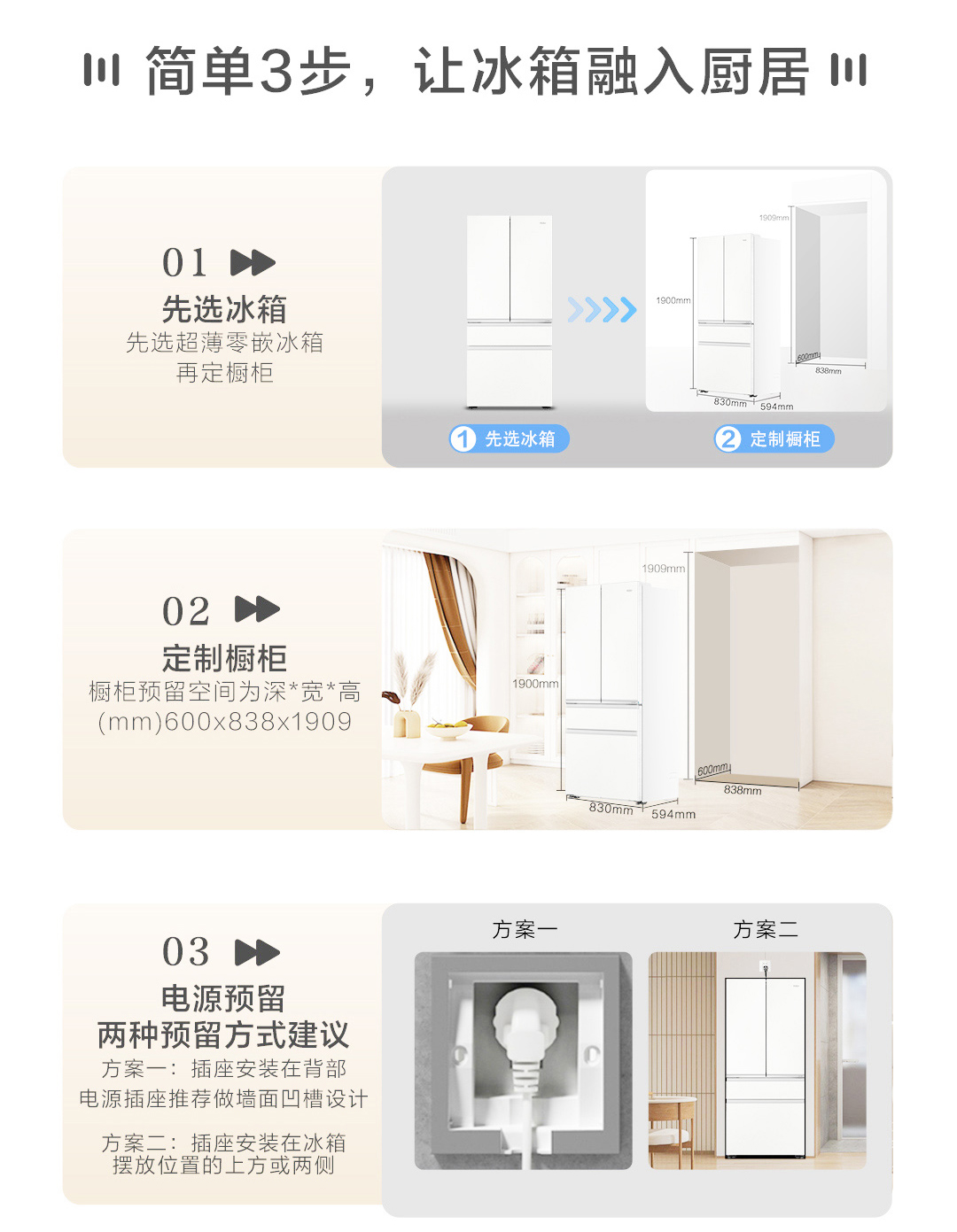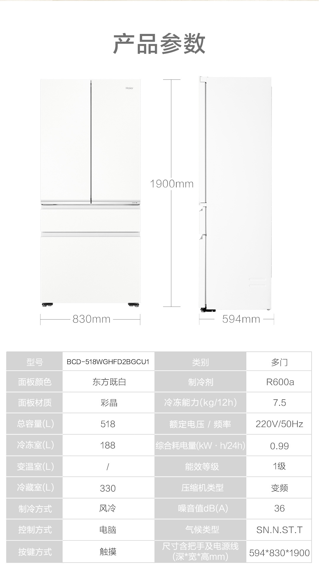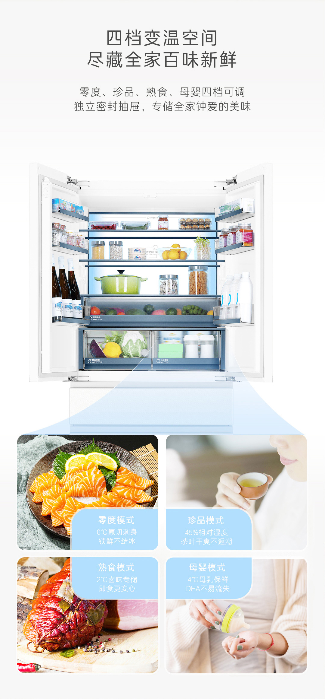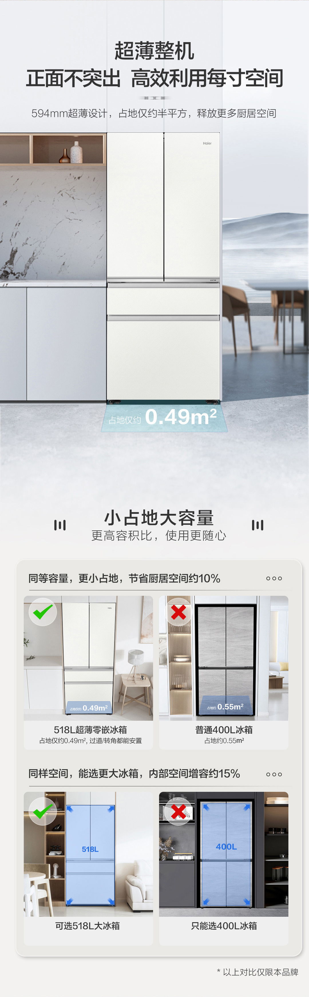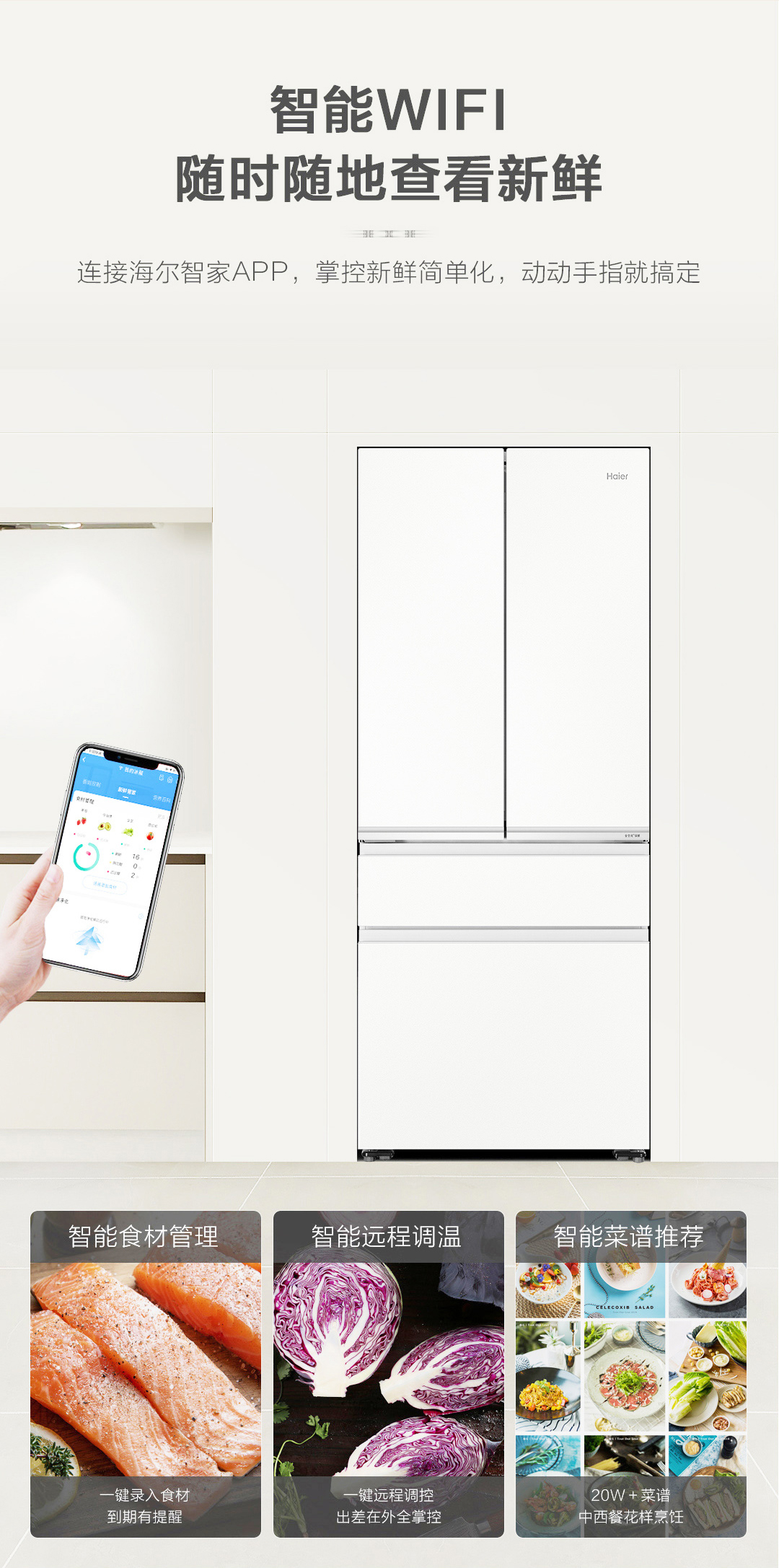 海尔冰箱518L超薄594mm零嵌法式开门冰箱 全空间保鲜干湿分储EPP净味除菌一级变频风冷无霜智能冰箱