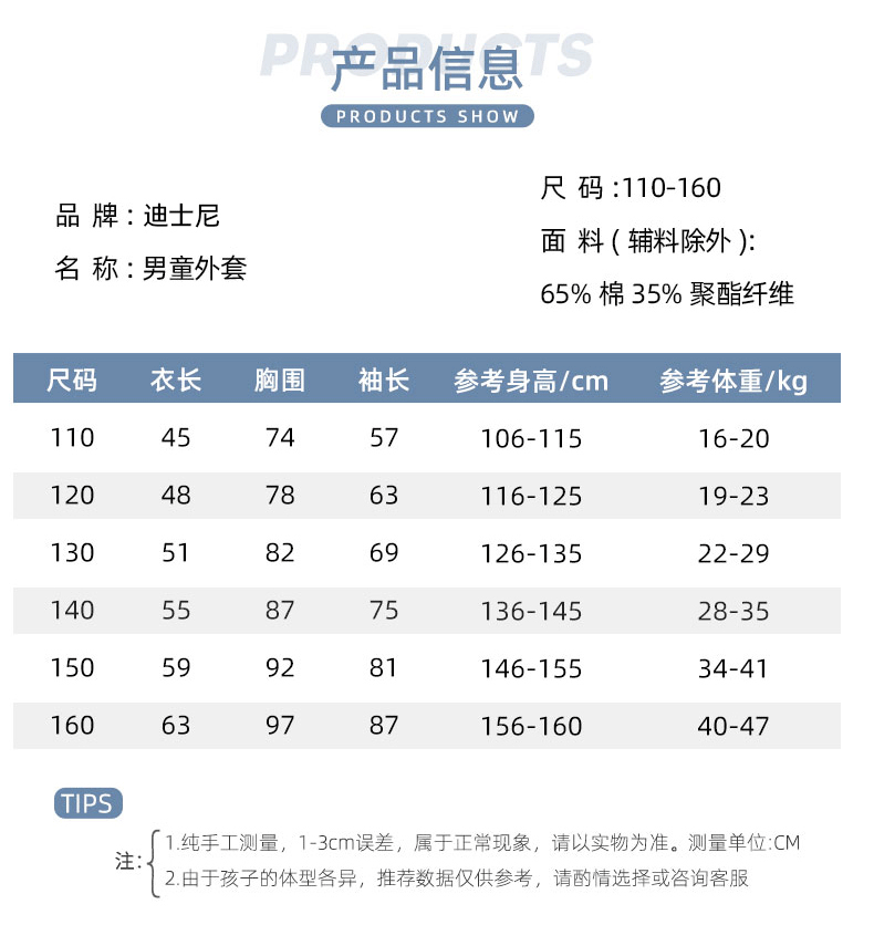 Disney/迪士尼XH儿童羽绒服男女童连帽冲锋外套XME3SW517
