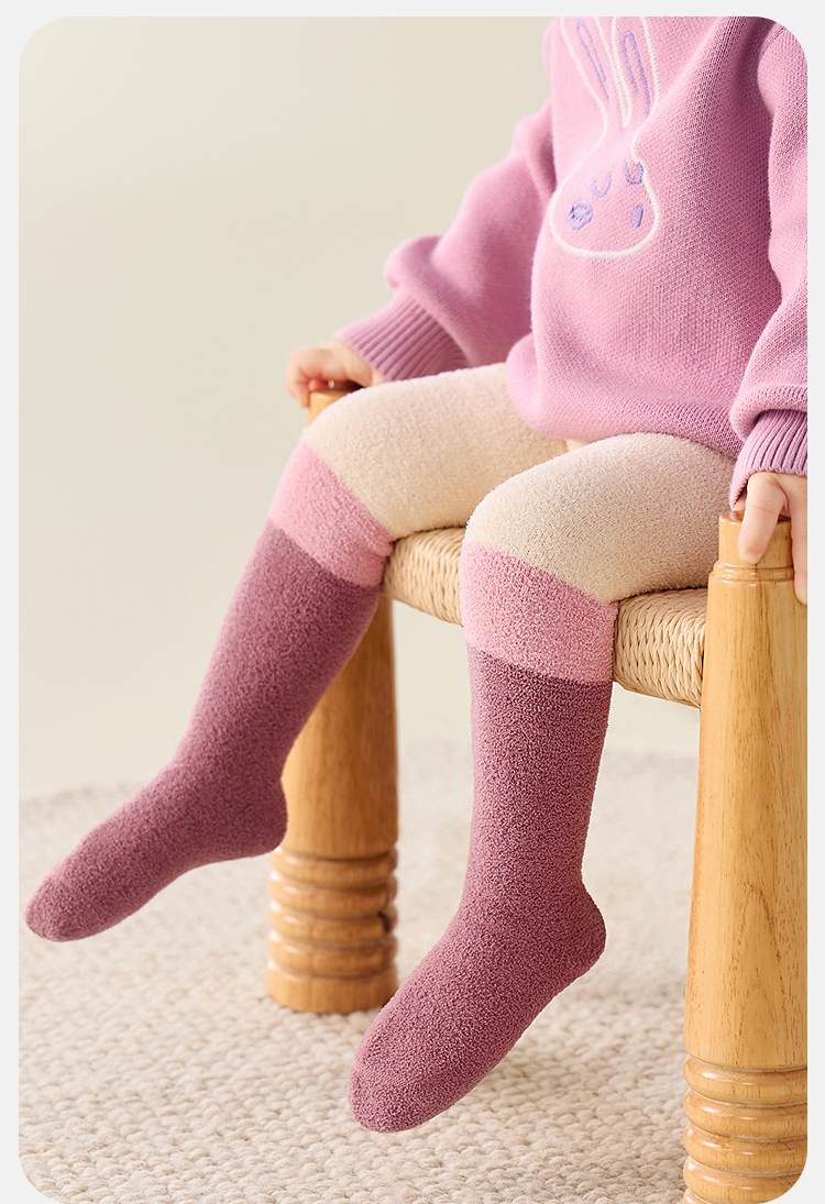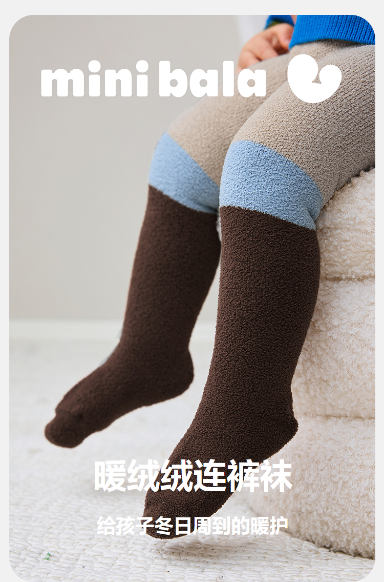 迷你巴拉冬新款男女童毛绒连裤袜宝宝亲肤棉感保暖拼色打底袜