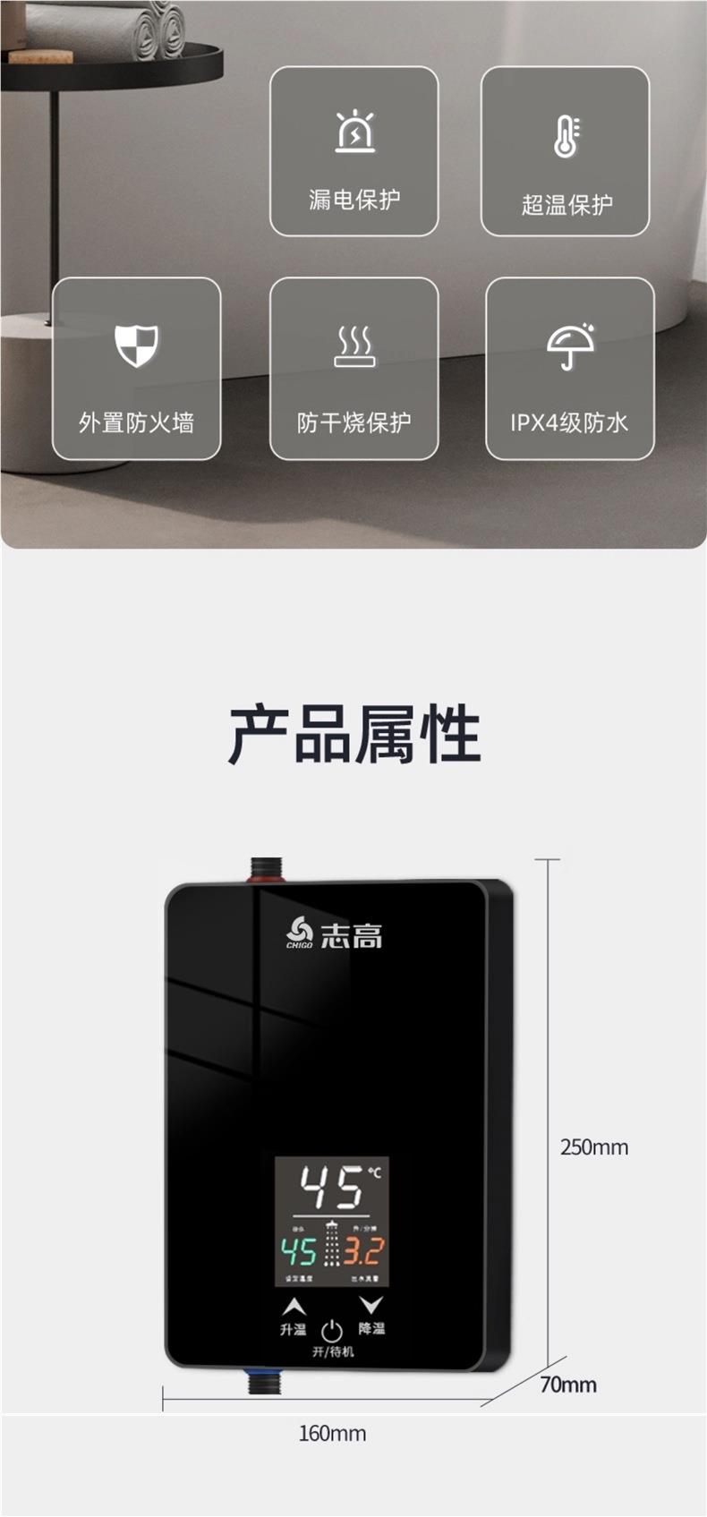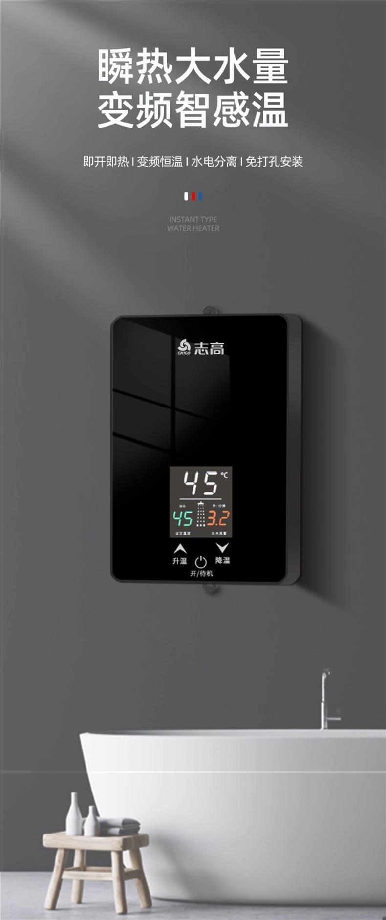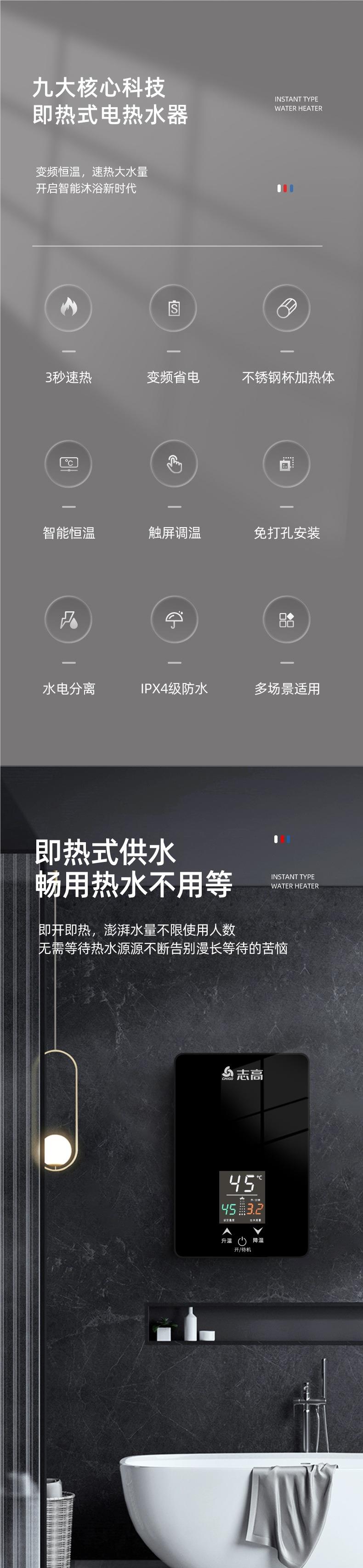 志高即热式电热水器租房小型家用卫生间浴室速热恒温加热器洗澡