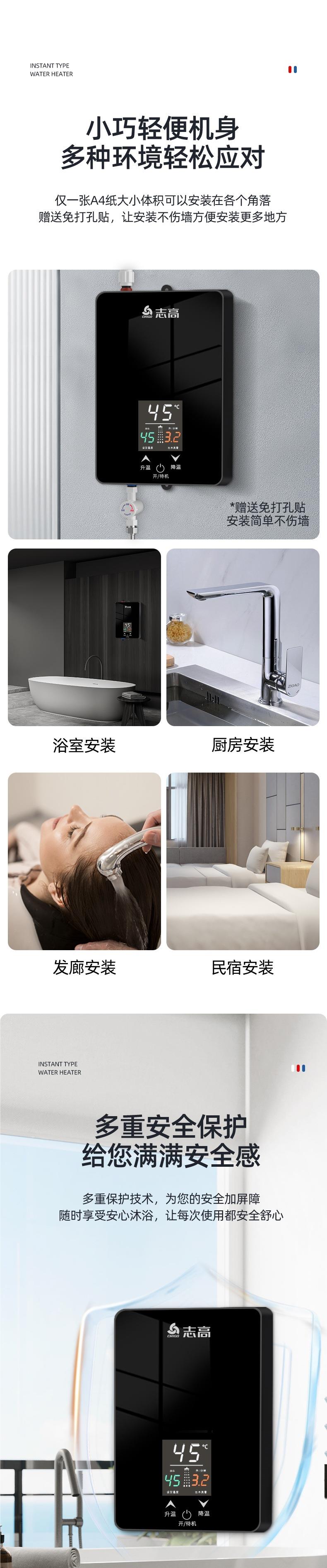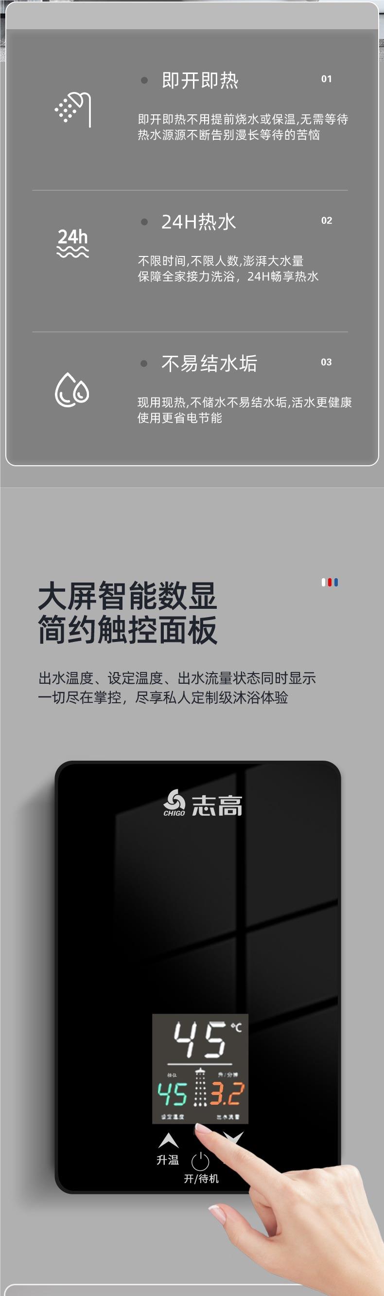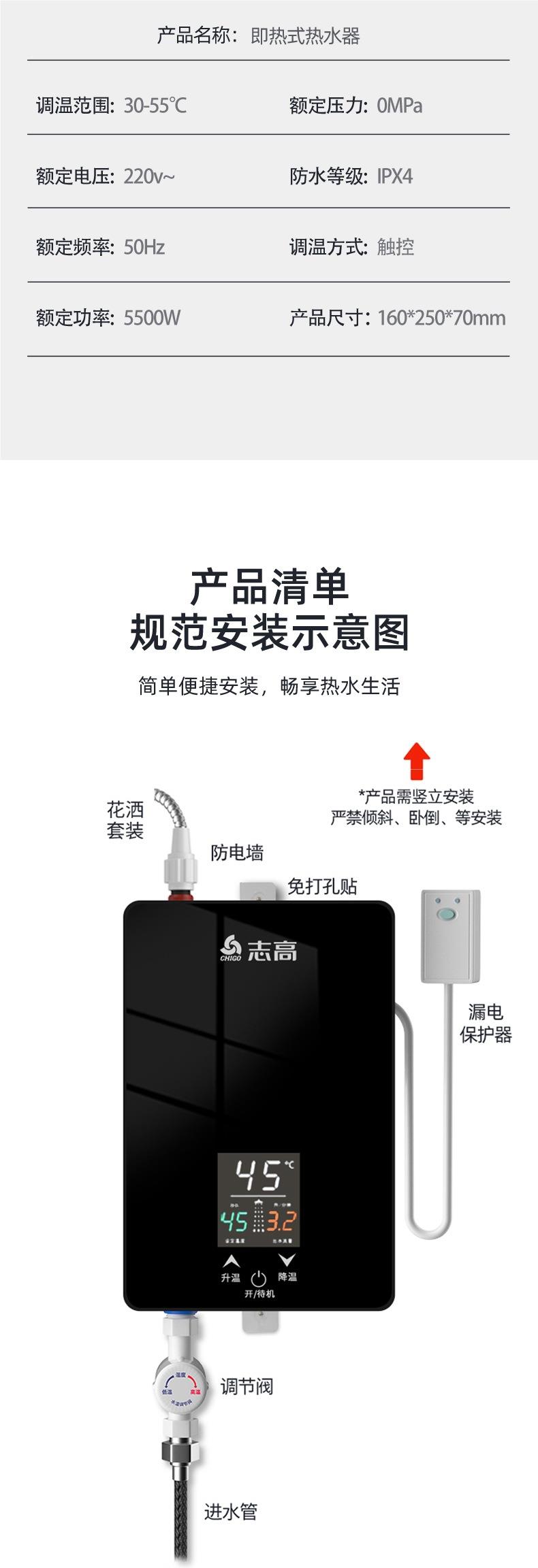 志高即热式电热水器租房小型家用卫生间浴室速热恒温加热器洗澡