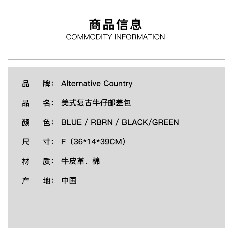 Alternative Country MTMN 美式复古牛仔邮差包