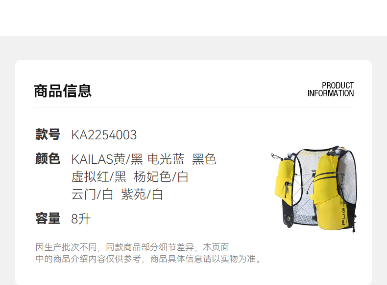 Kailas凯乐石 户外运动 FUGA·AIR 8 II 跑山背包 KA2254003主【Z】