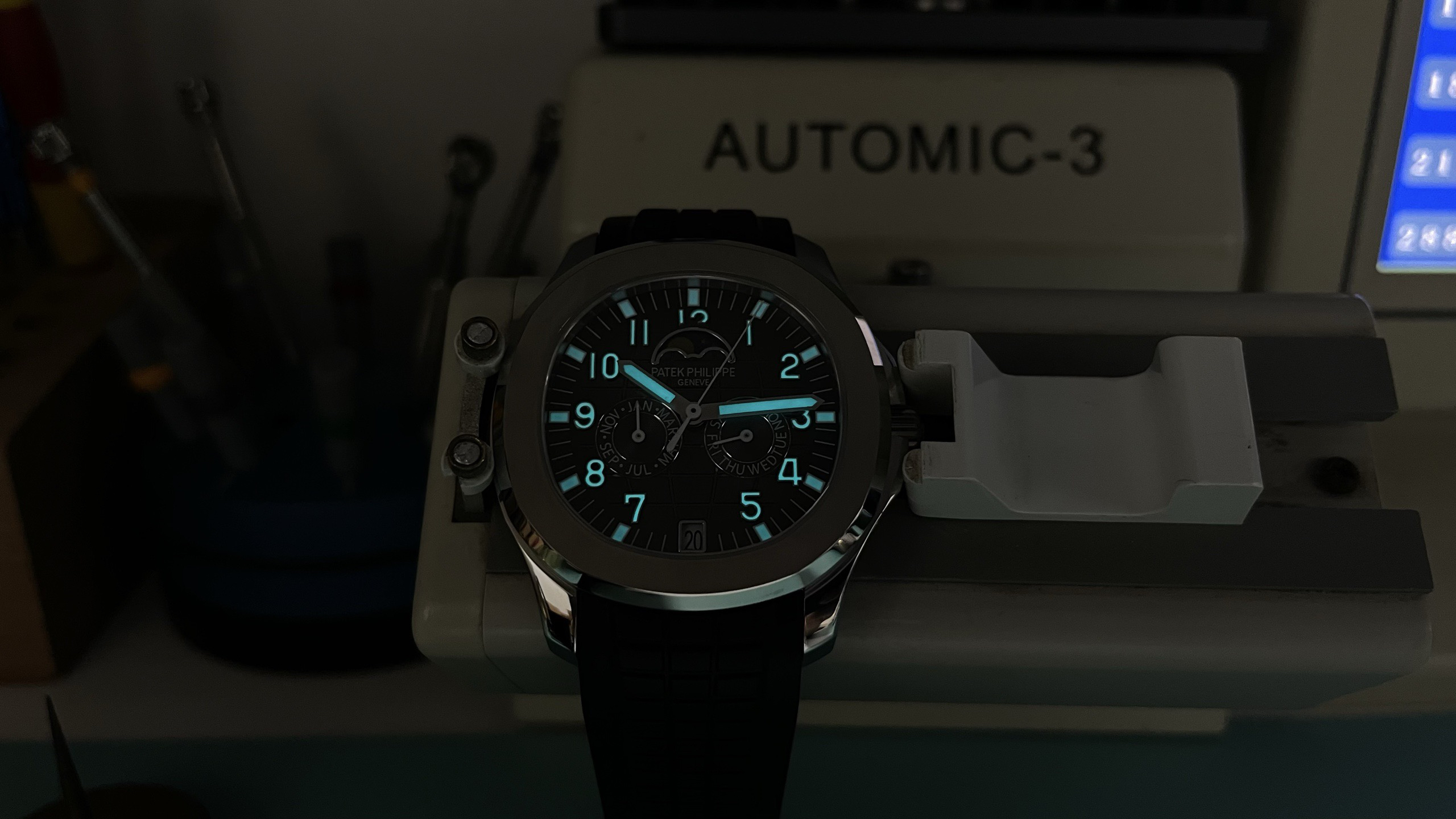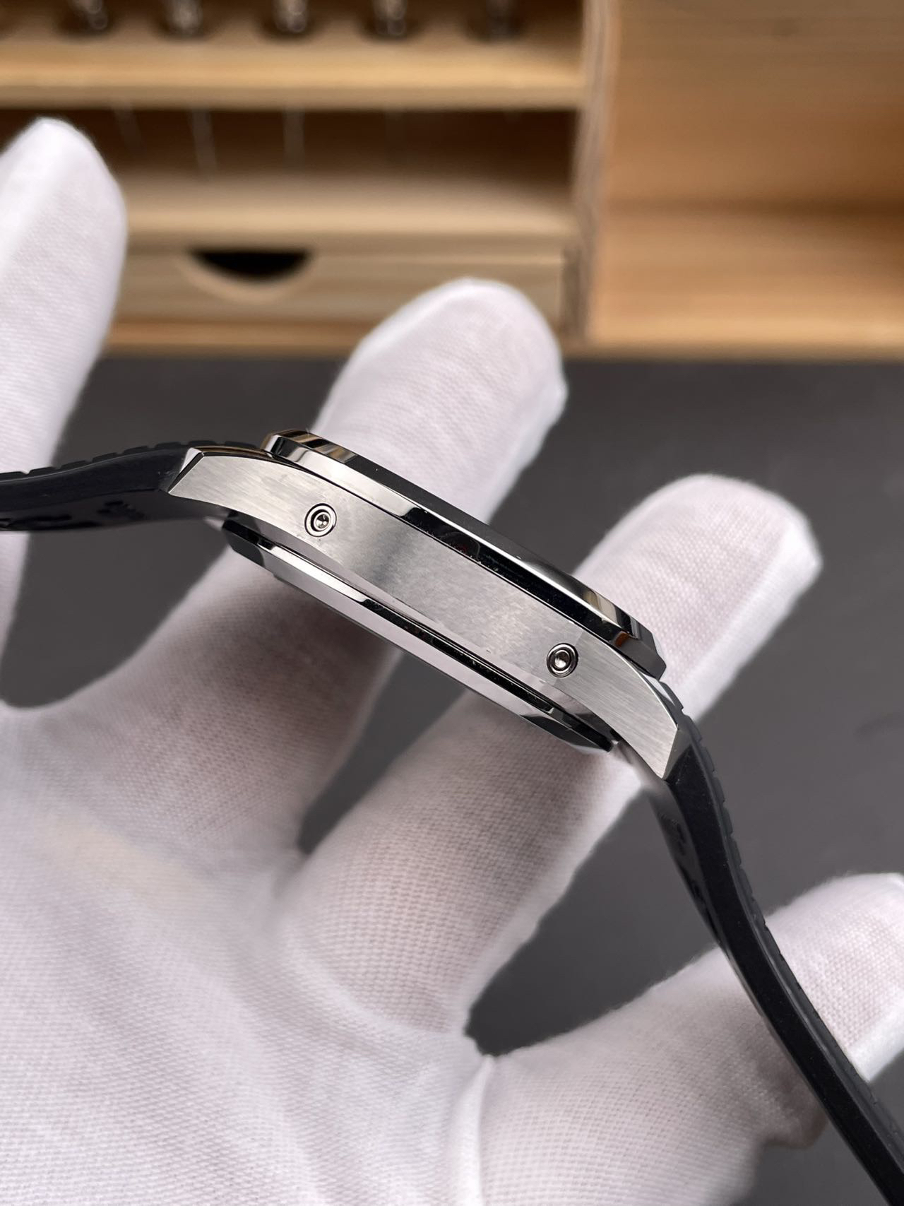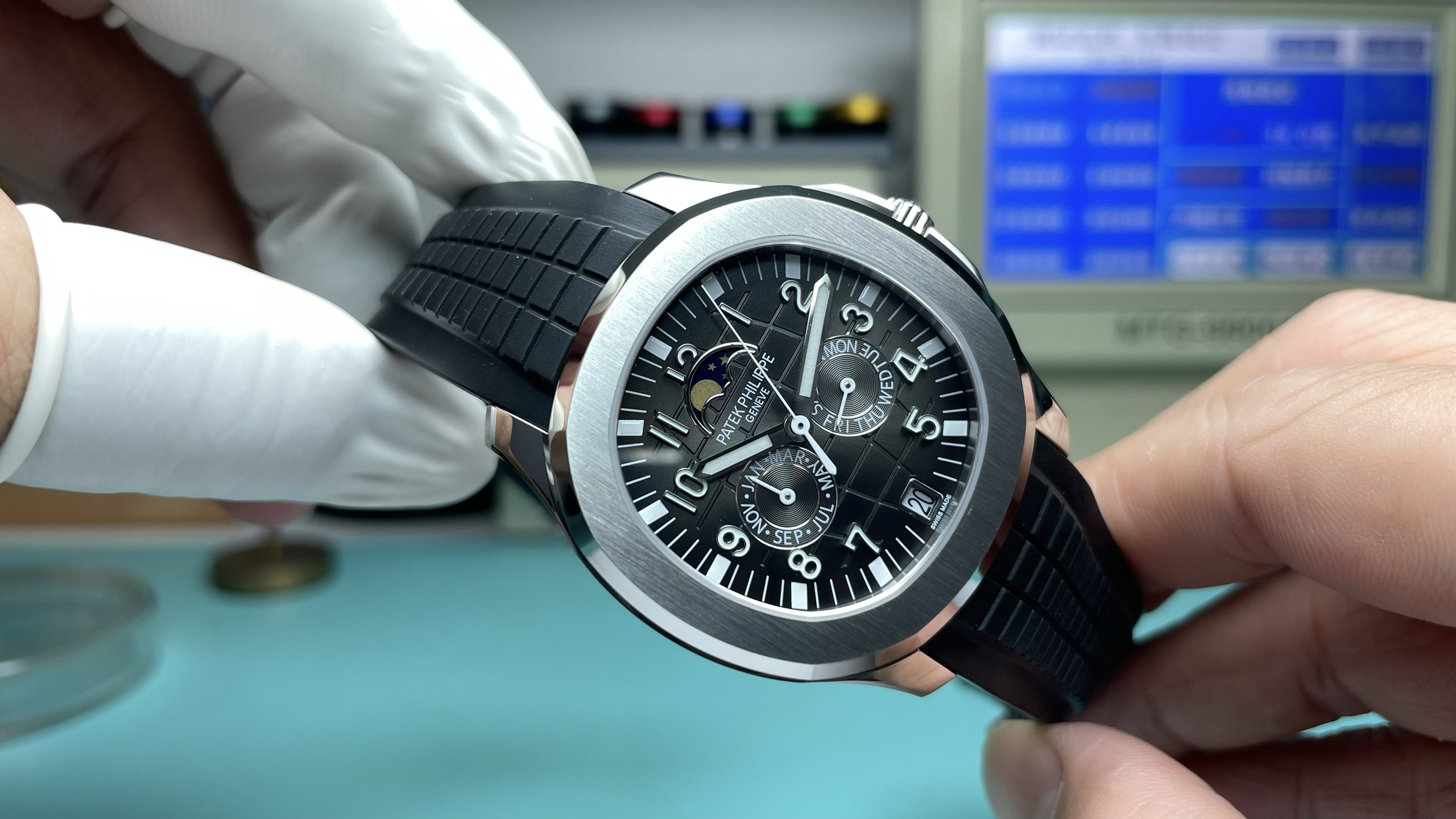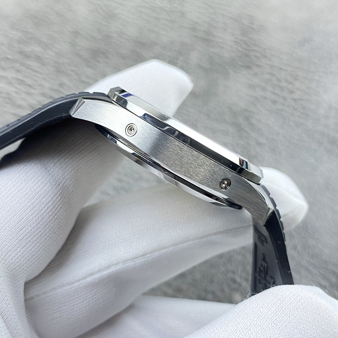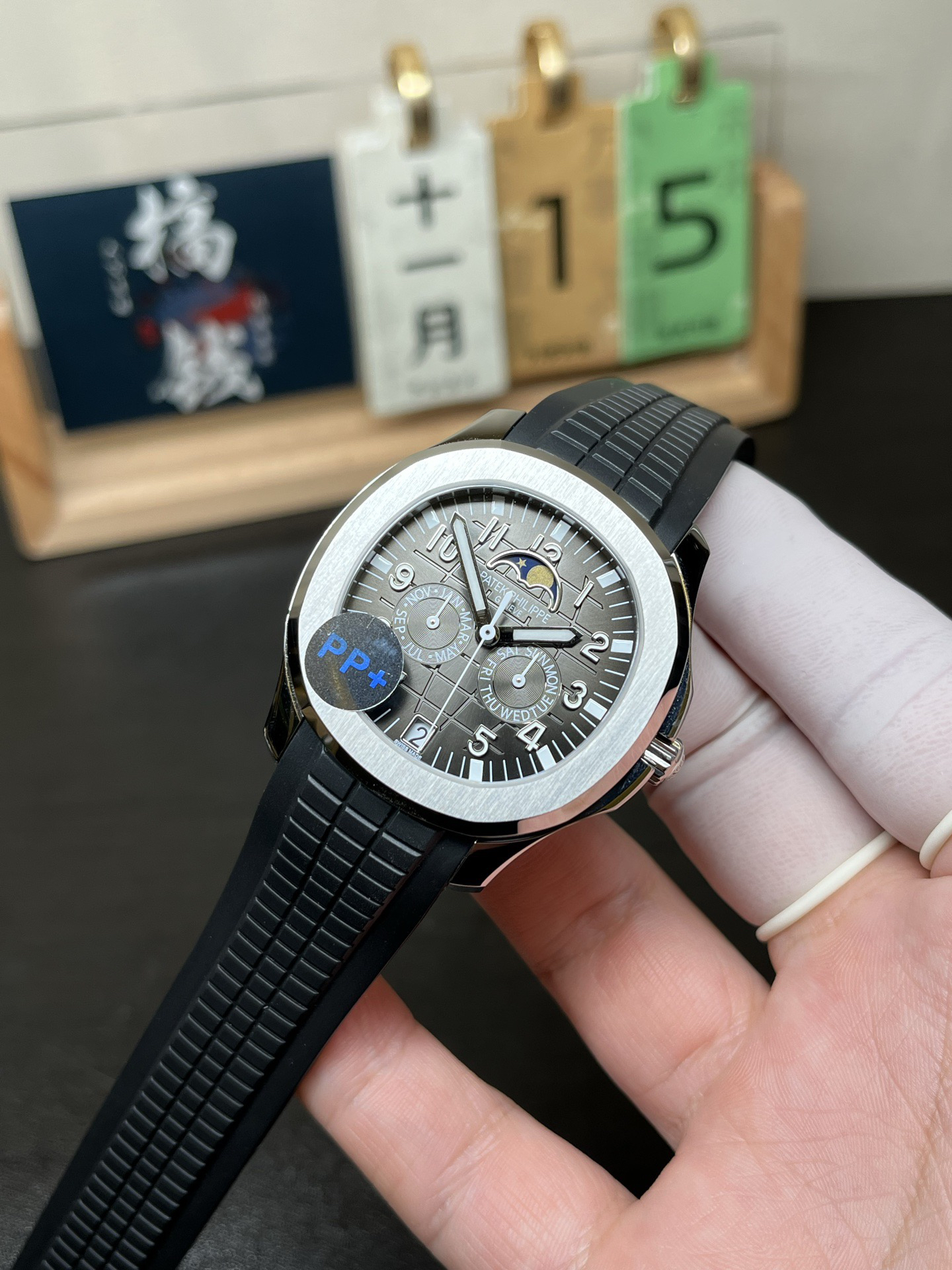 The case and bezel adopt the iconic circular octagonal shape, combined with contrasting polishing and satin processing. The gray blue dial and strap are adorned with Aquanaut relief patterns, Arabic lettering blocks, and Barton style hands, all coated with white fluorescent coating, making it easy to read at a glance. Identify the quality of PPF factory, one meter, one card, three codes in one