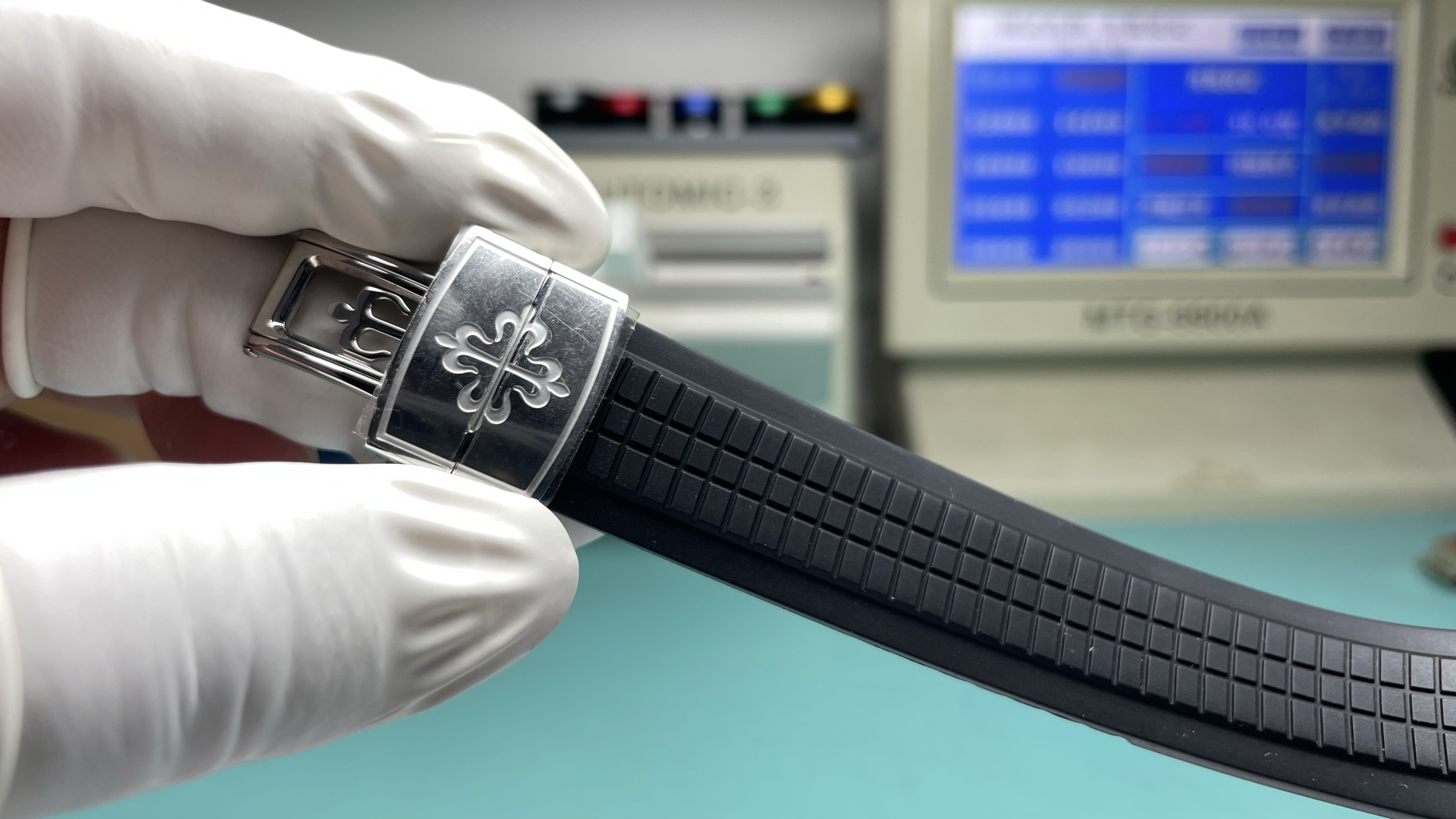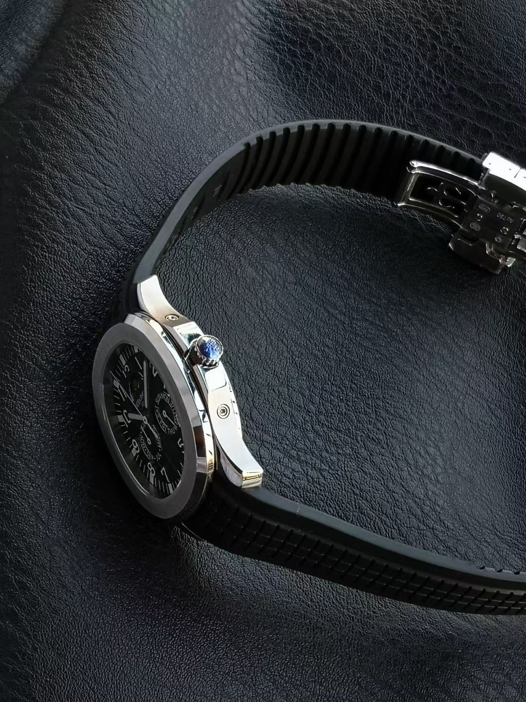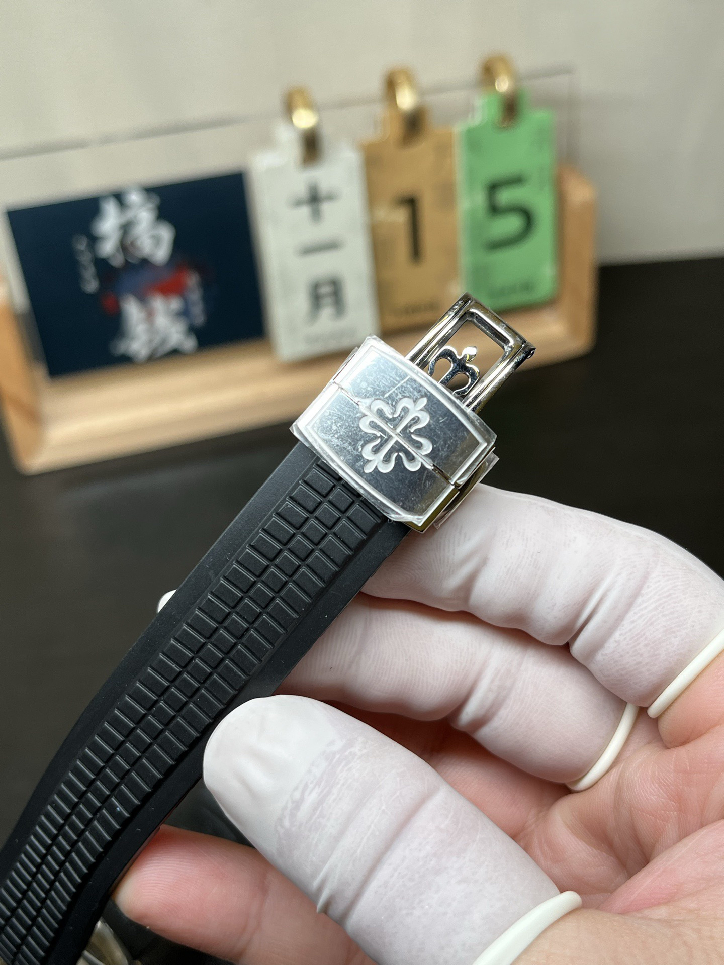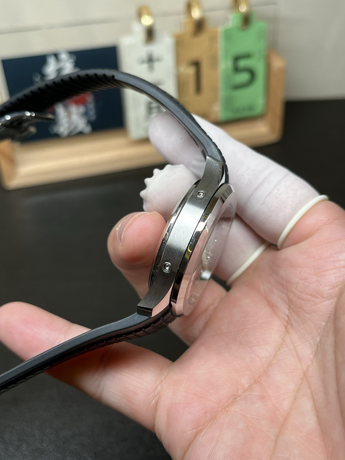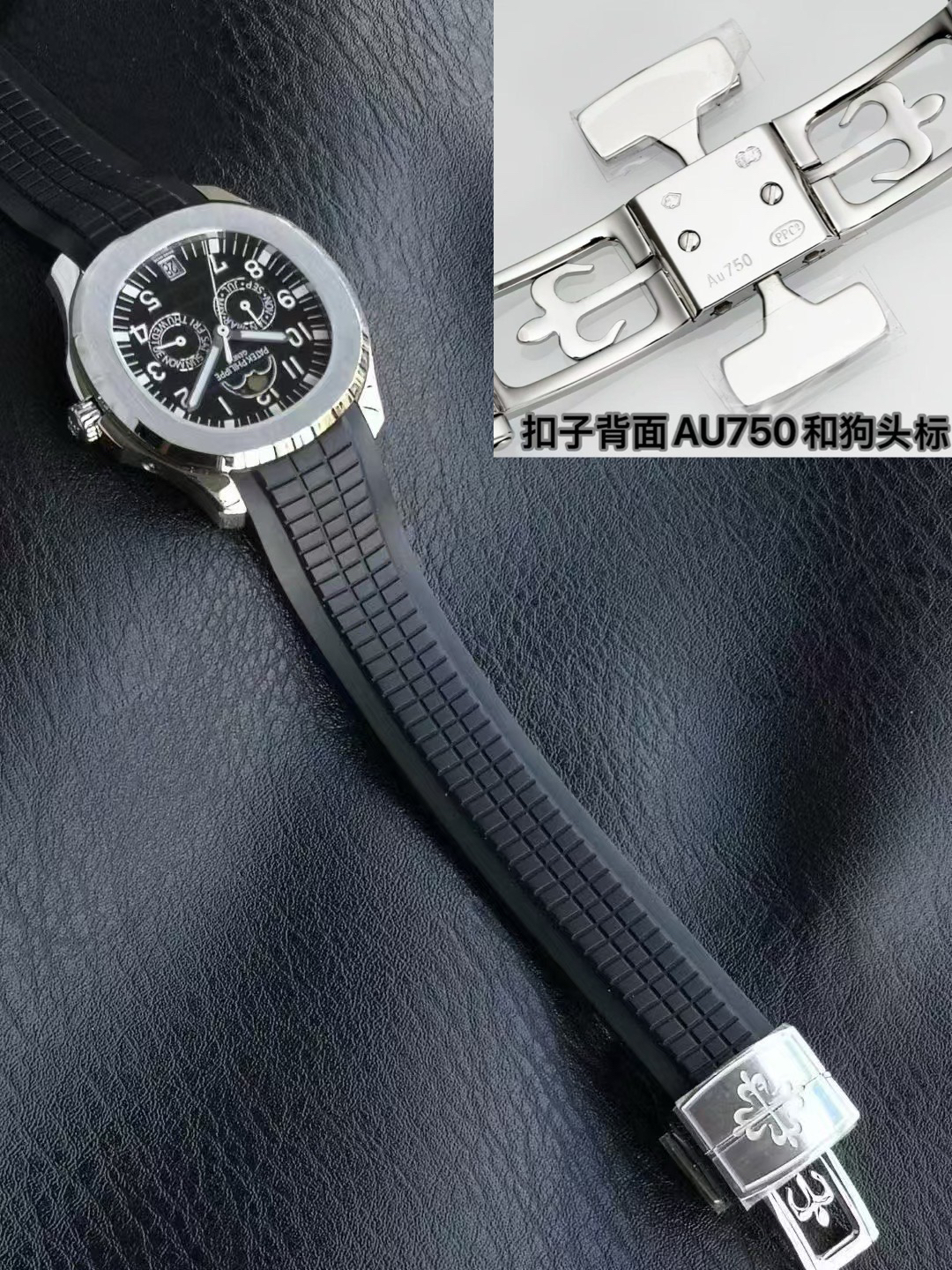 one ️⃣ The original version of the fluororubber strap is molded, comfortable to wear, and suitable for all day use. The customized fluororubber strap is soft and skin friendly, with upgraded wear resistance and durability; Folding clasp with one click adjustment, printed with clear precious metal identification marks on the back of the clasp, and featuring a St. Bernard dog head 🐶 Contour balance ⚖️ identification. Au750 digits PPC logo, sapphire glass, seamless transition between business and leisure, interpreting the wearing philosophy of "elegant and accompanying".