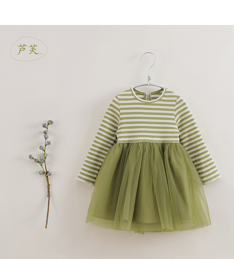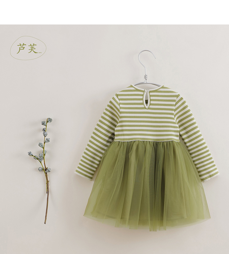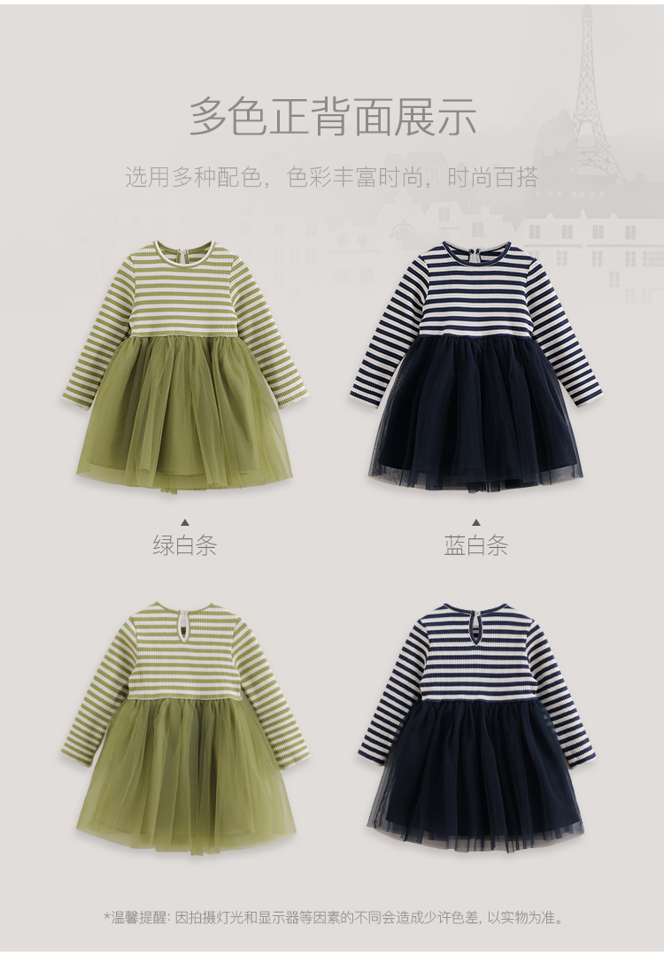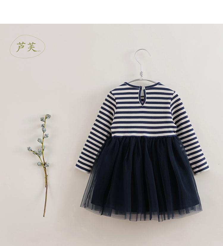 【马克珍妮 芦芙】春装新款 条纹弹力网纱连衣裙230339