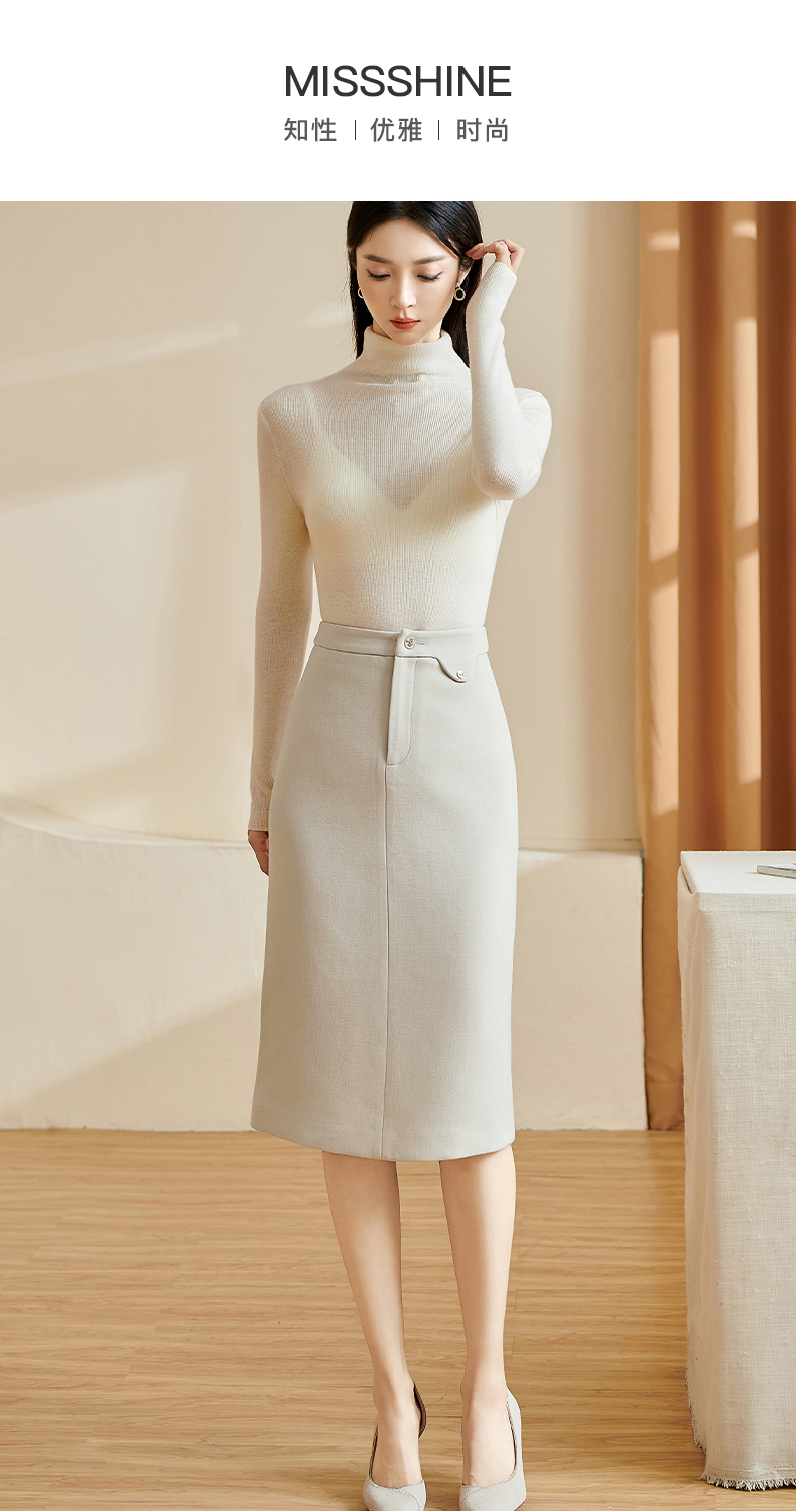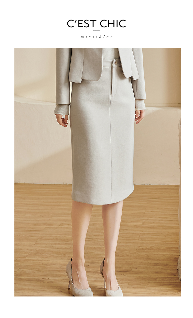 米思阳2026春季新款百搭高级感直筒半身裙高腰开叉纯色一步裙3092