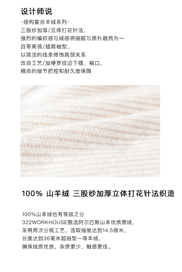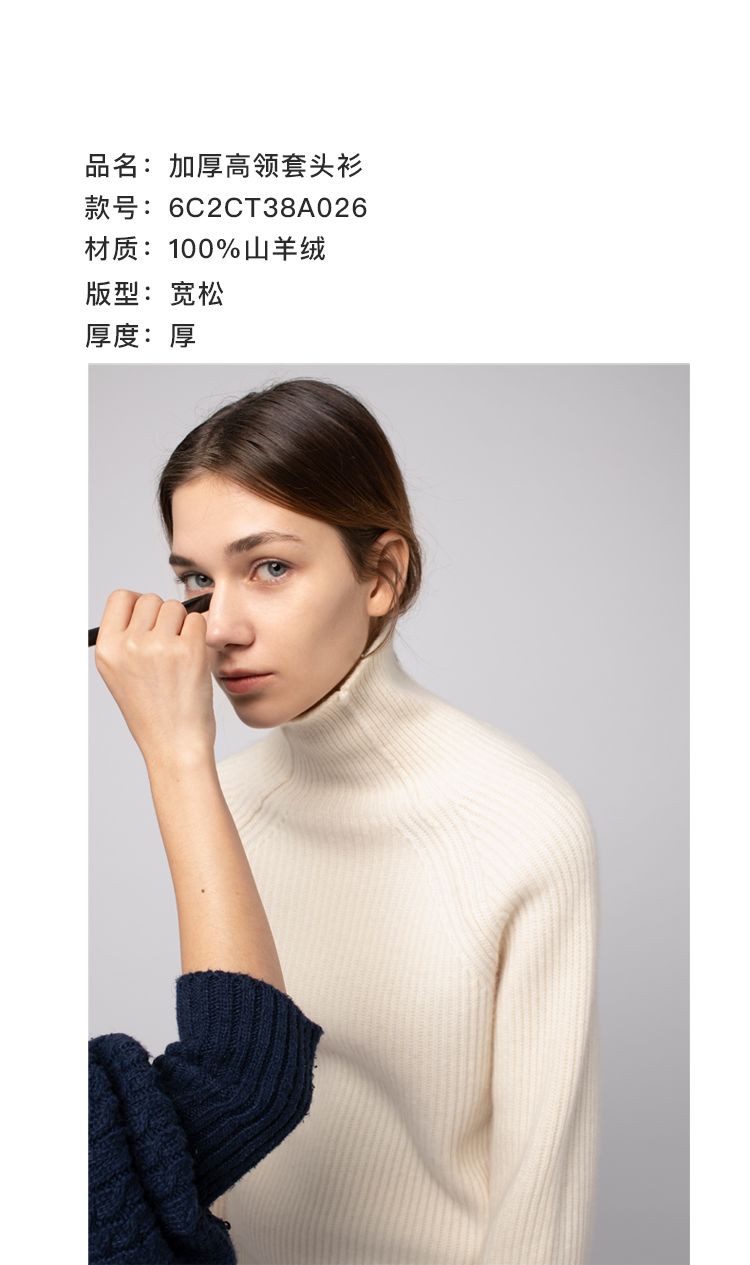 322工房 秋冬新款女士纯山羊绒毛衣打底衫加厚套头宽松高领针织衫
