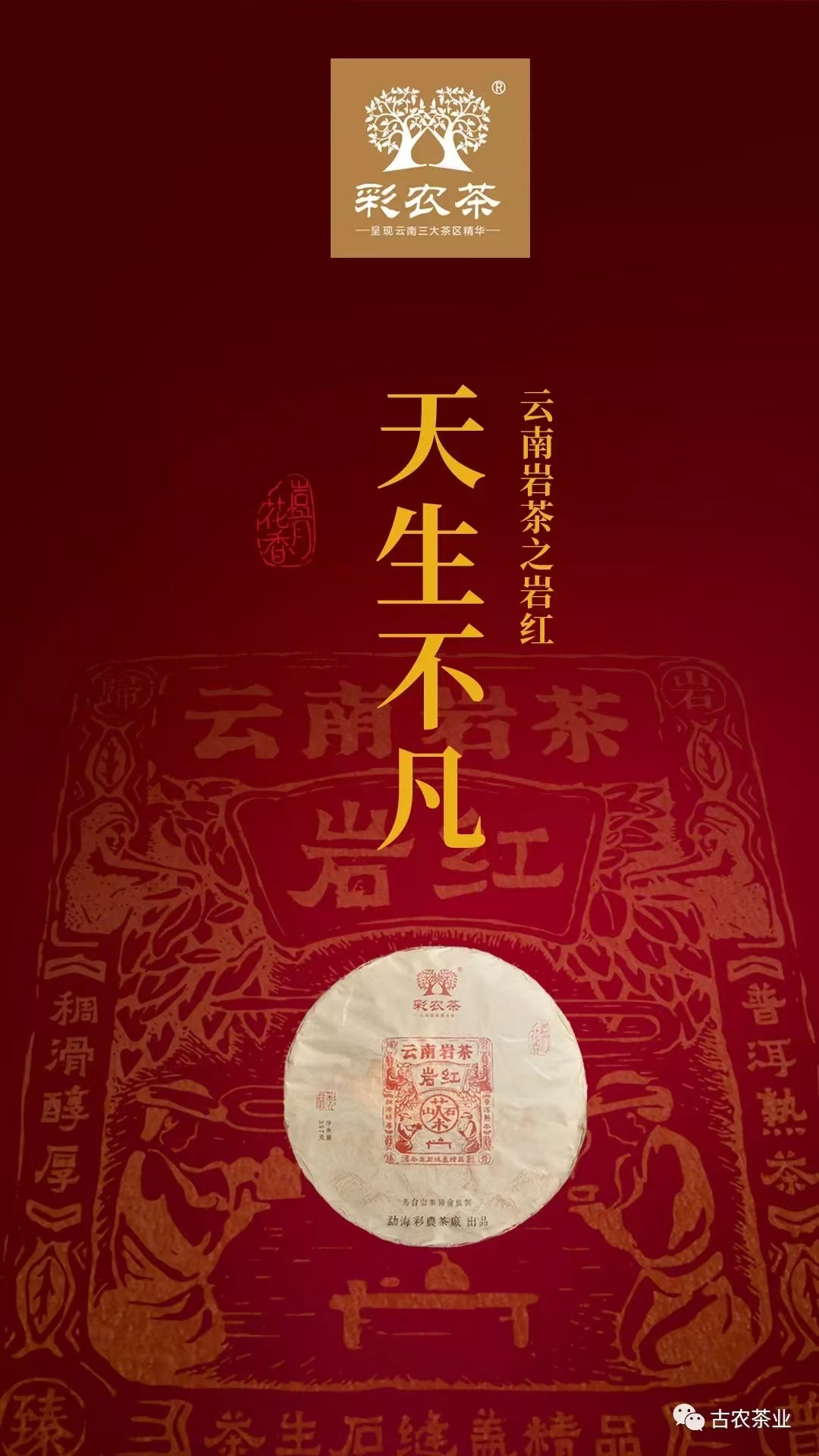 2017年首款云南岩茶·岩红,上市即抢购一空,历经近八年,2025年第二批岩红熟饼,正式上市,原料选自2021年至2024年云南岩茶标准示范基地百年茶石共生的古树茶,于2024年11月20日潮水下堆,彩农茶小篓离地分层精控核心工艺发酵而成。