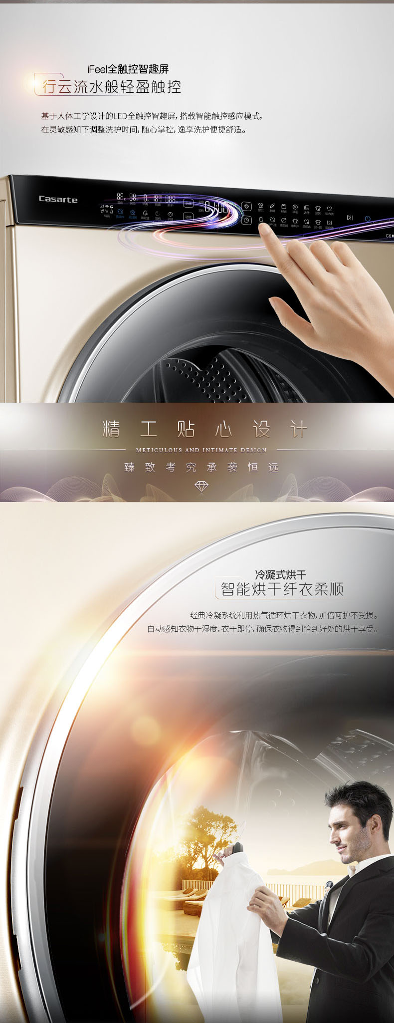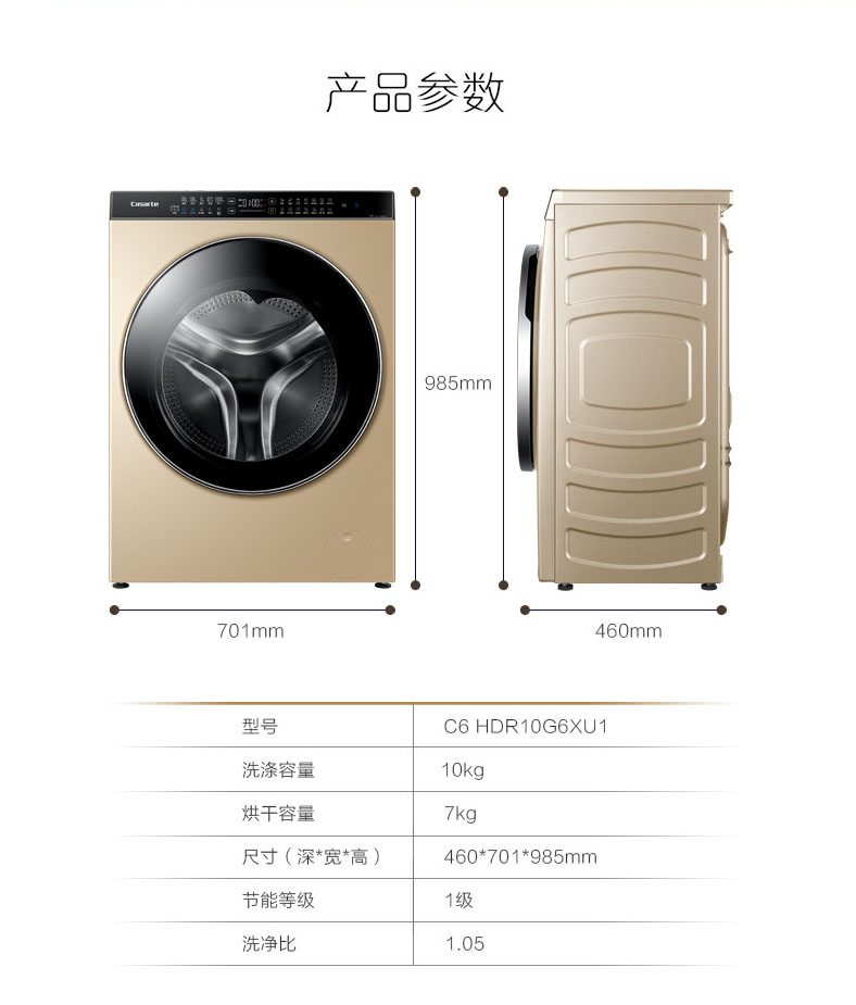 卡萨帝(251684)滚筒洗衣机顶配纤见 洗烘一体 C6 HDR10G6XU1智能面料识别