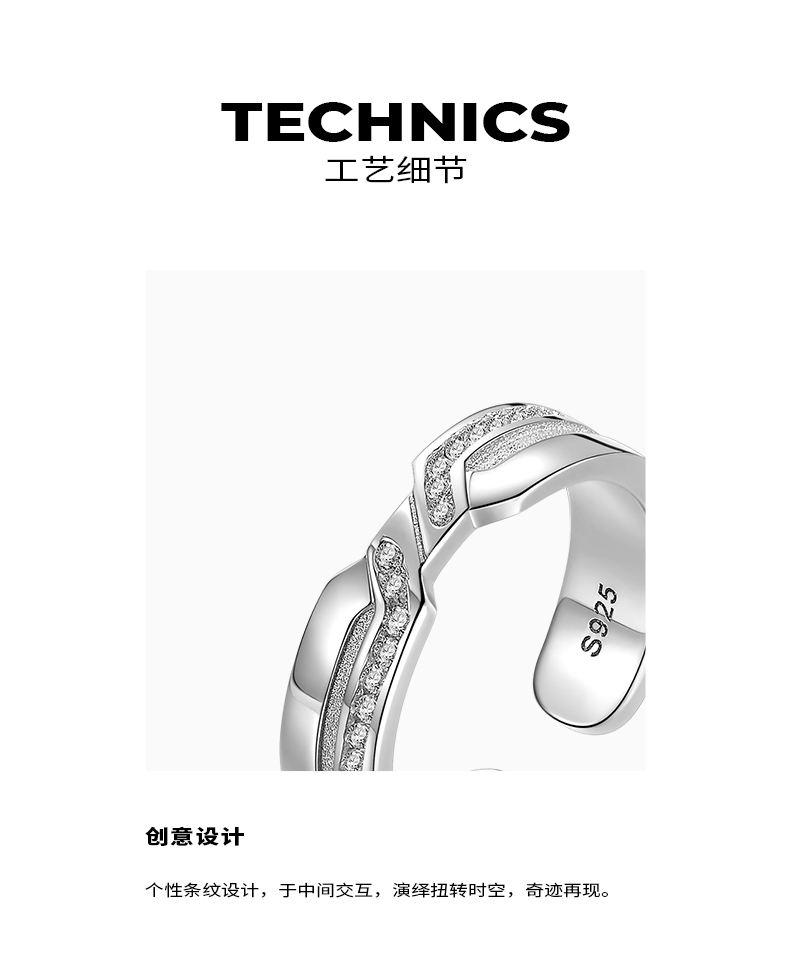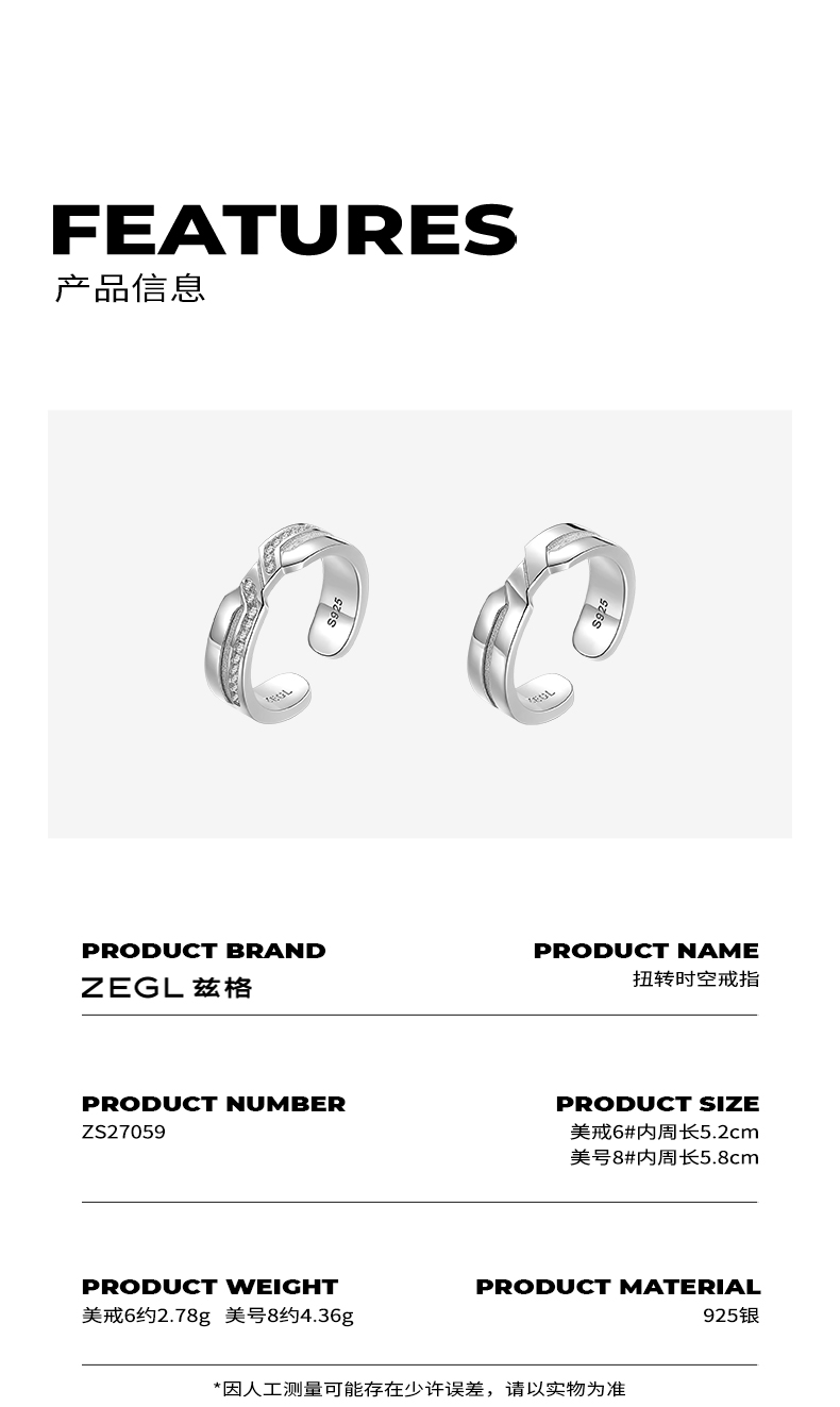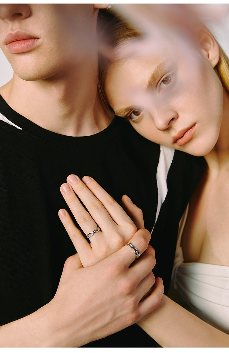 ZEGL设计师925纯银情侣戒指一对男女小众设计指环食指戒个性对戒