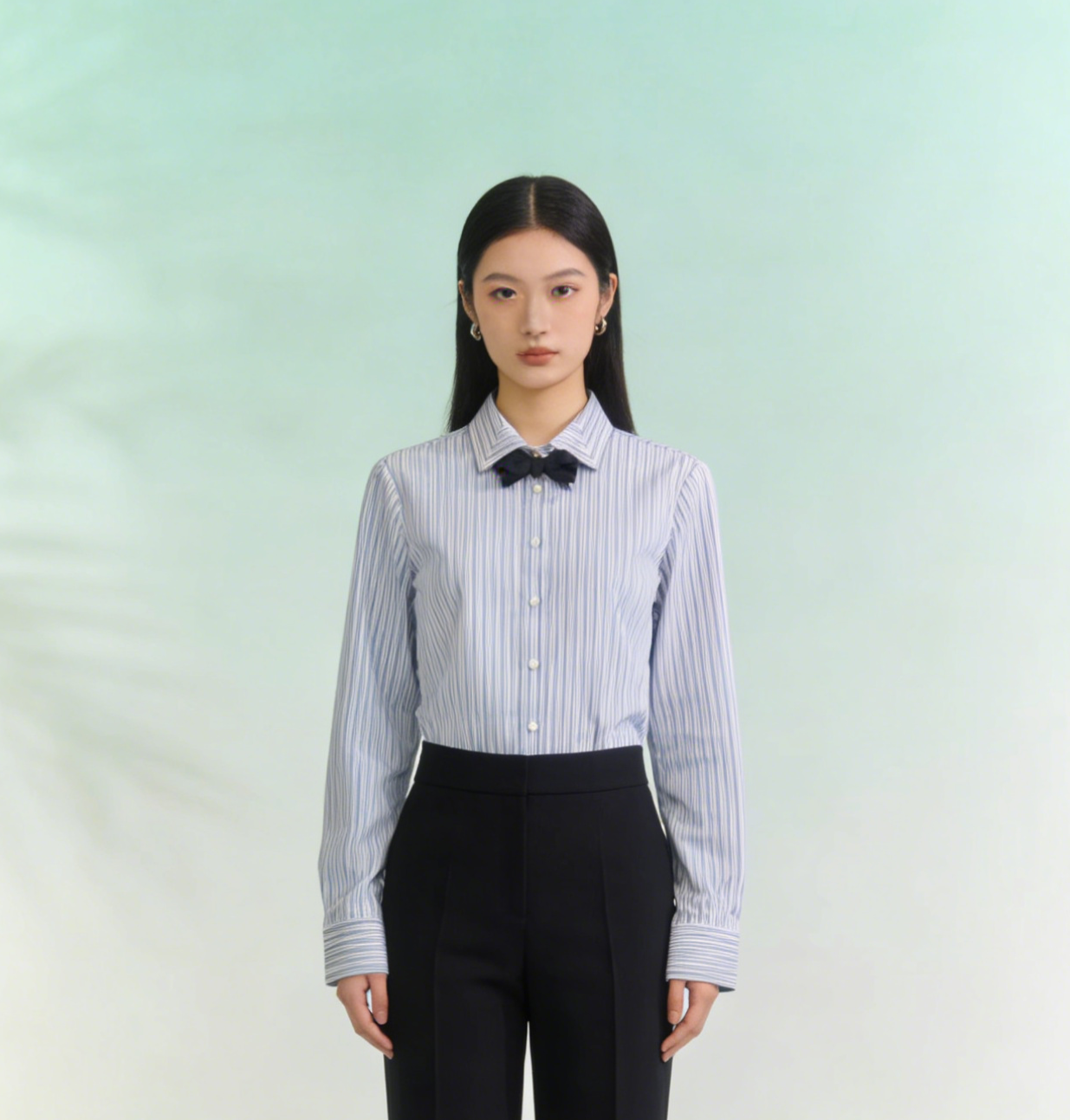 G2000女装SS26商场新款【免烫防皱/吸湿速干\抗菌】配领带条纹衬衫61221103