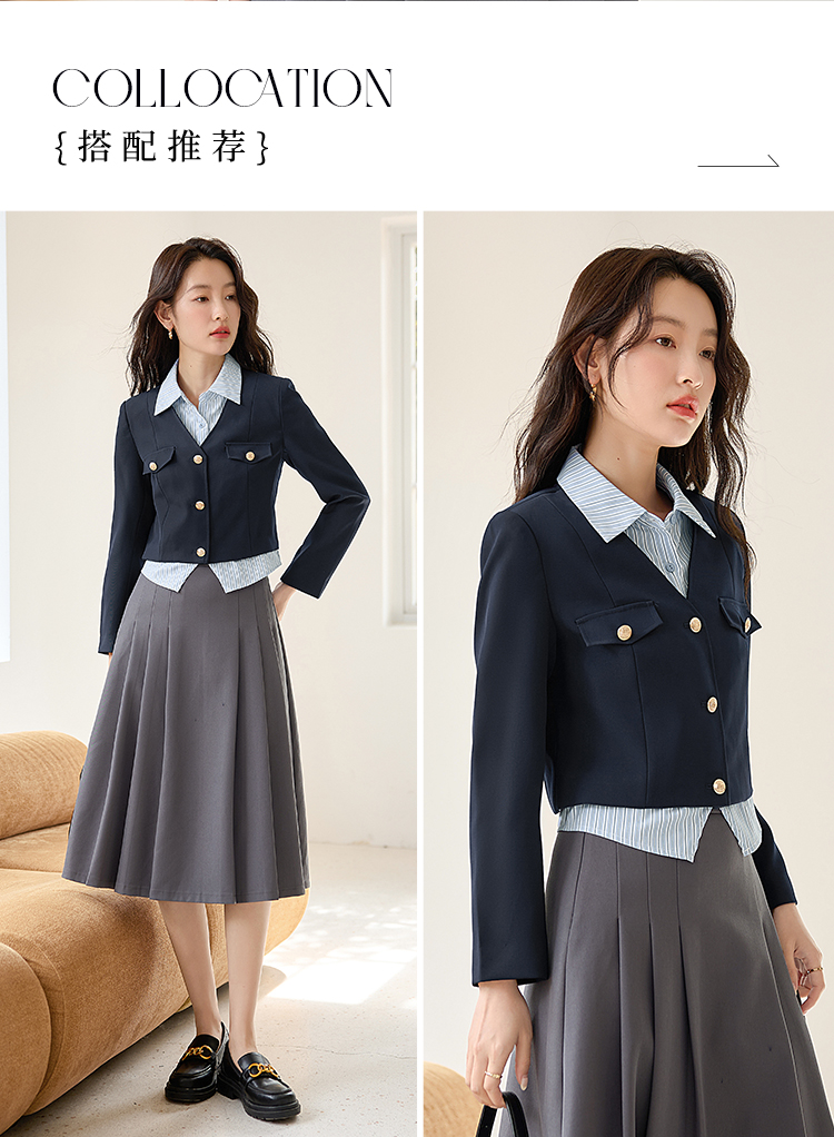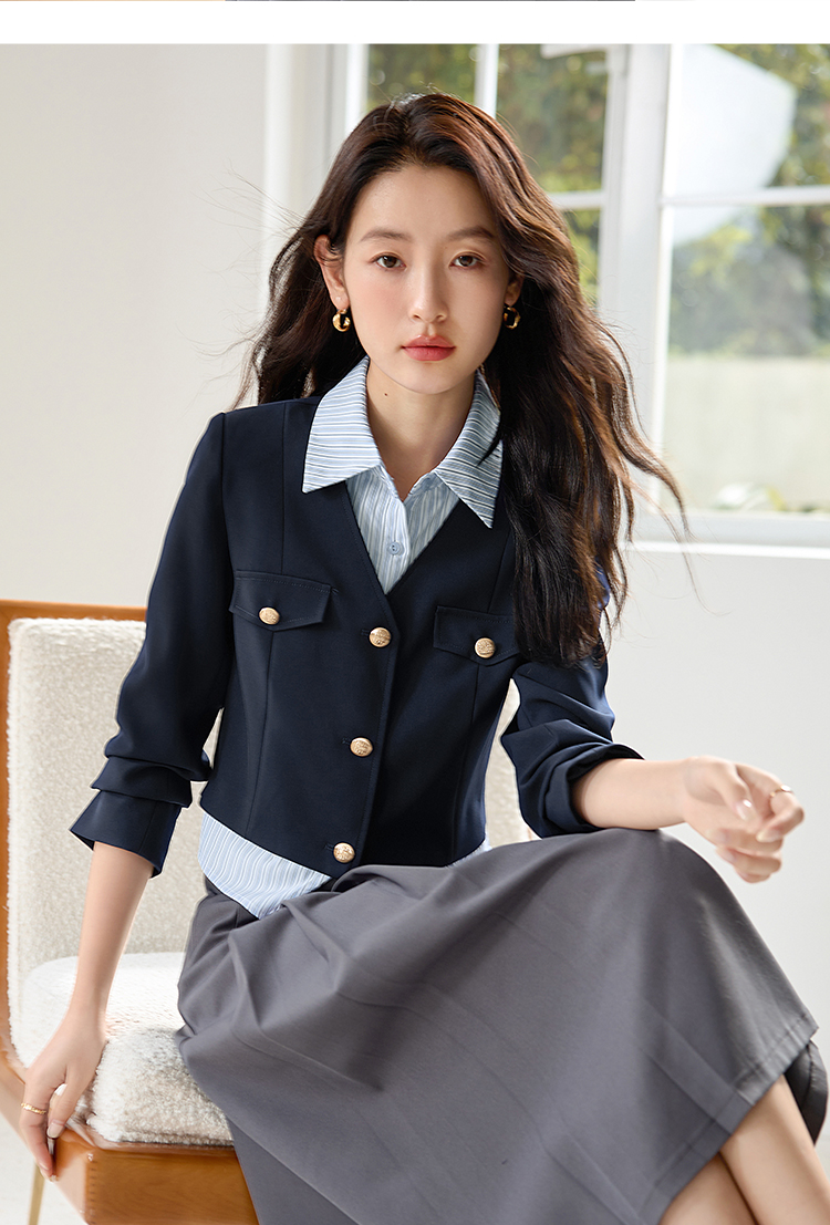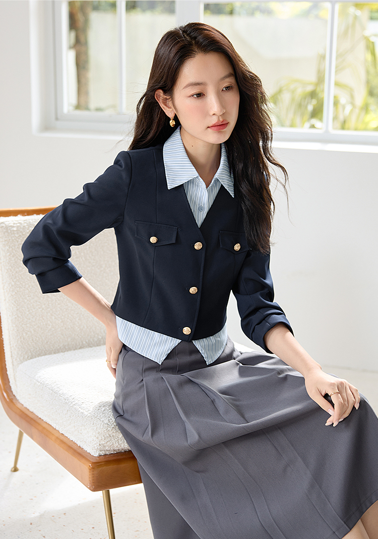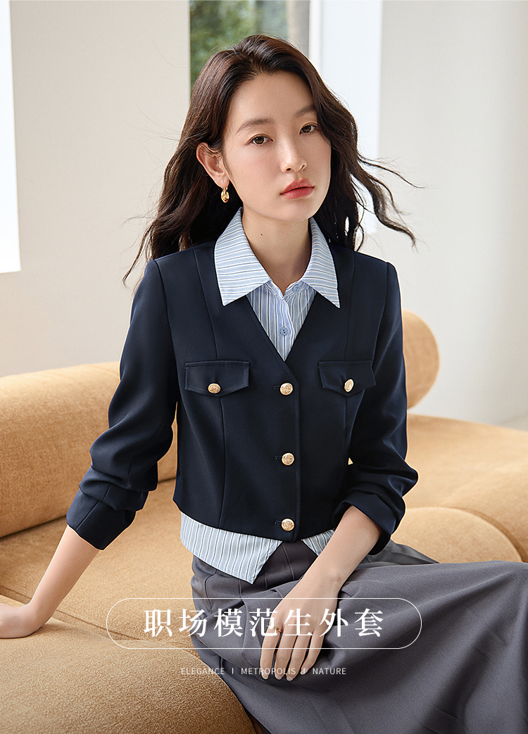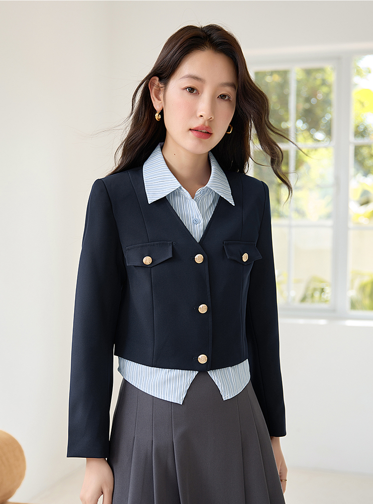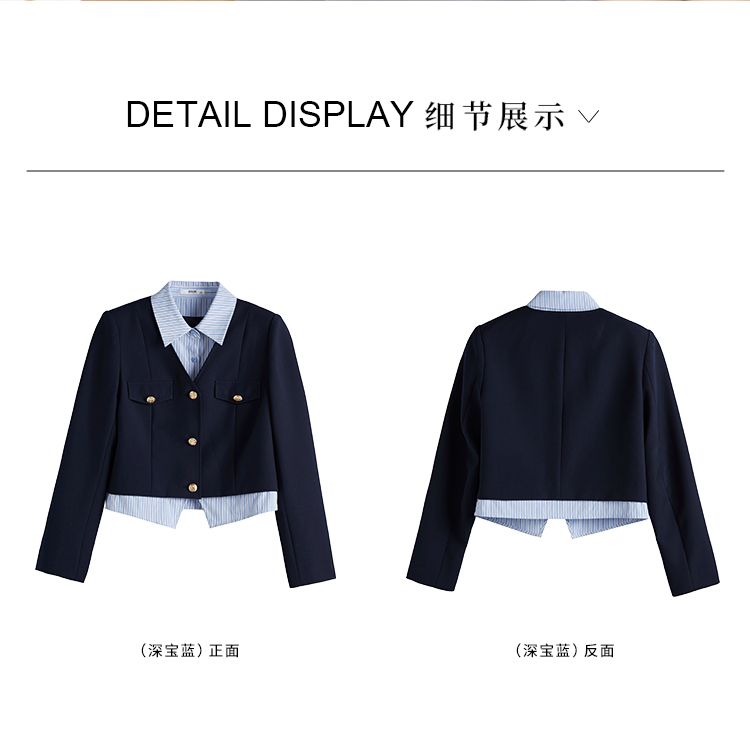 【专属特惠】熙世界学院风撞色条纹衬衫领拼接假两件外套短款2025年新款秋装