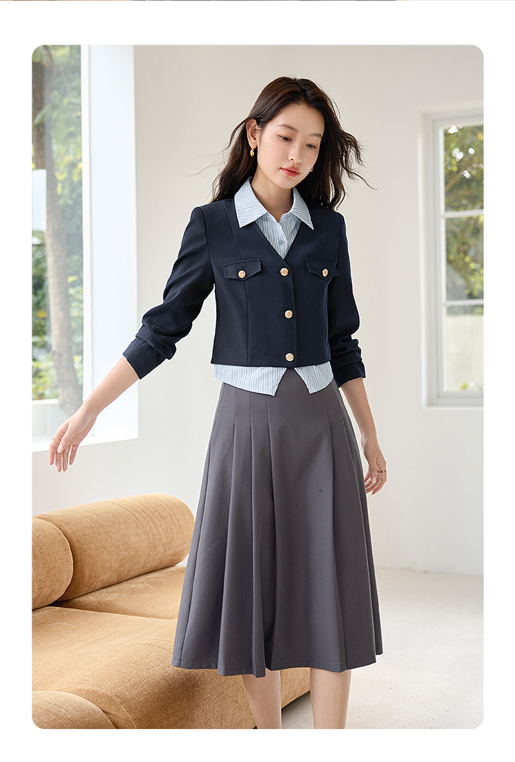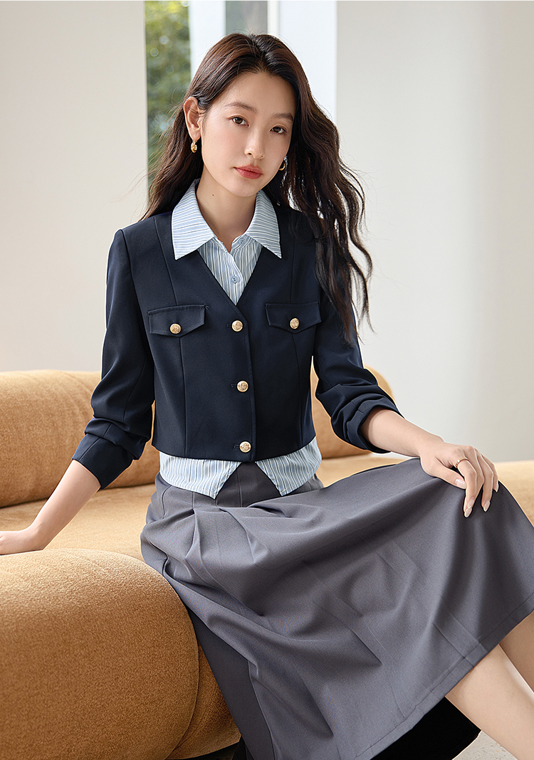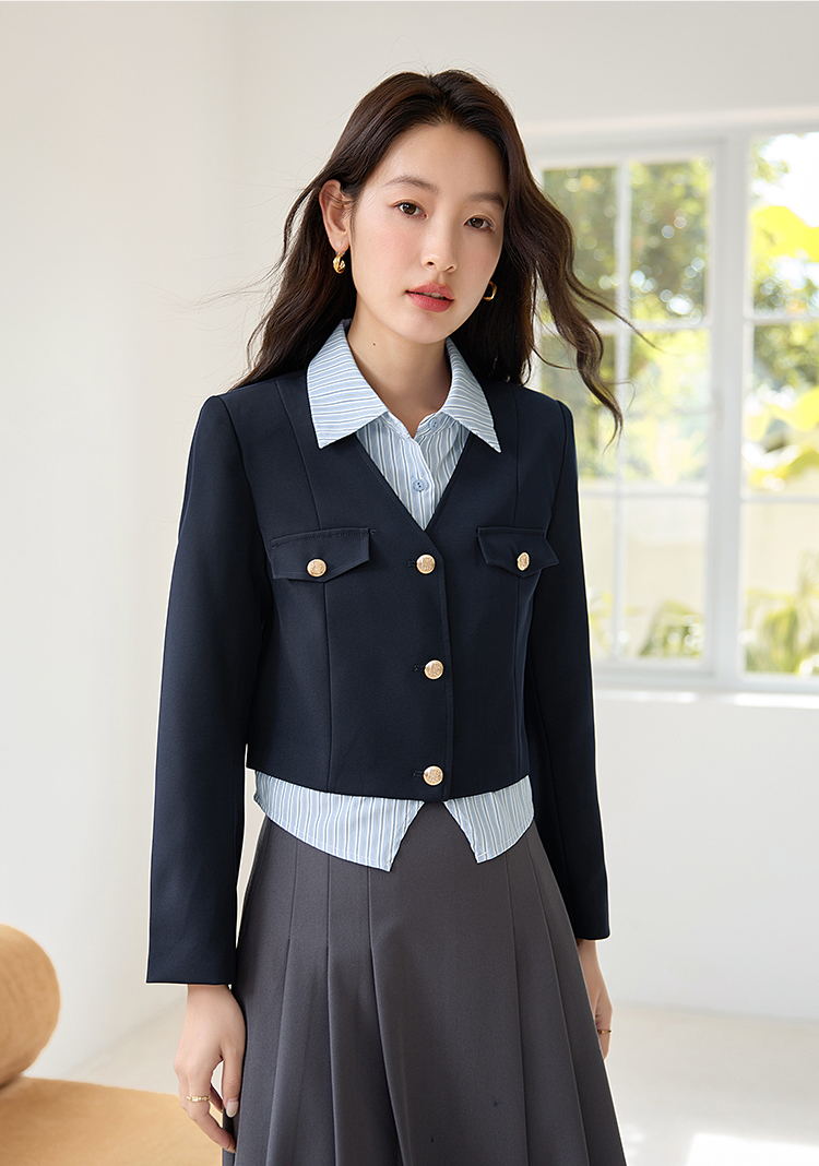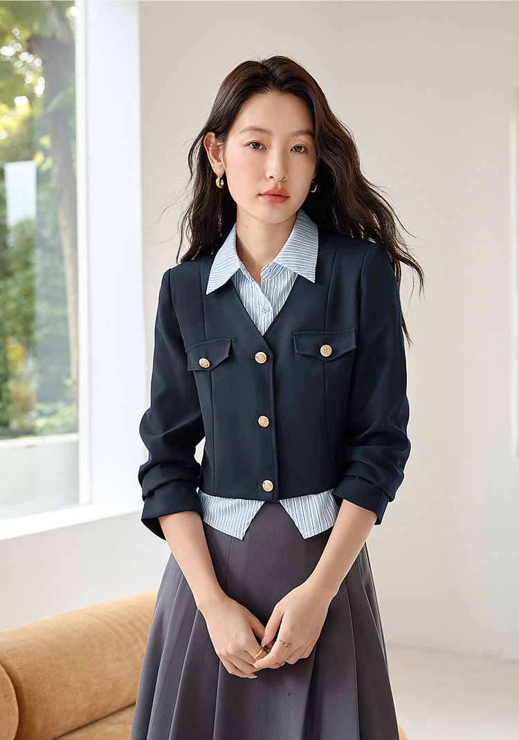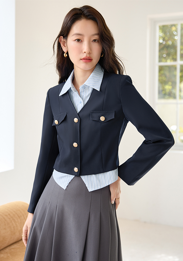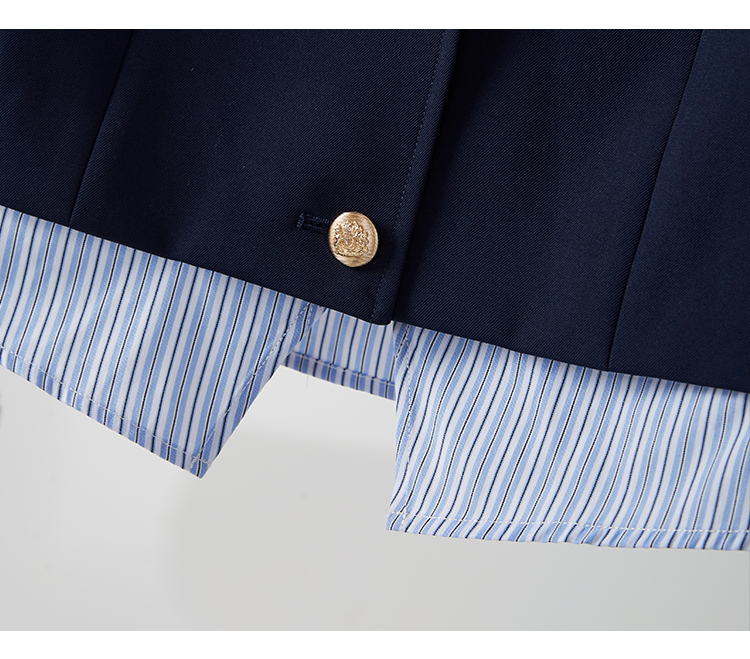 【专属特惠】熙世界学院风撞色条纹衬衫领拼接假两件外套短款2025年新款秋装