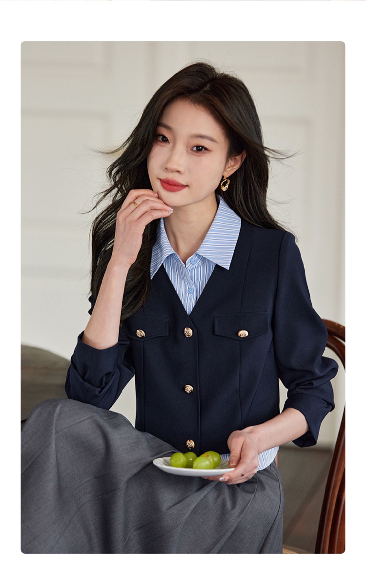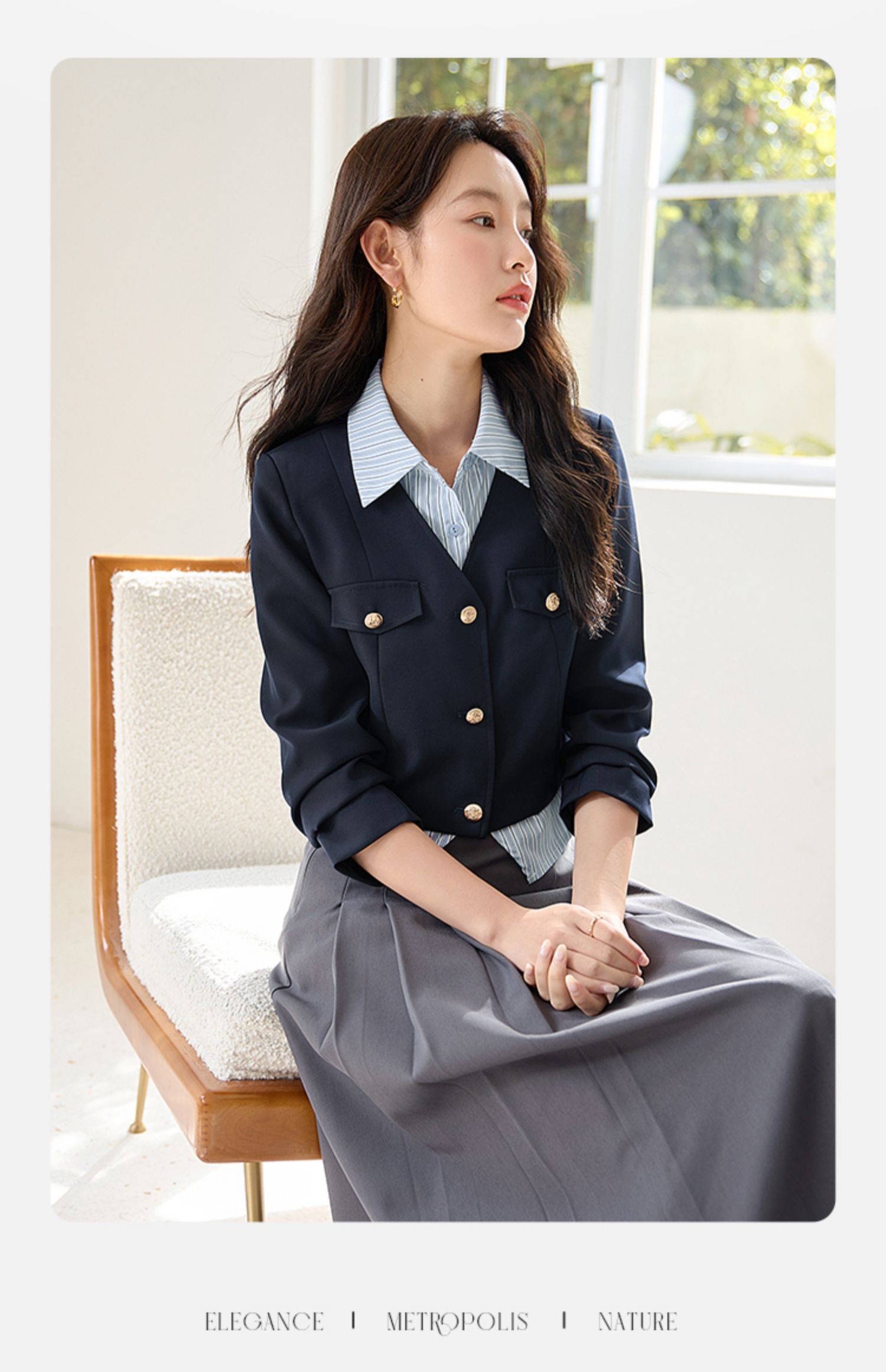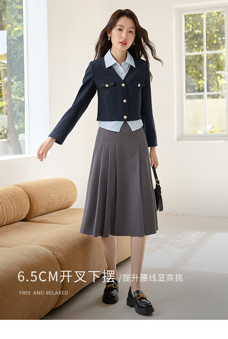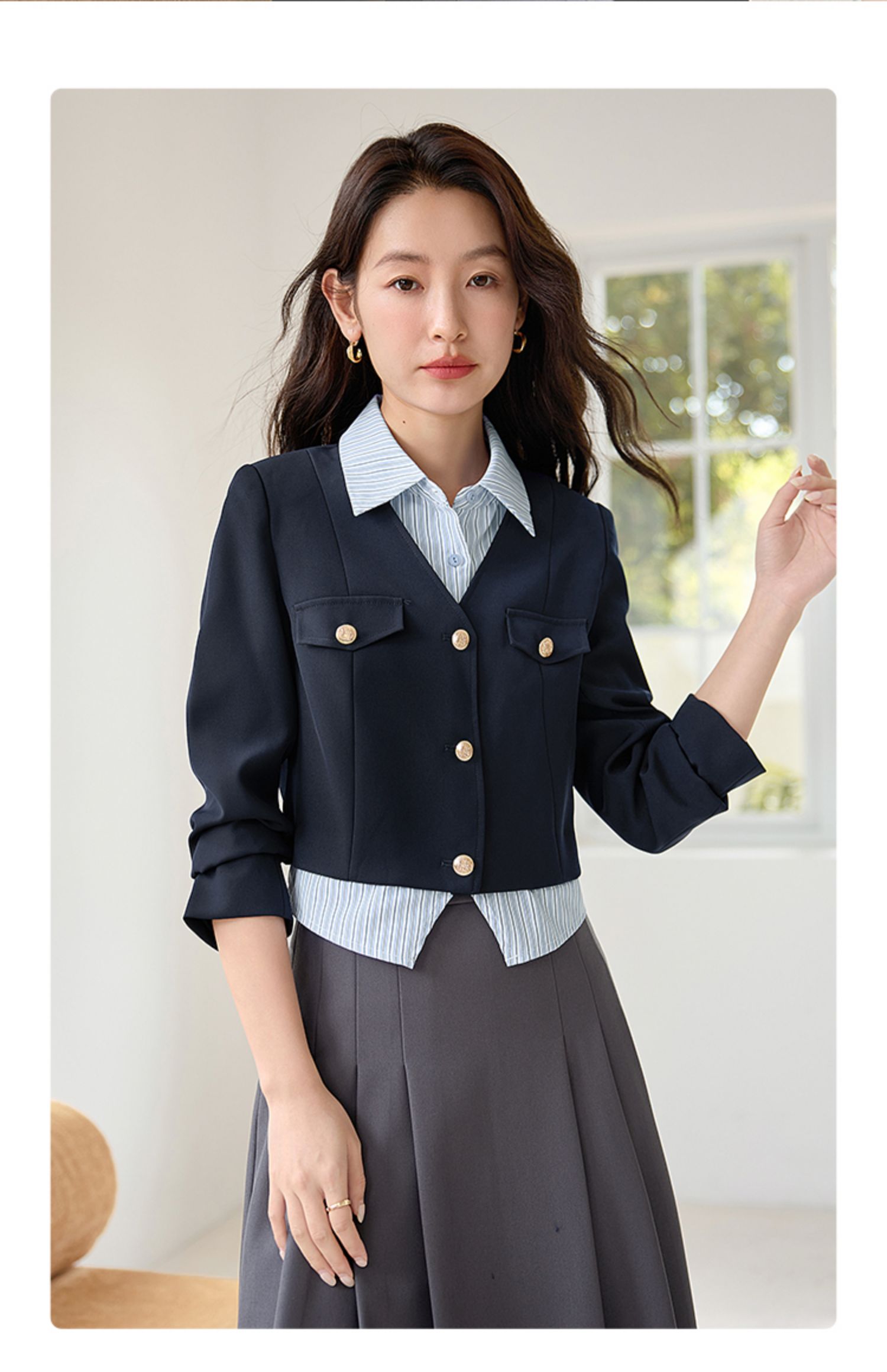 【专属特惠】熙世界学院风撞色条纹衬衫领拼接假两件外套短款2025年新款秋装