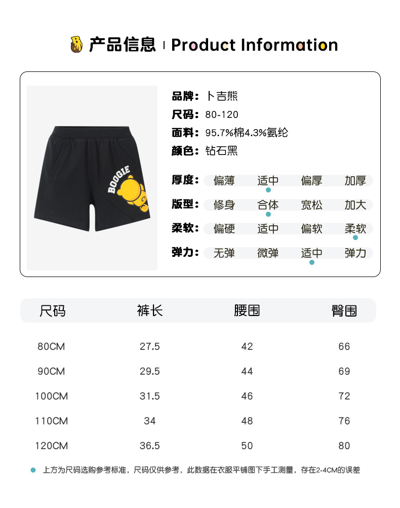 BOOGIEBEAR卜吉熊童装夏季短裤 80-120 832225313