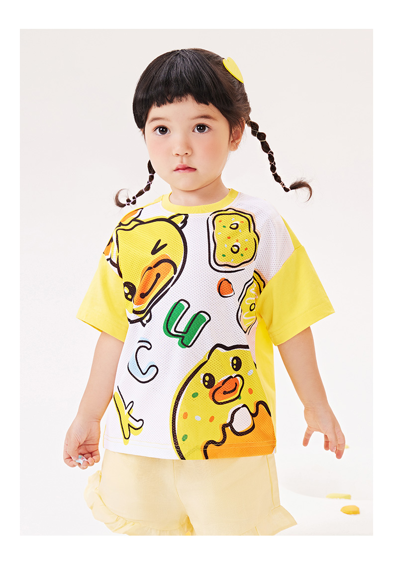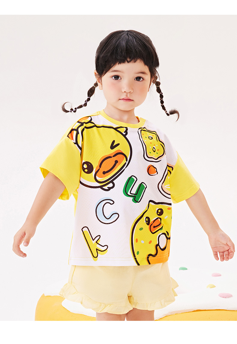 bduck小黄鸭童装夏季女童短袖T恤宝宝上衣儿童夏装纯棉半袖上衣薄90-130 FF2601068