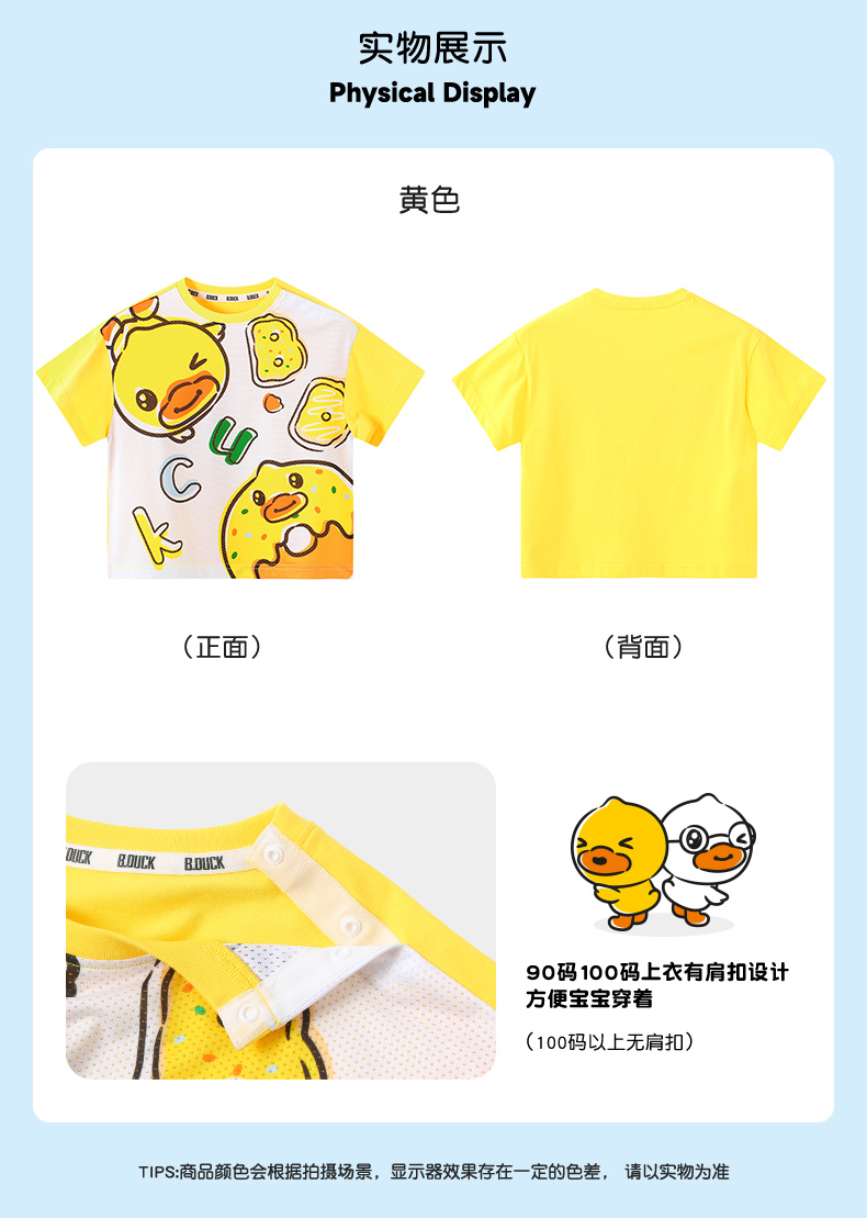 B.Duck小黄鸭童装夏季短袖T恤90-140 BF2402063