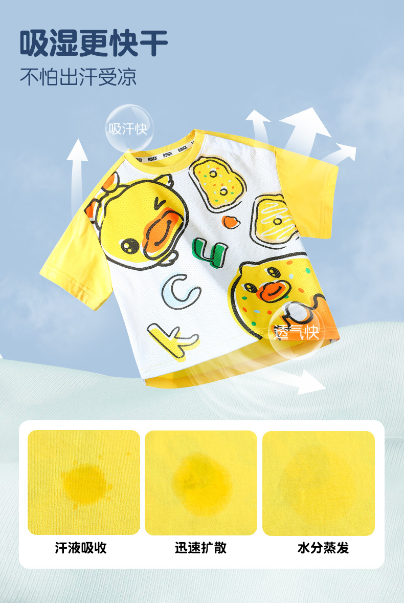 [冰感速干]bduck小黄鸭童装宝宝短袖t恤夏装男童半袖凉感儿童上衣90-150 BF2701022