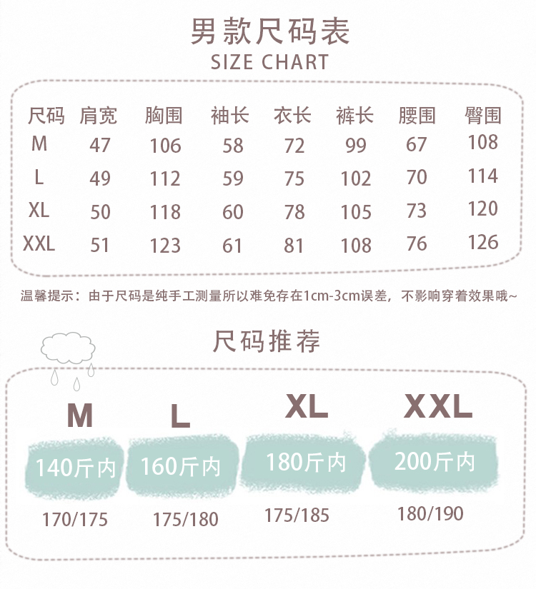 尺寸:170M,175L,180XL,185XXL