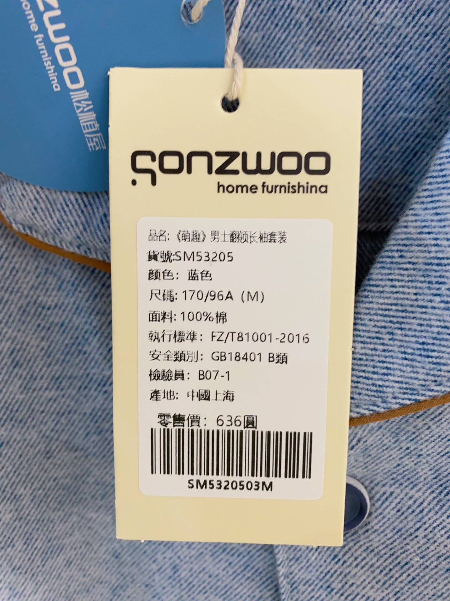面料:100%棉