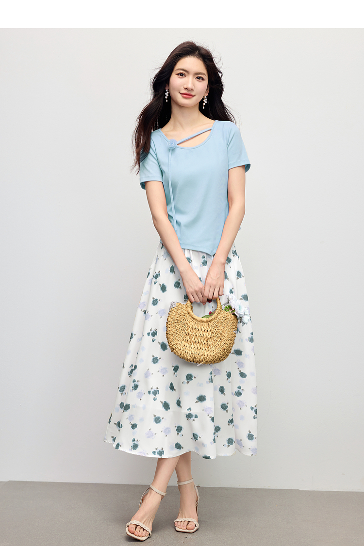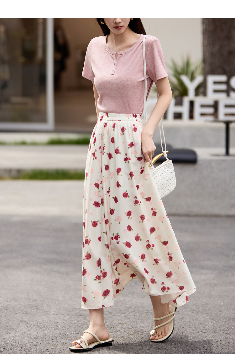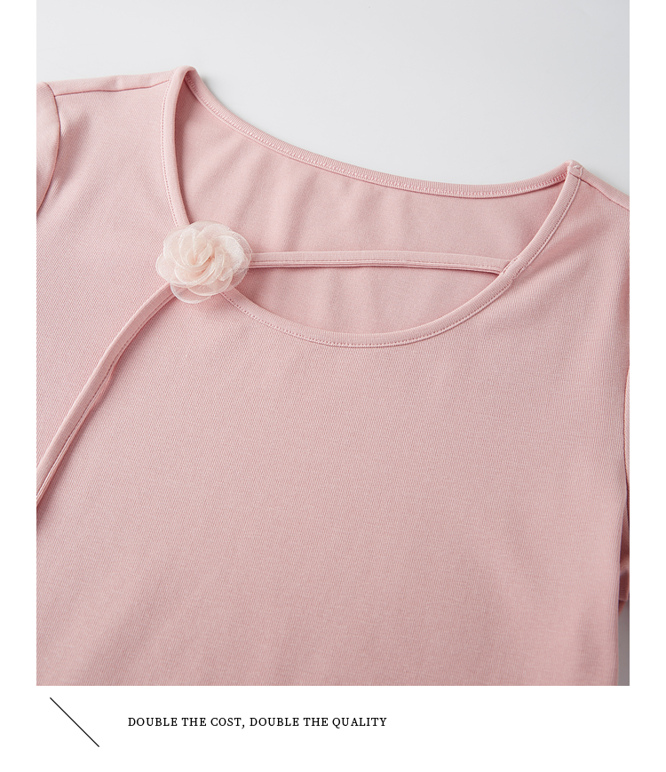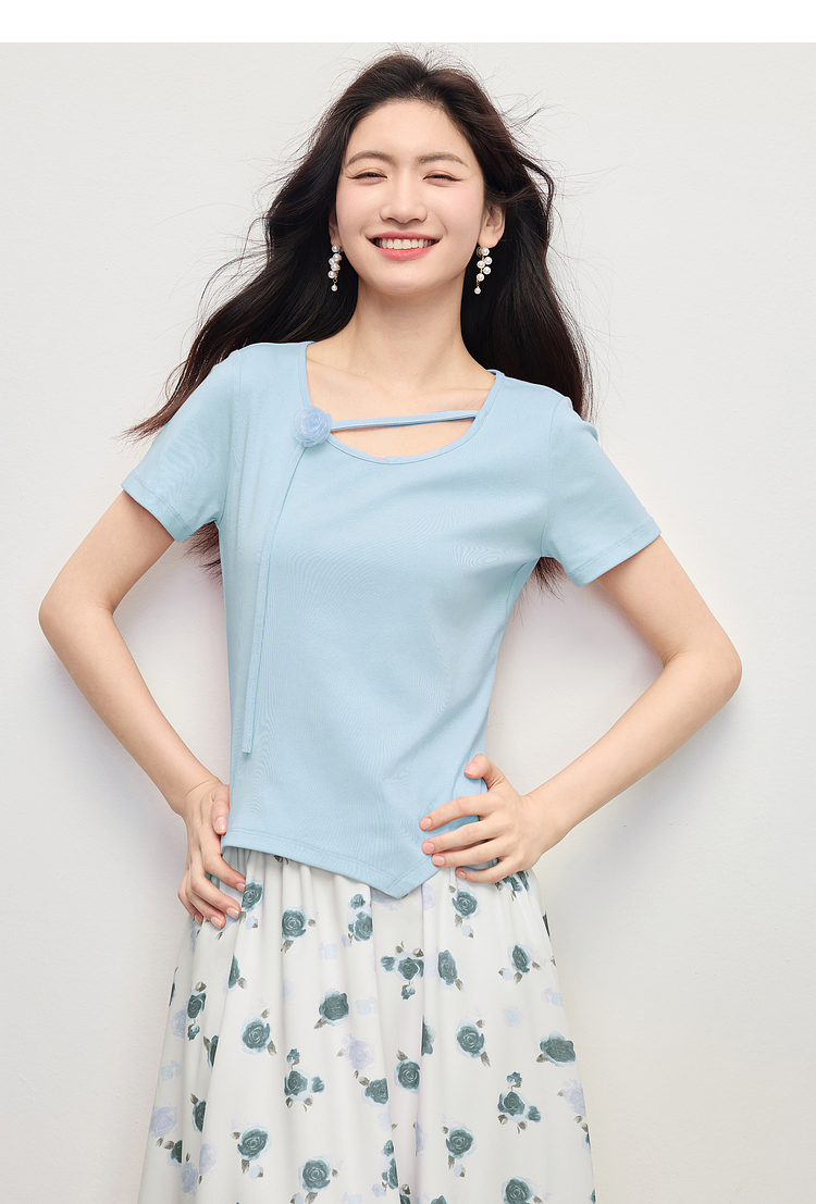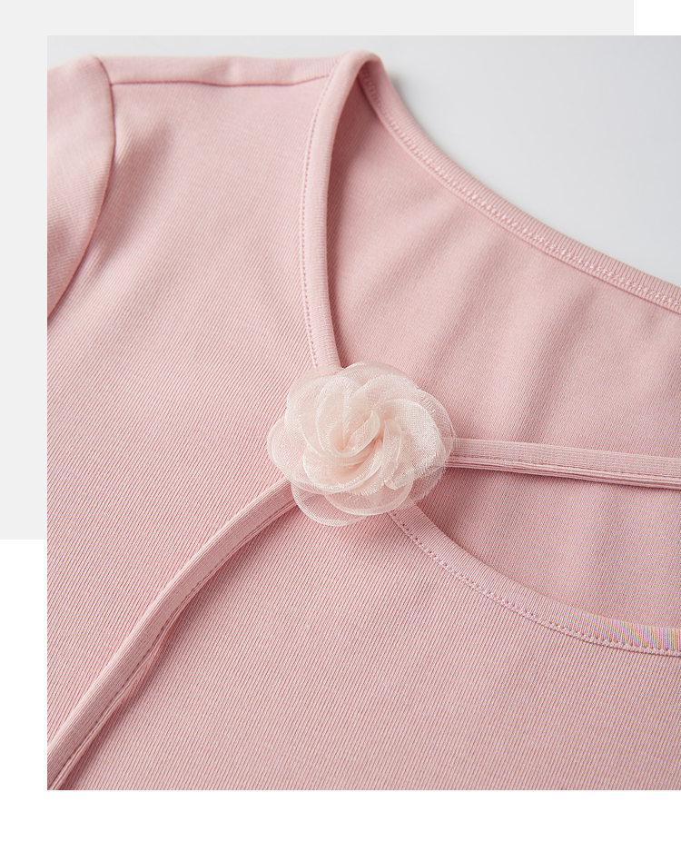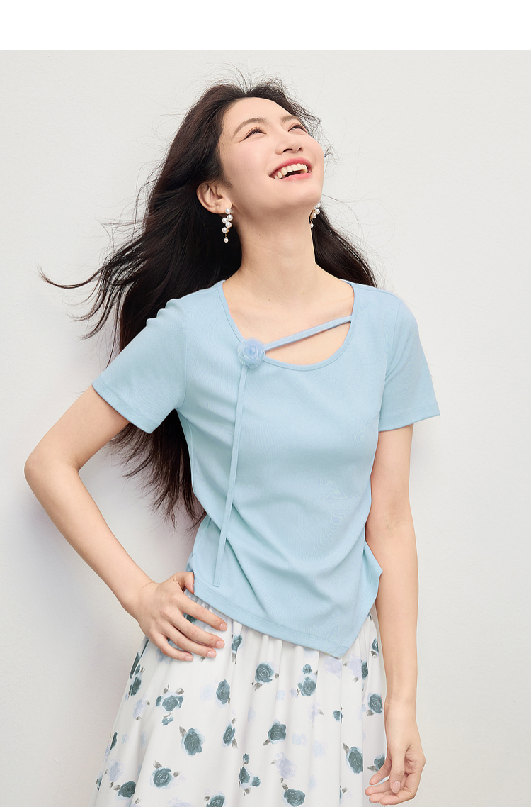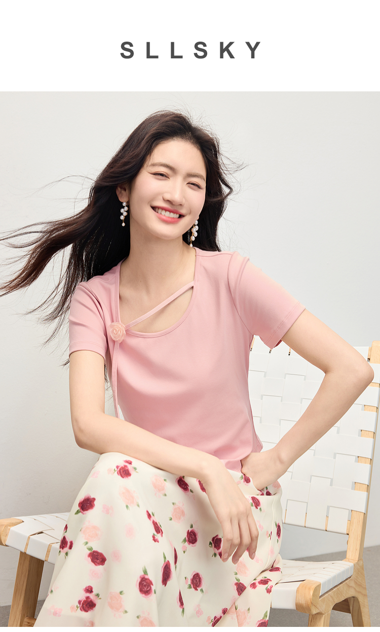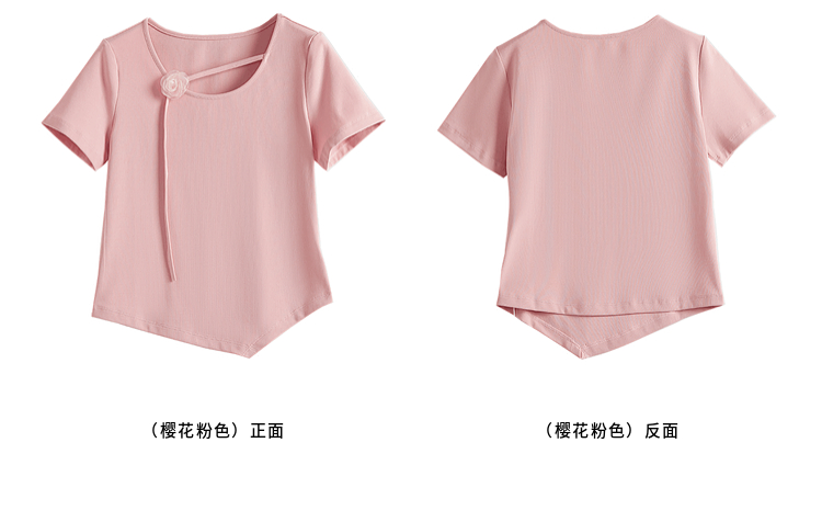 【专属特价】熙世界甜美风玫瑰粉抽绳短袖T恤女设计感正肩显瘦上衣2025夏新款