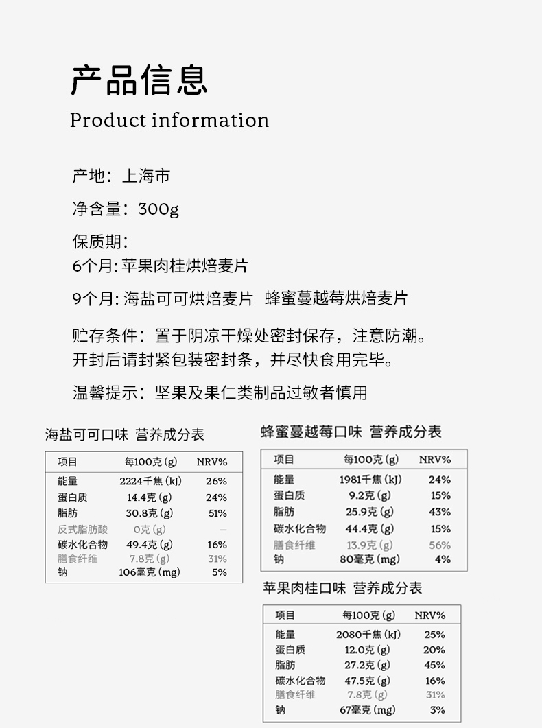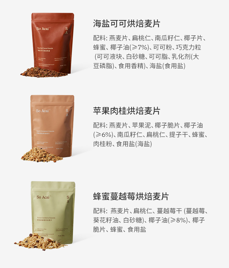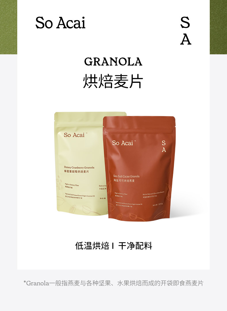 品牌直发 So Acai 烘焙燕麦片 海盐可可/苹果肉桂300g 2袋装