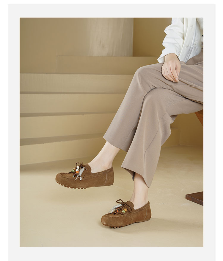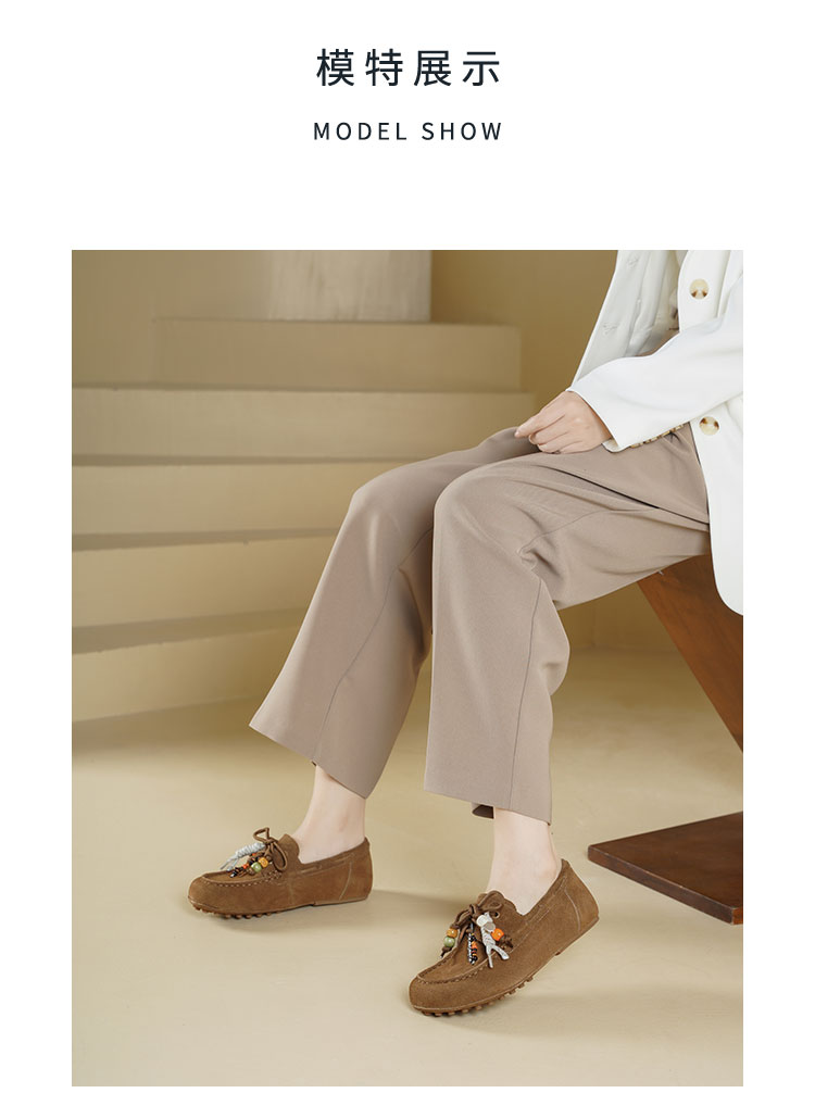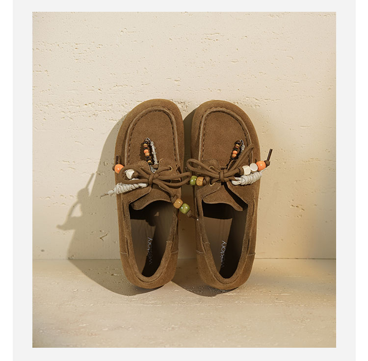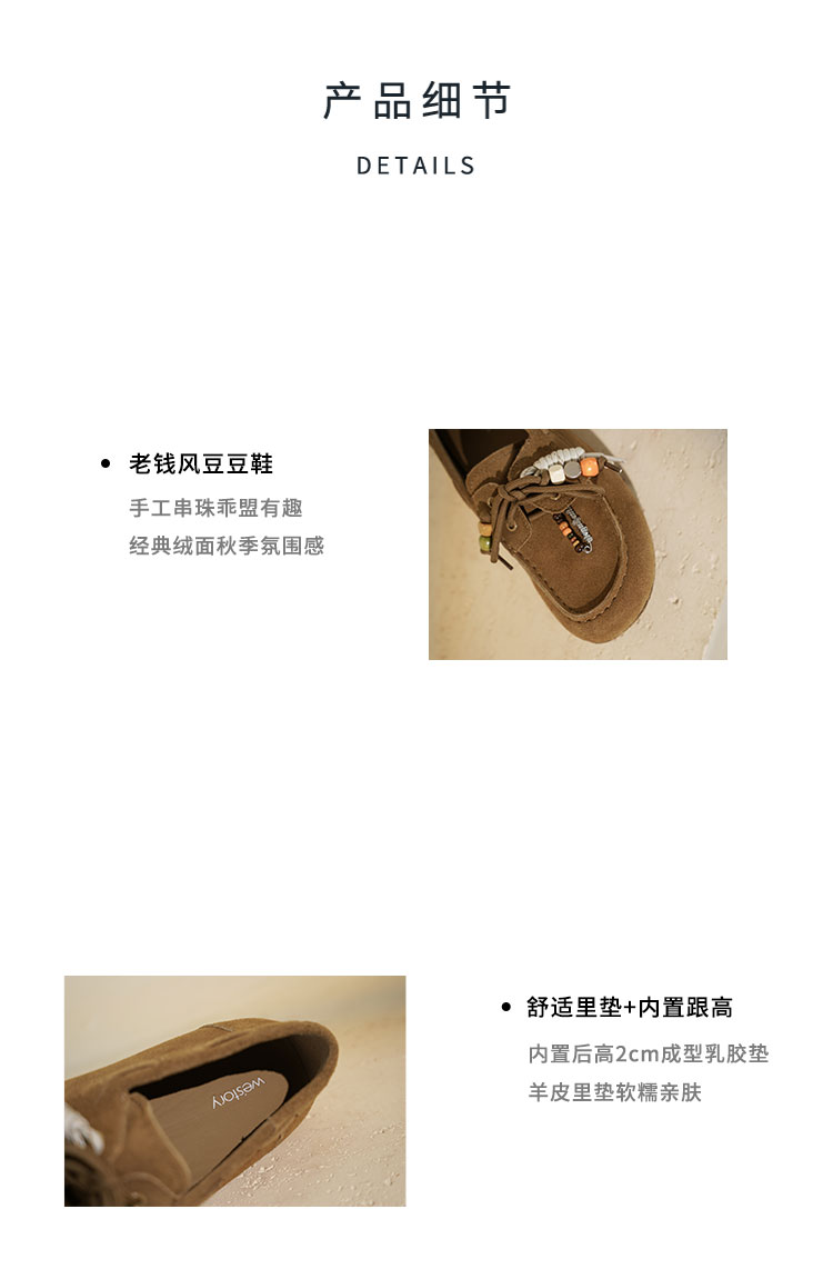 Westory2025年秋季老钱风豆豆鞋波西米亚风手工串珠平底鞋圆头休闲浅口单鞋W25CM76531