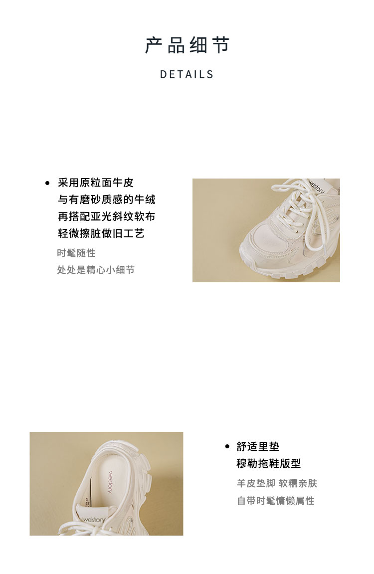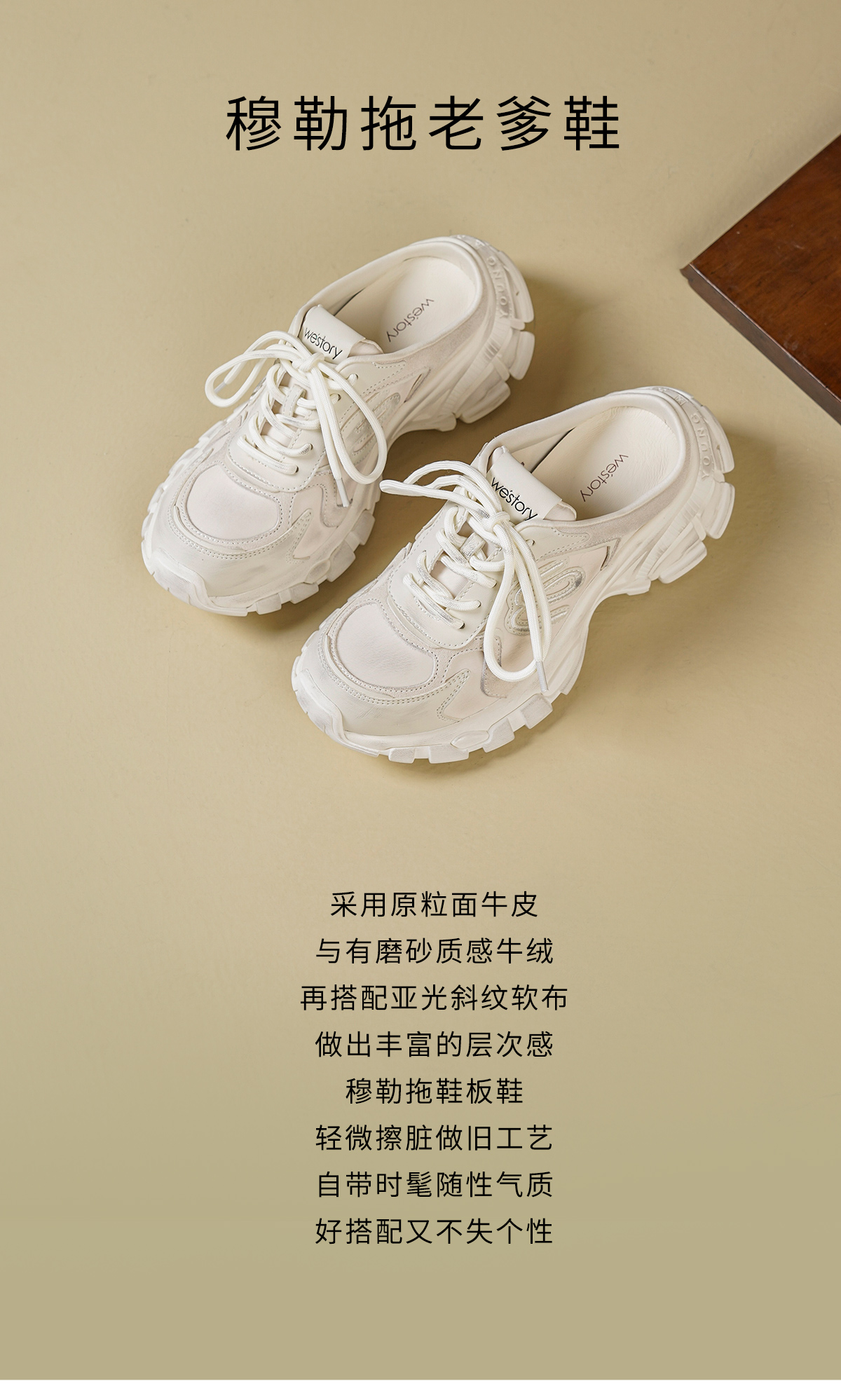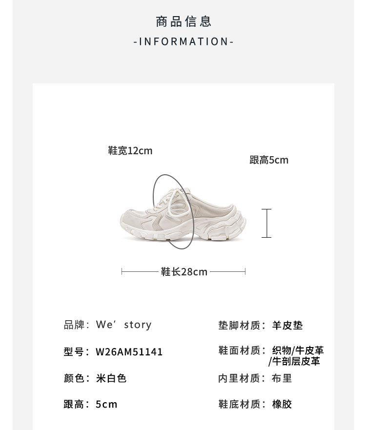 Westory2026年春季厚底运动穆勒拖脏脏鞋休闲运动鞋老爹鞋W26AM51141