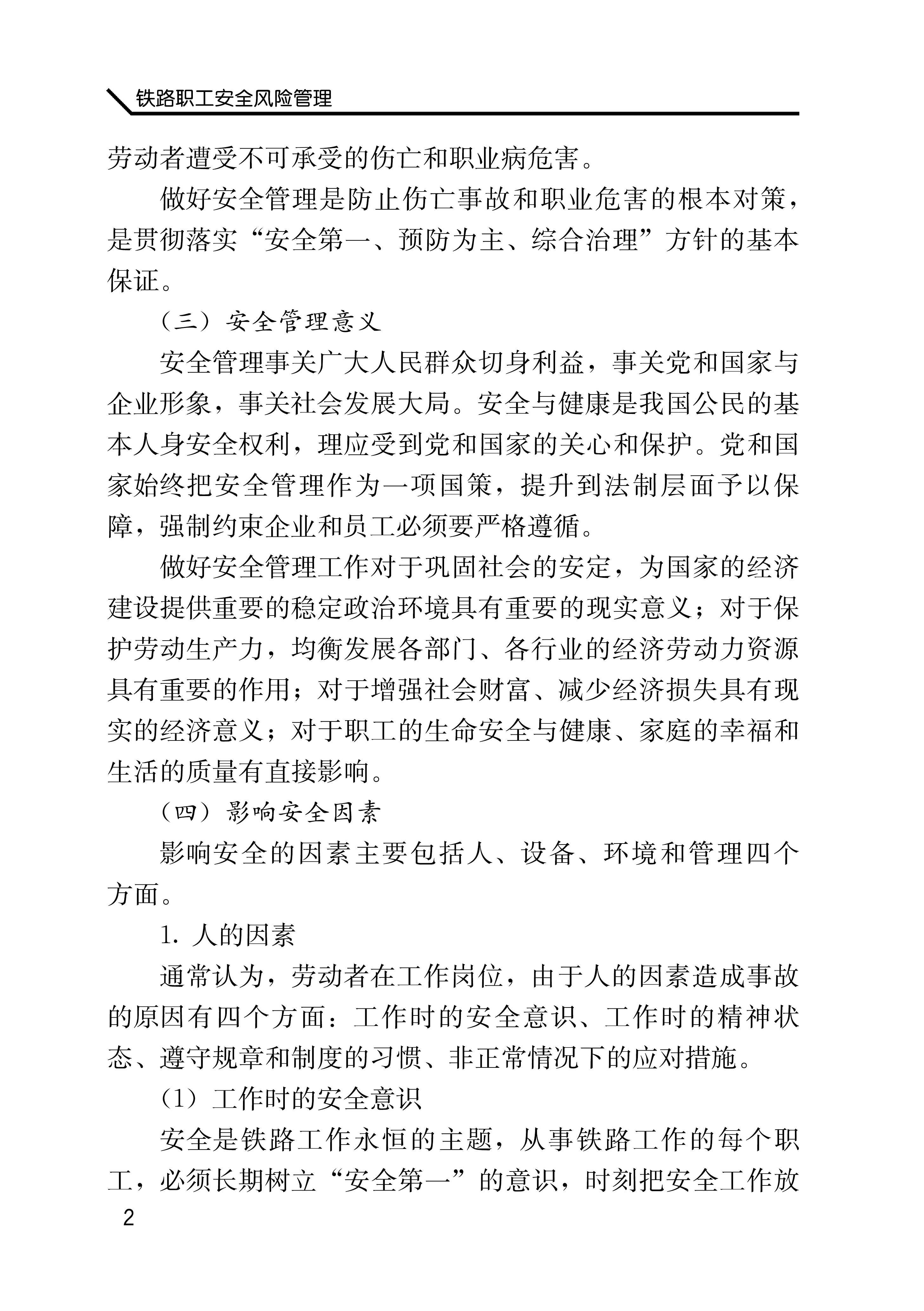 本书是“铁路职工劳动安全学练丛书”之一。《铁路职工安全风险管理》的编写是为了帮助铁路职工了解铁路安全风险点,掌握铁路车务系统、客运系统、货运系统、机务系统、工务系统、电务系统、后勤系统典型安全风险管控措施, 并对各系统铁路安全风险典型案例进行分析,能够提升铁路职工应对突发安全风险能力。本书内容有助于保障铁路运输生产安全稳定和铁路职工安全健康。本书可作为铁路企业职工安全教育培训用书,也可供铁路职工自学使用。