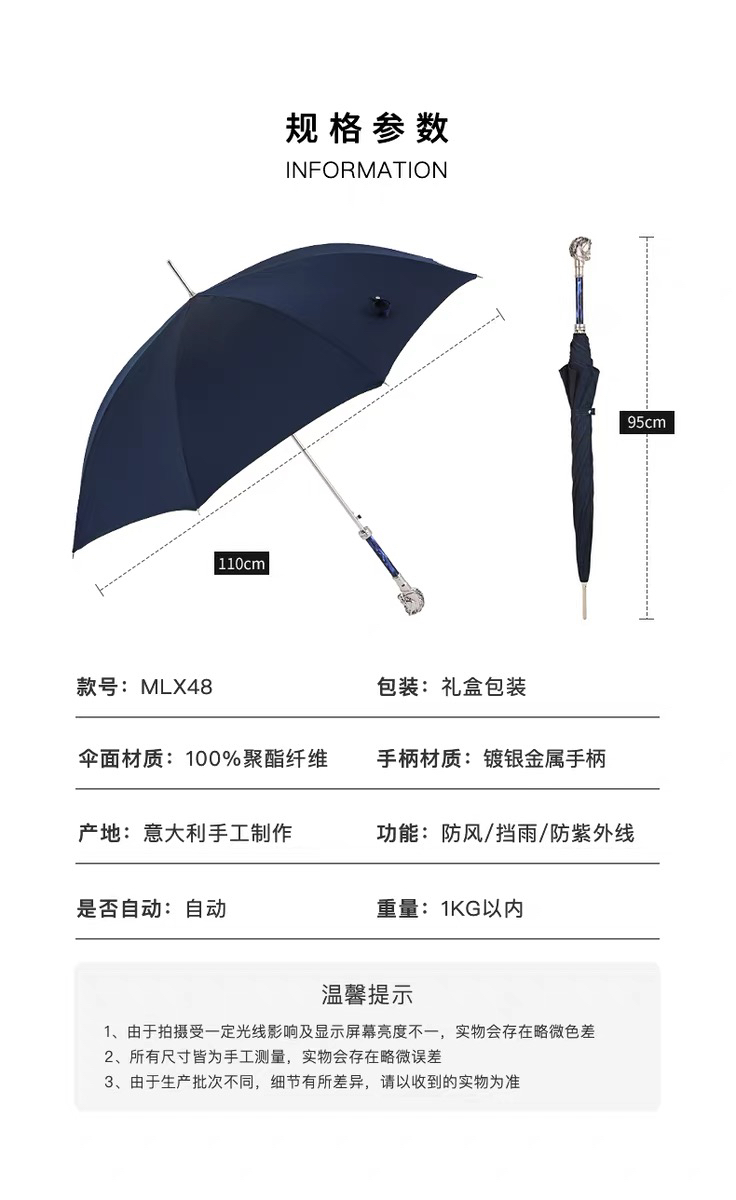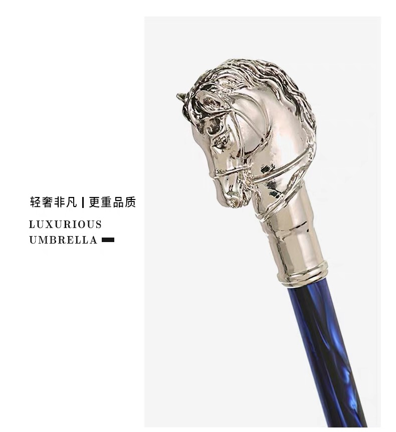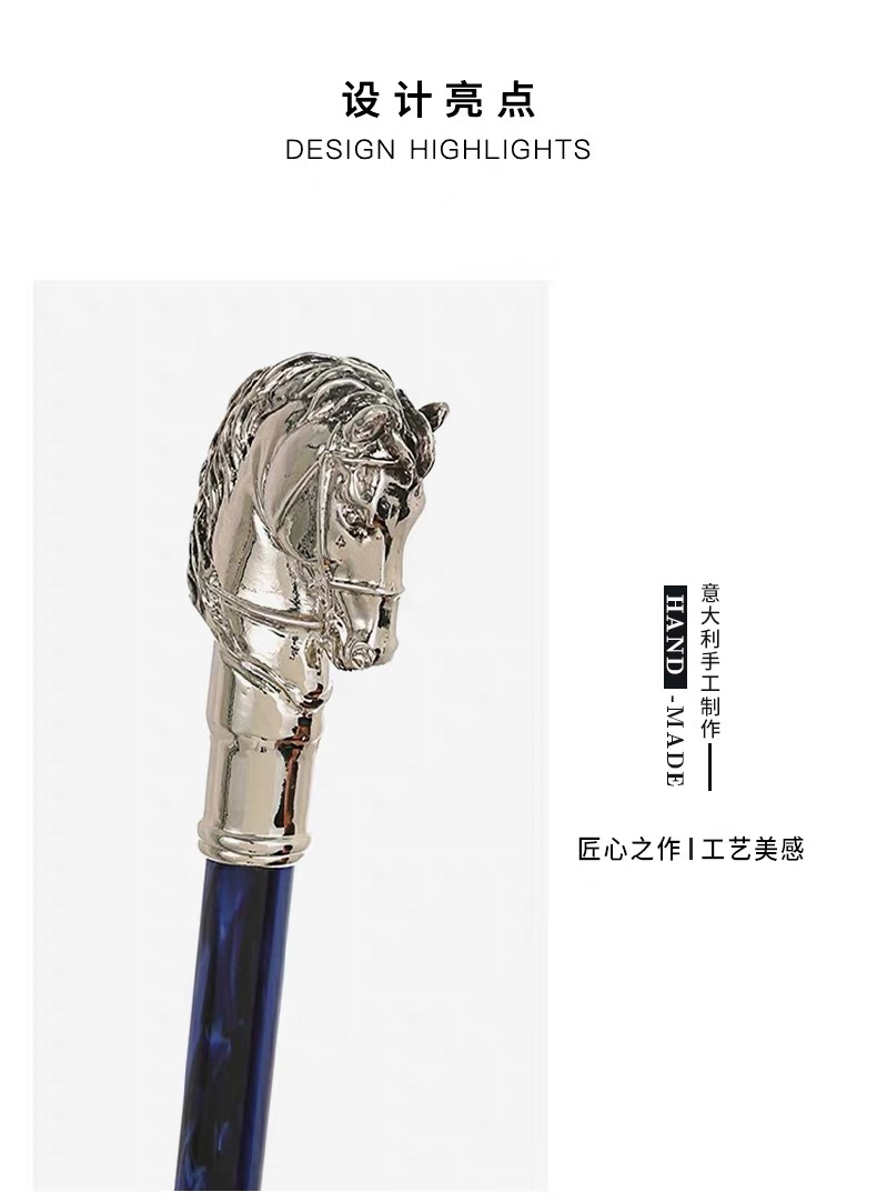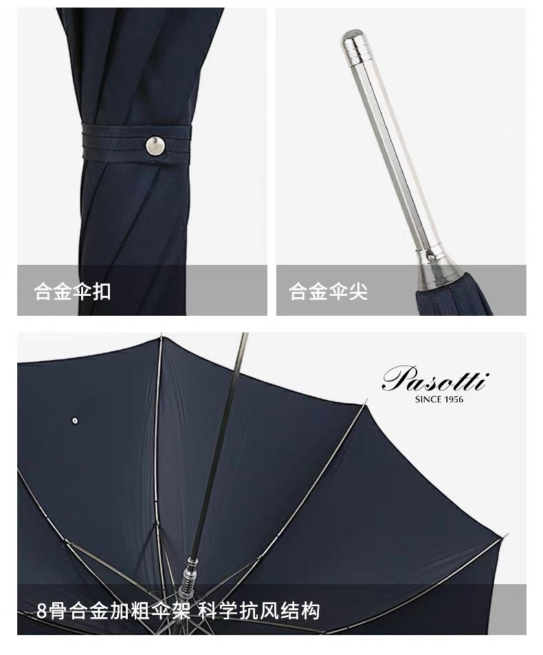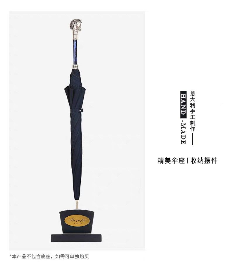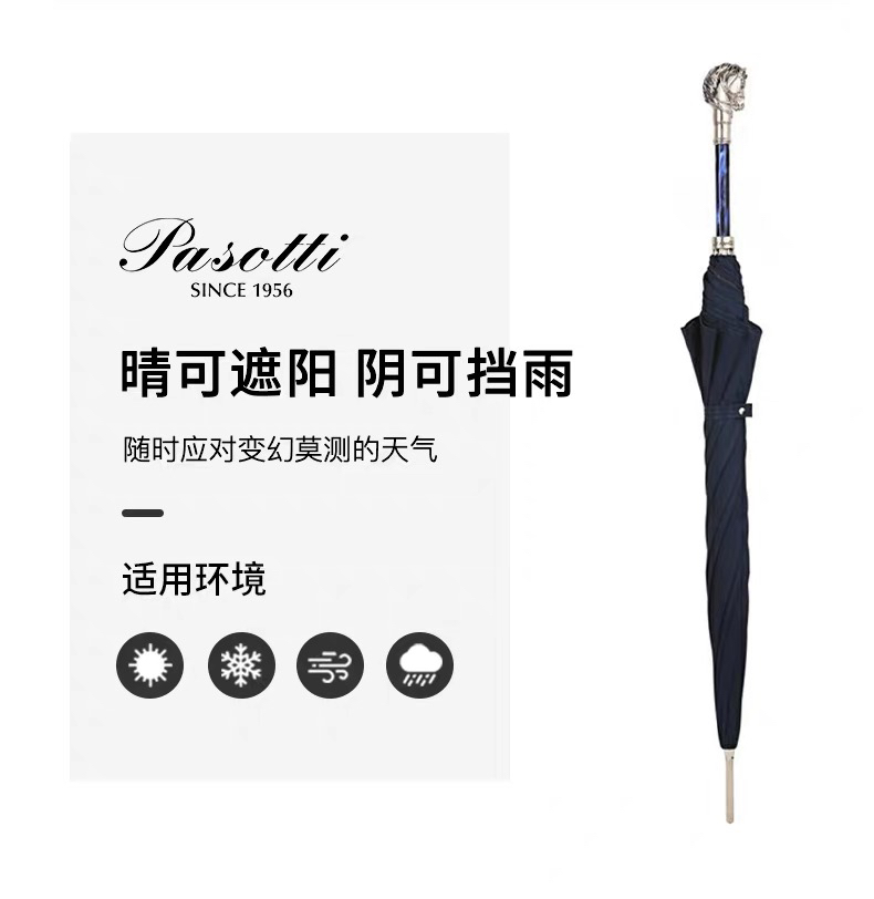 Pasotti意大利手工直柄晴雨伞男士奢华银色马头手柄复古雨伞