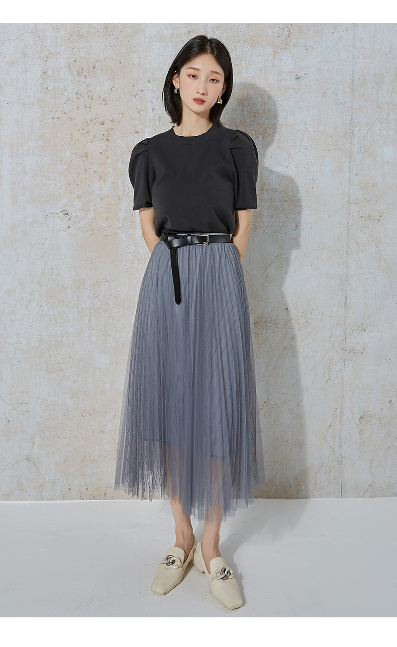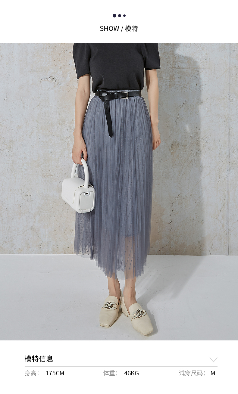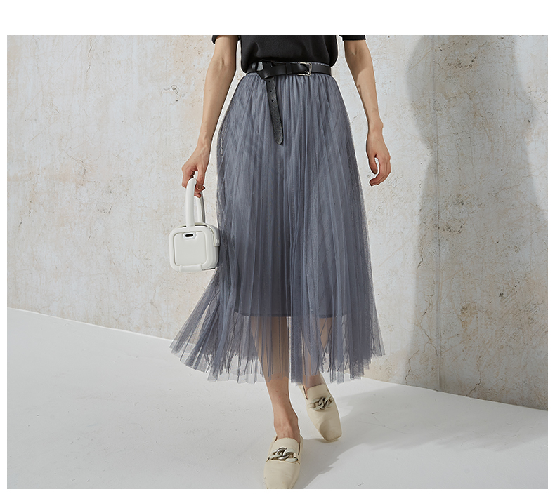 NUTS商场同款春秋高腰显瘦A字百搭时尚网纱半身长裙女231063153