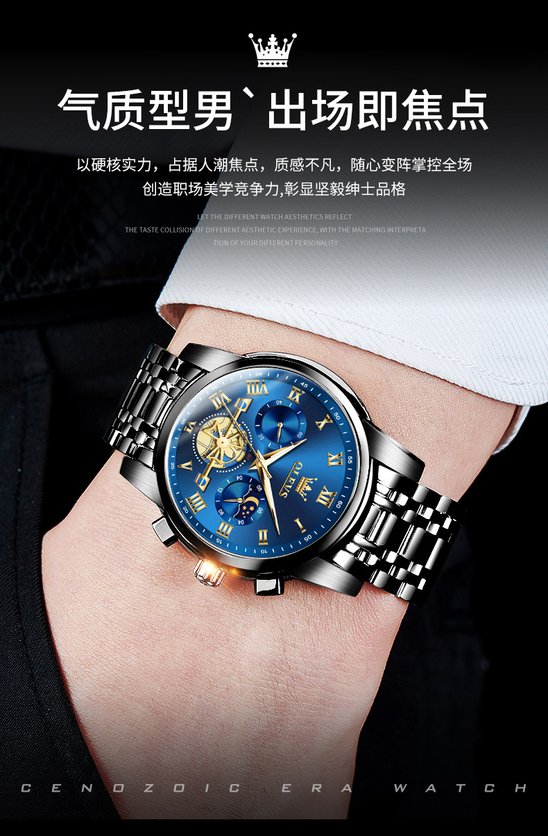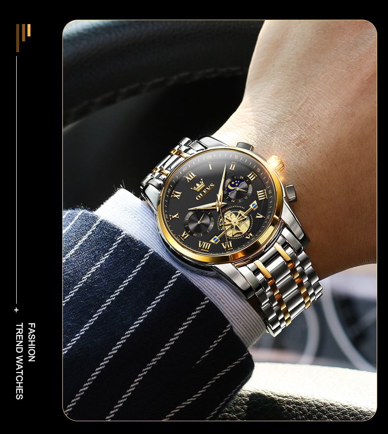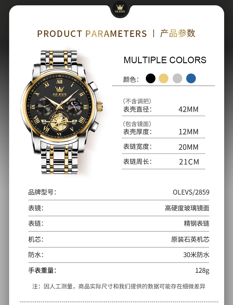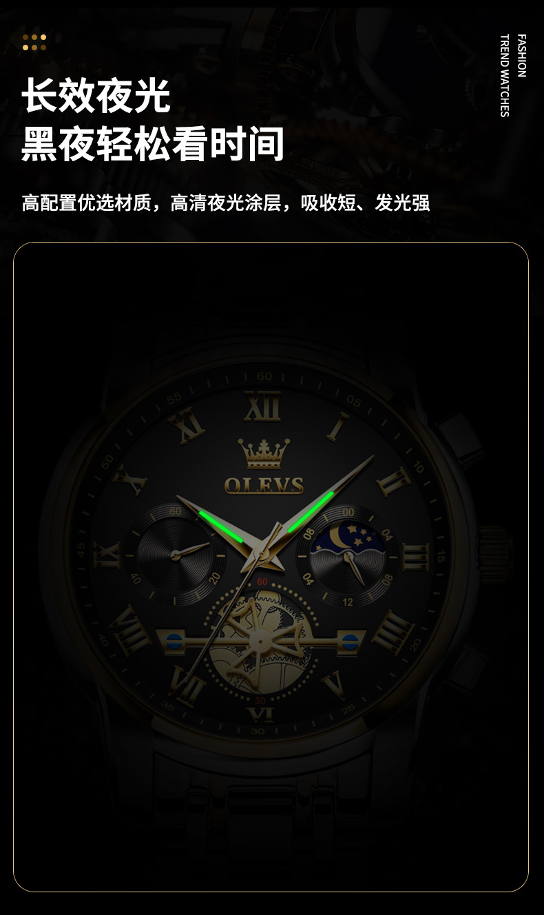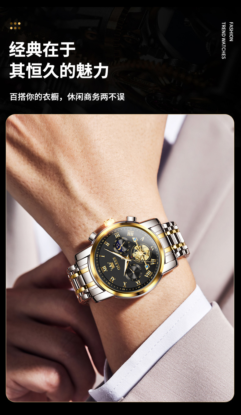 欧利时OLEVS 石英表 2859 新款 全自动机械表镂空防水 瑞士认证品牌 商务多功能全自动男士手表防水石英腕表