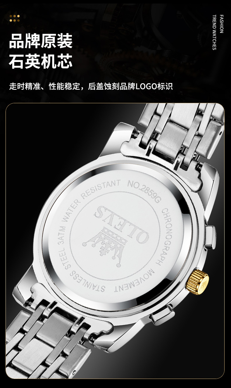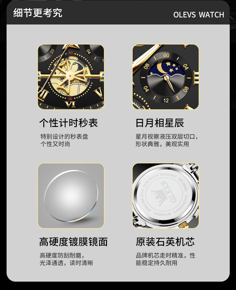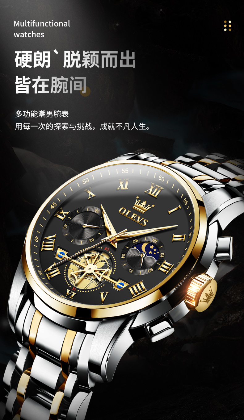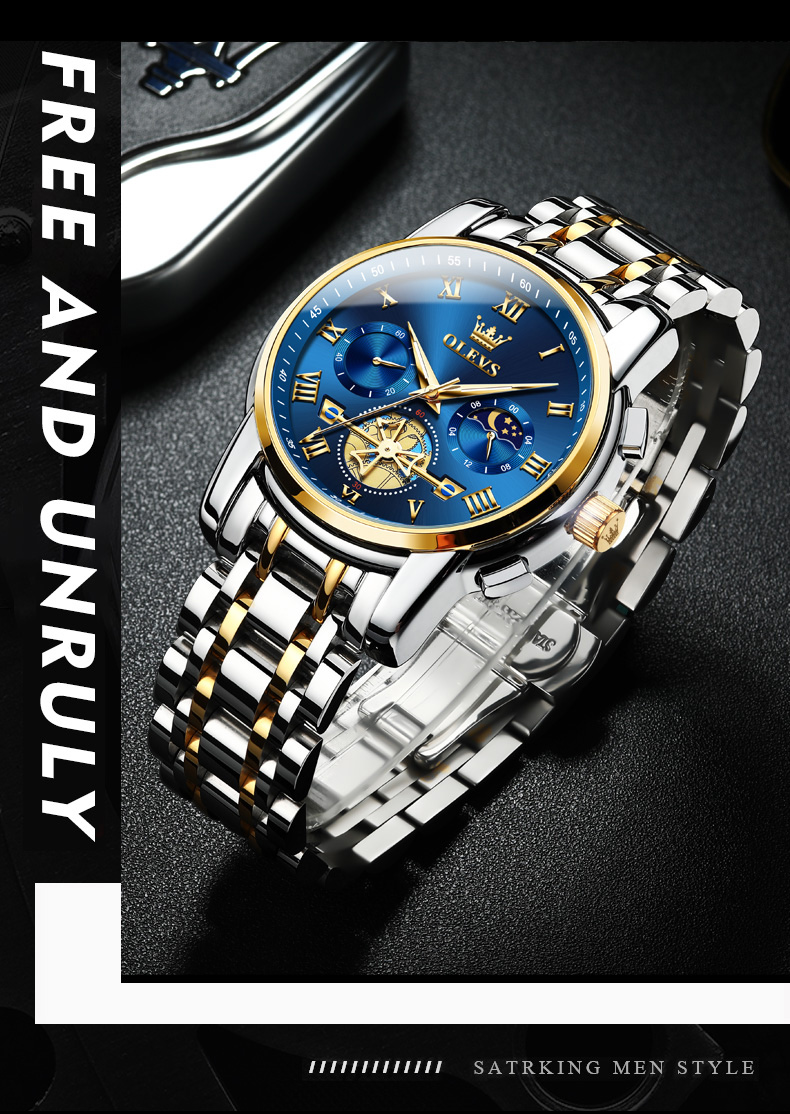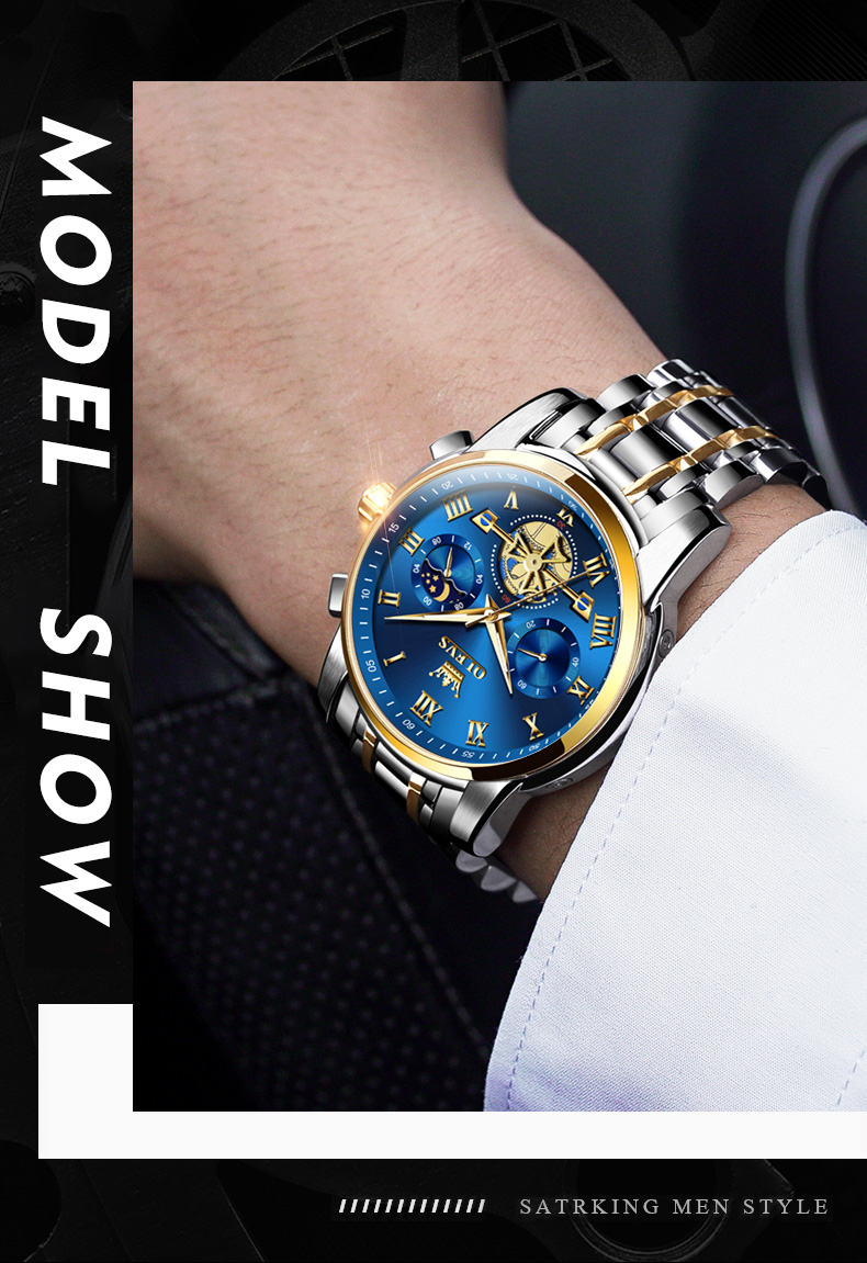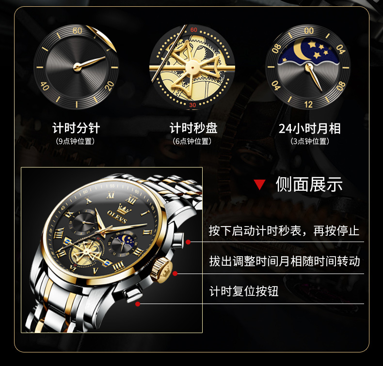 欧利时OLEVS 石英表 2859 新款 全自动机械表镂空防水 瑞士认证品牌 商务多功能全自动男士手表防水石英腕表
