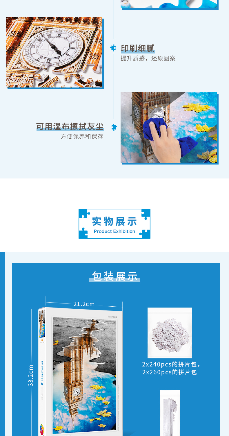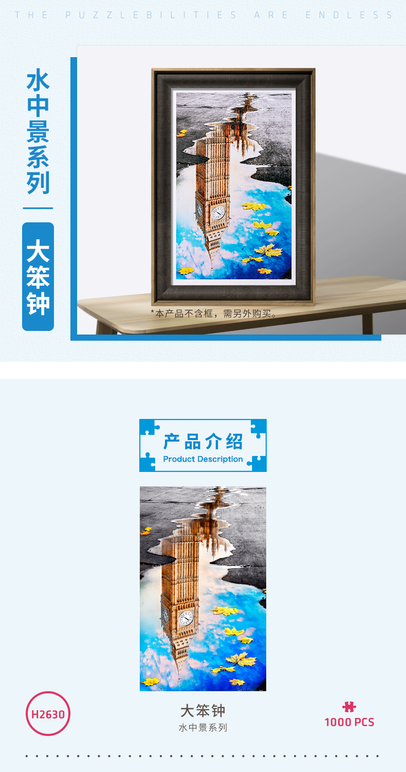 【折扣商品 不退不换】1000片 平面拼图 塑料拼图 H2630 水中景系列-大笨钟