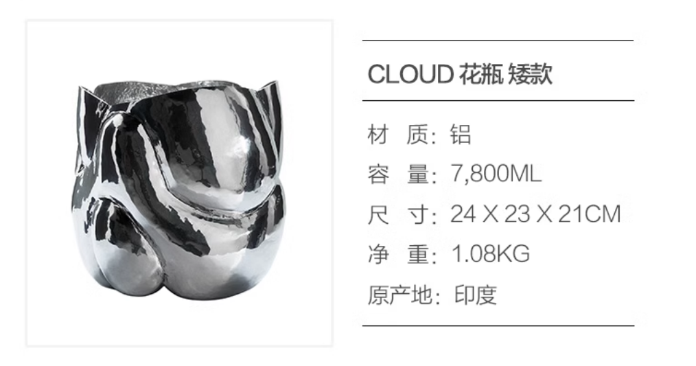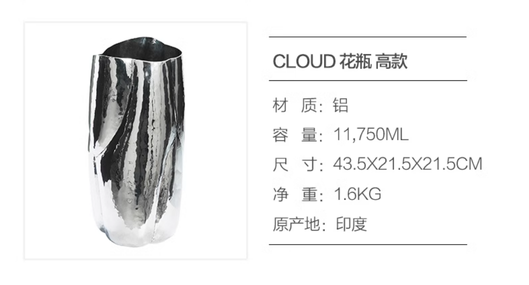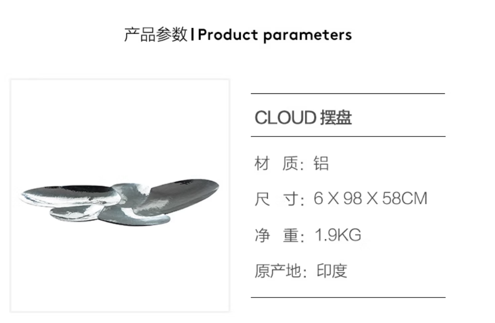 TomDixon cloud金属手工花瓶器皿轻奢家用礼品摆件托盘零食盘果盘