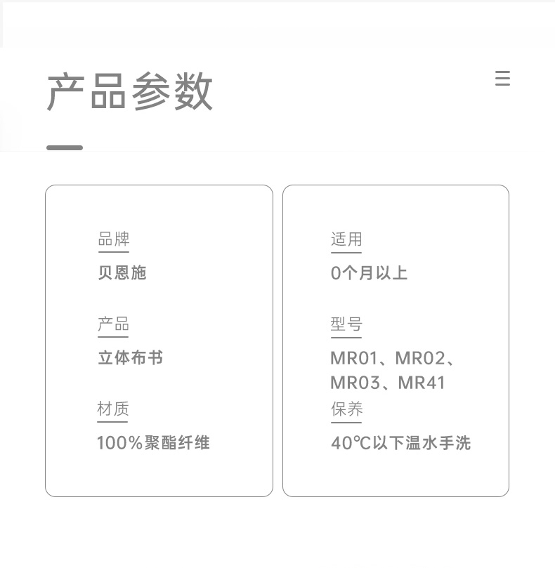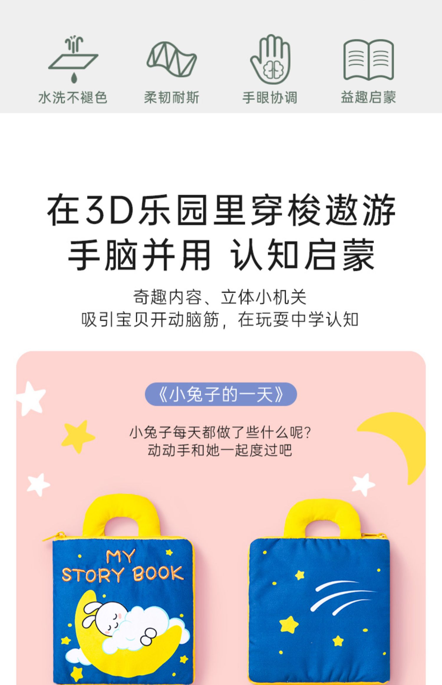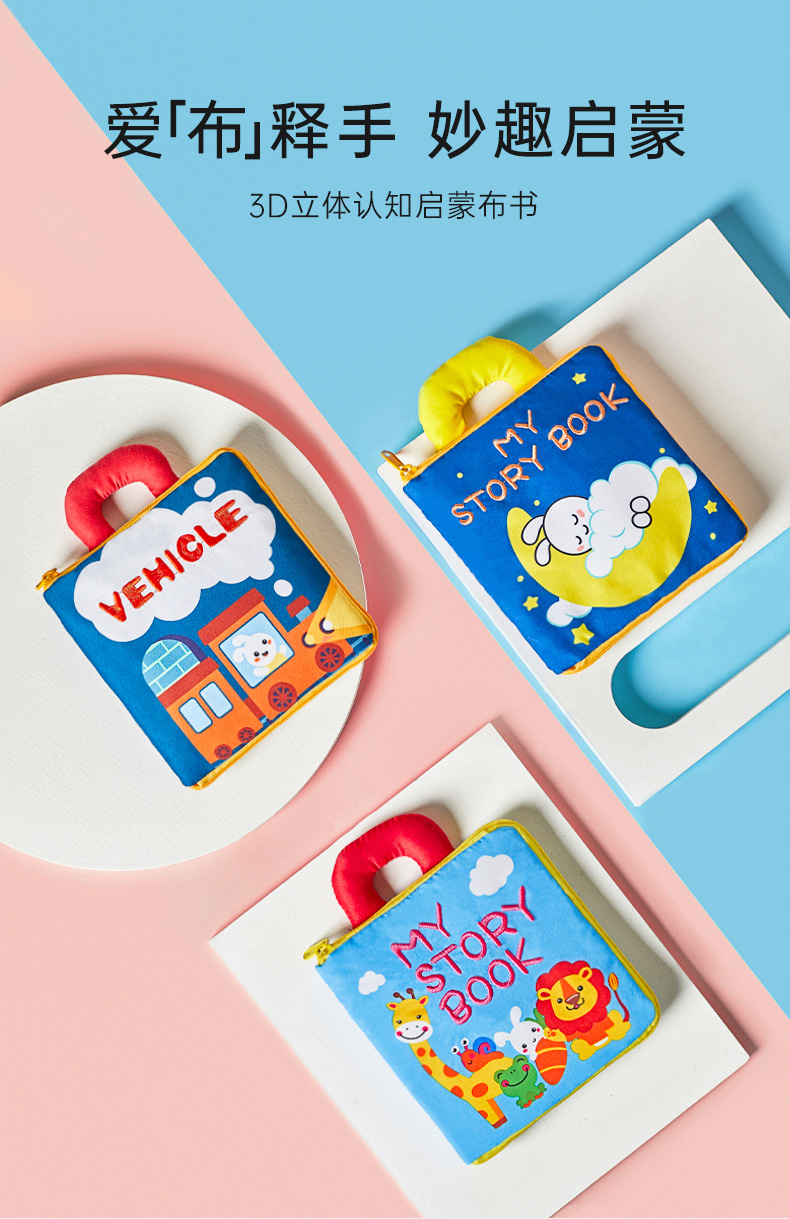 贝恩施宝宝3D立体布书婴儿早教益智撕不烂可咬水洗6-8-12个月玩具