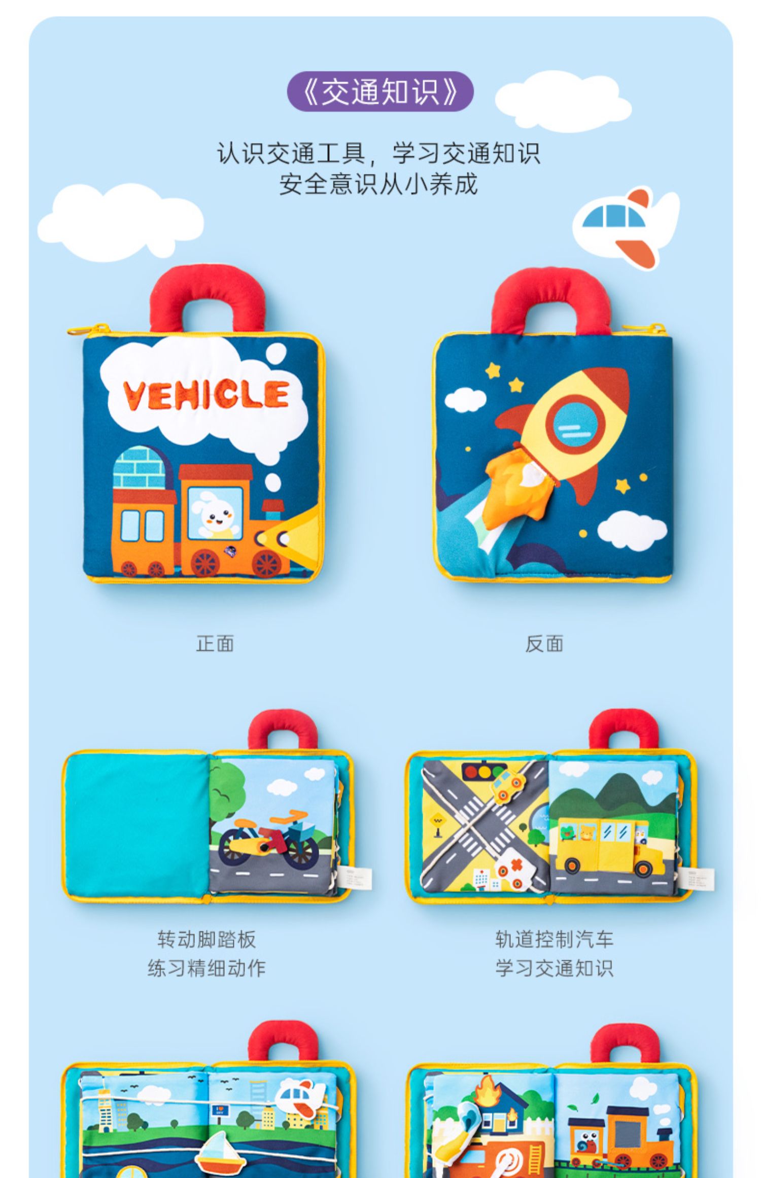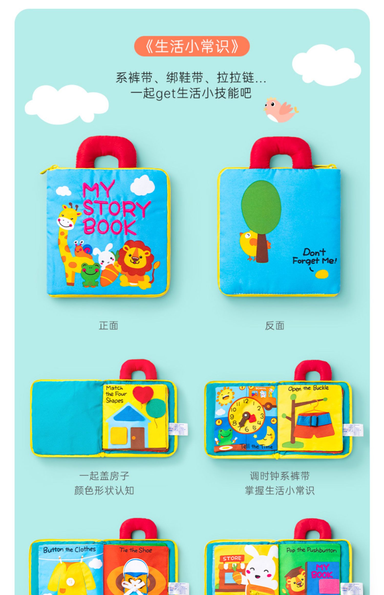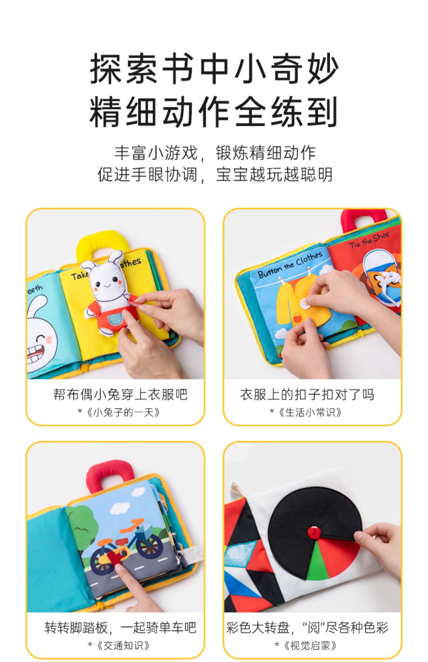 贝恩施宝宝3D立体布书婴儿早教益智撕不烂可咬水洗6-8-12个月玩具