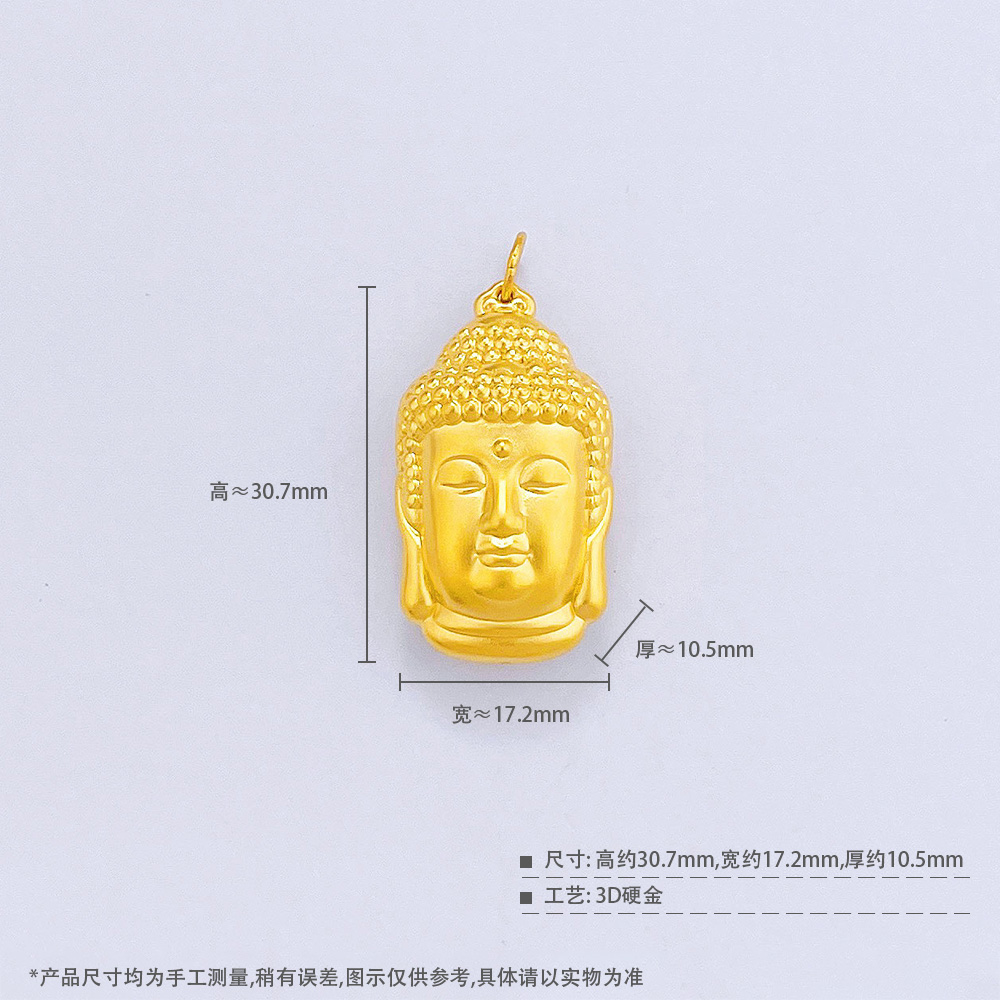 【限时克减150元】足金 #天赐鸿福 【精品】3D硬金仿古法天赐鸿福佛头吊坠佛佑平安吊坠(不含链)(YJDZ00274)(预售产品下单后不退款不退货不换货不补差价)