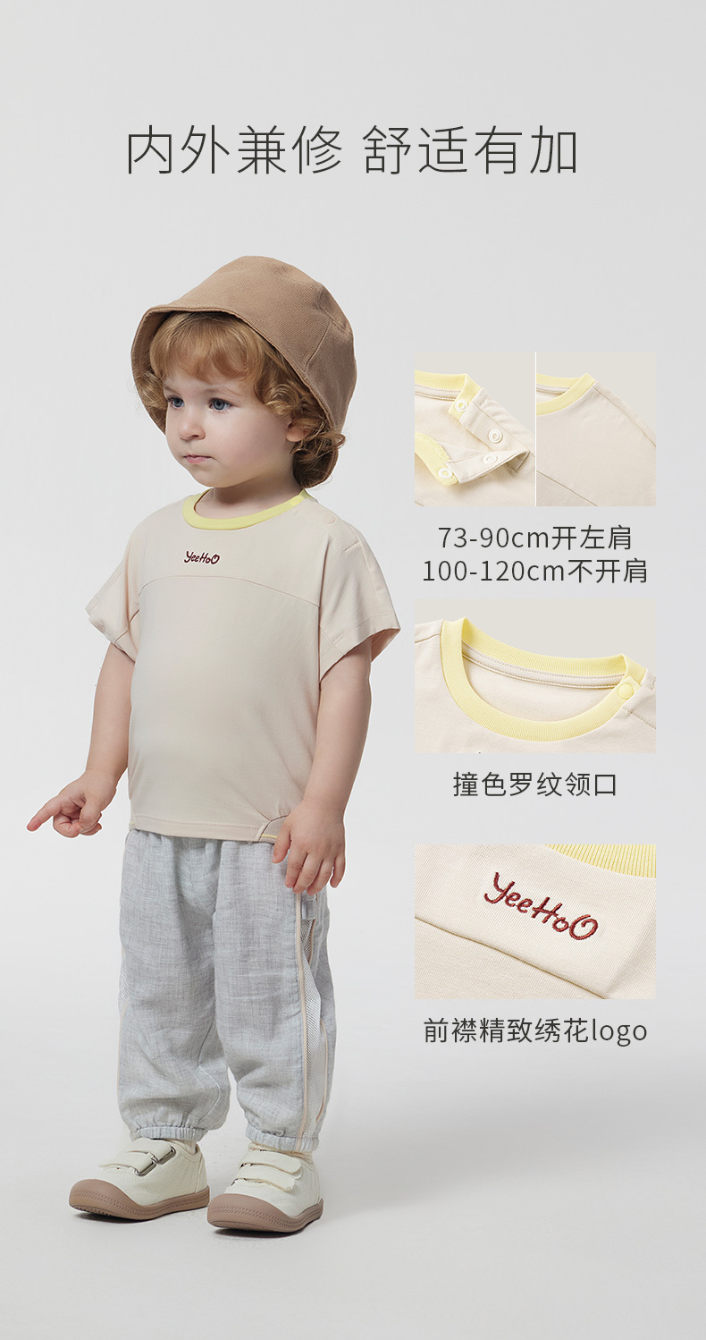 英氏儿童T恤男宝夏装纯棉外出洋气短袖上衣2023新款YRTCJ2P348A