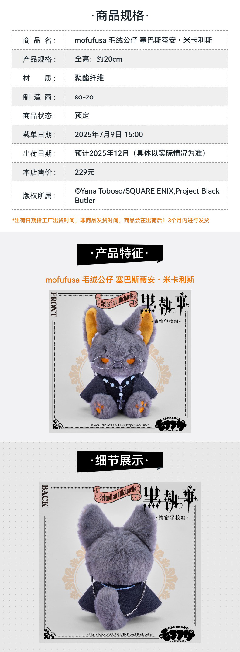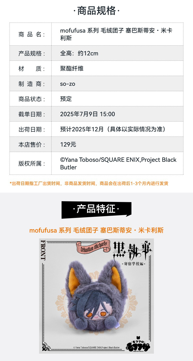 【GSC预售定金】mofufusa 毛绒公仔/团子 塞巴斯蒂安·米卡利斯 黑执事