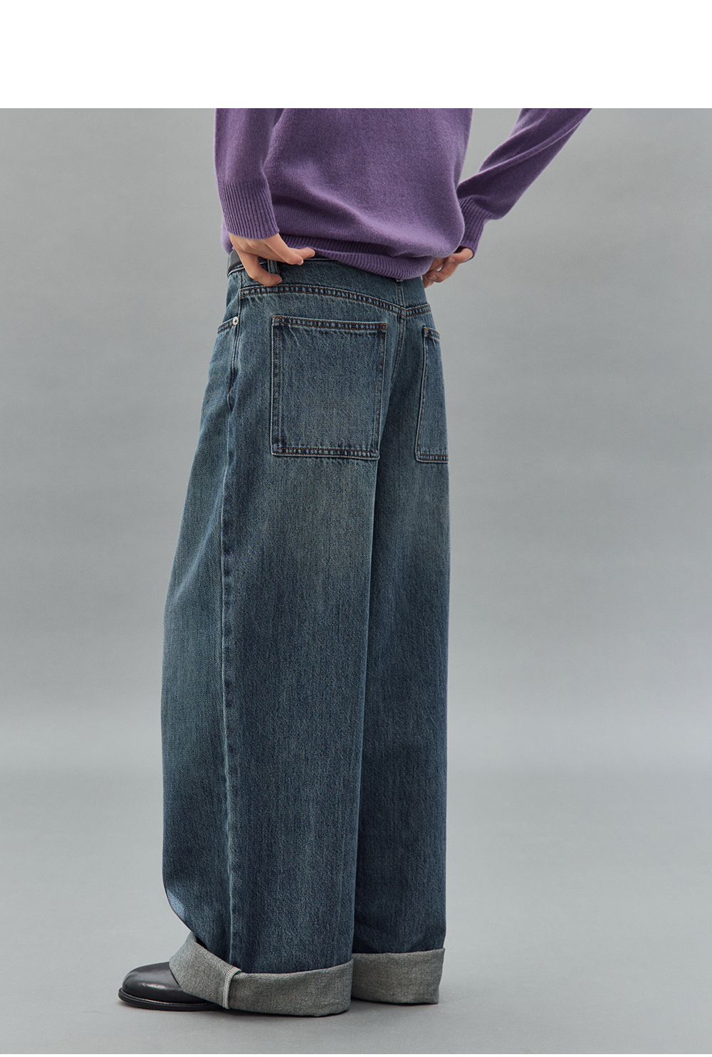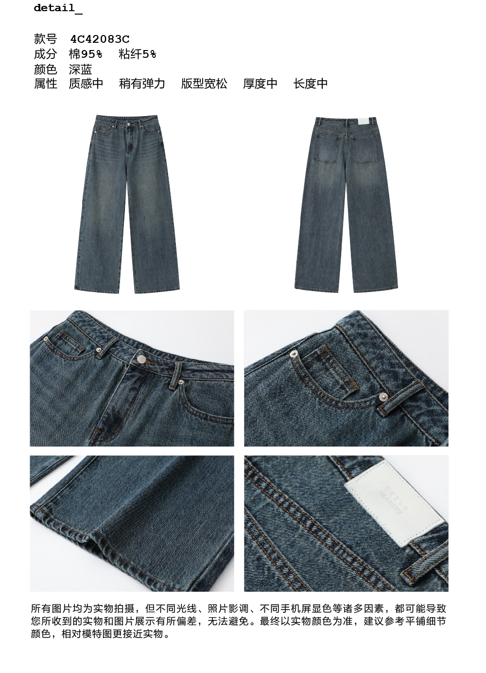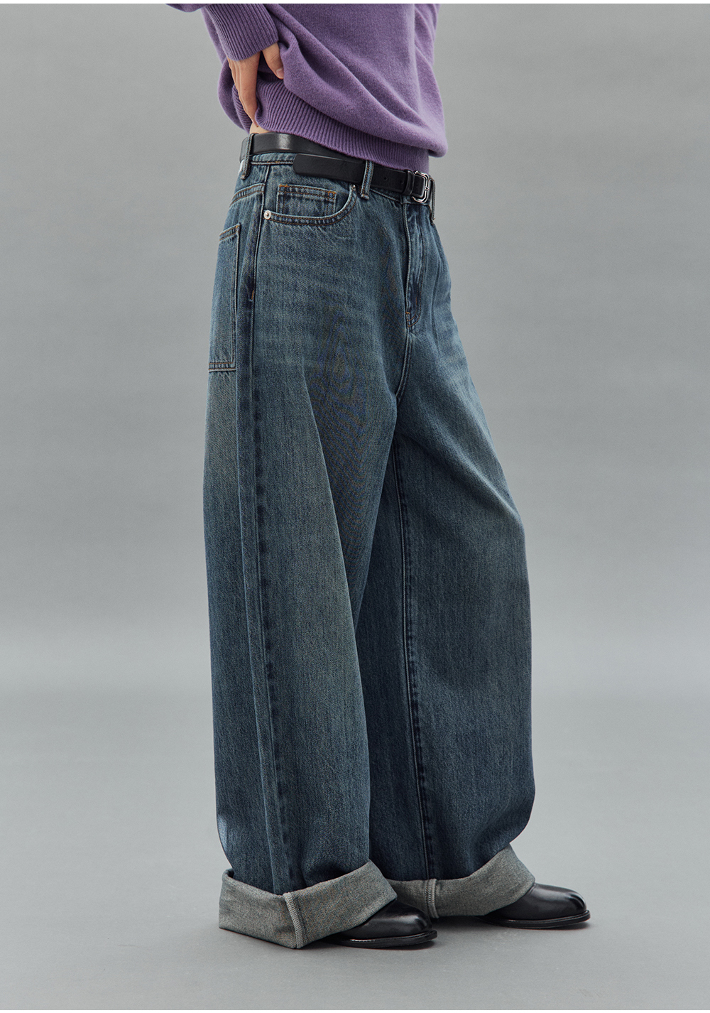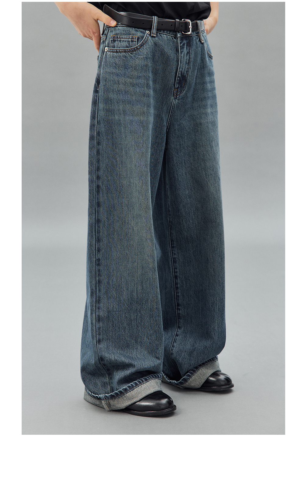 步履不停/4C42083C/美式复古宽松深蓝色牛仔裤