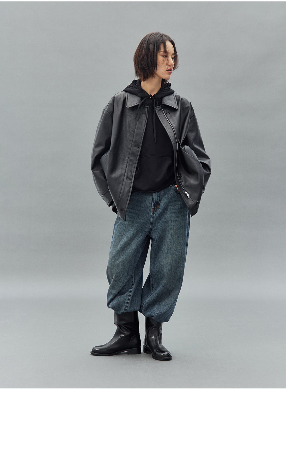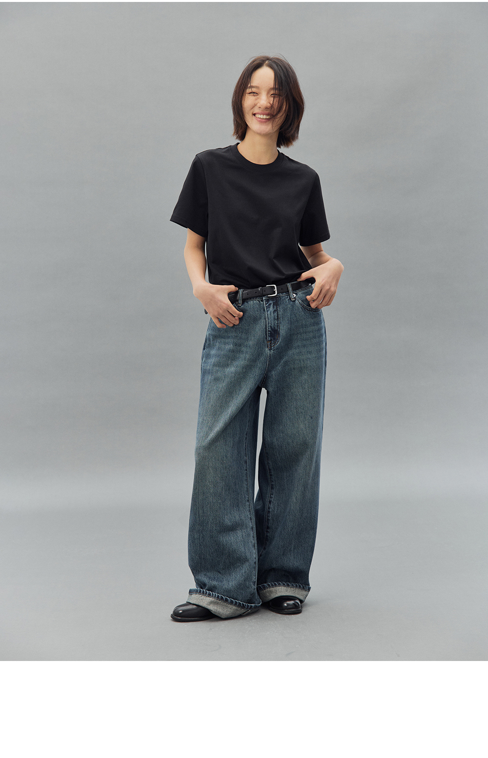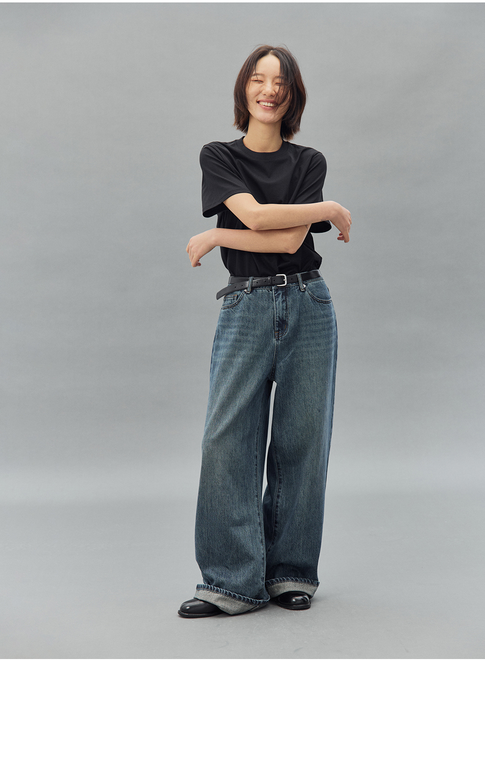 步履不停/4C42083C/美式复古宽松深蓝色牛仔裤