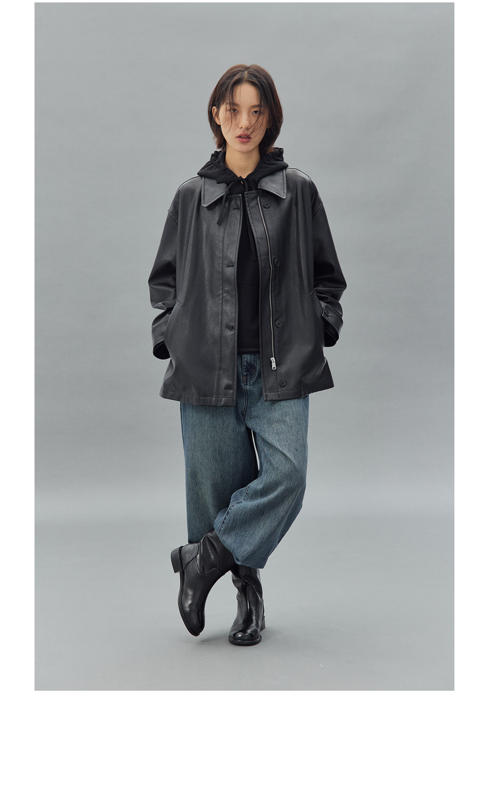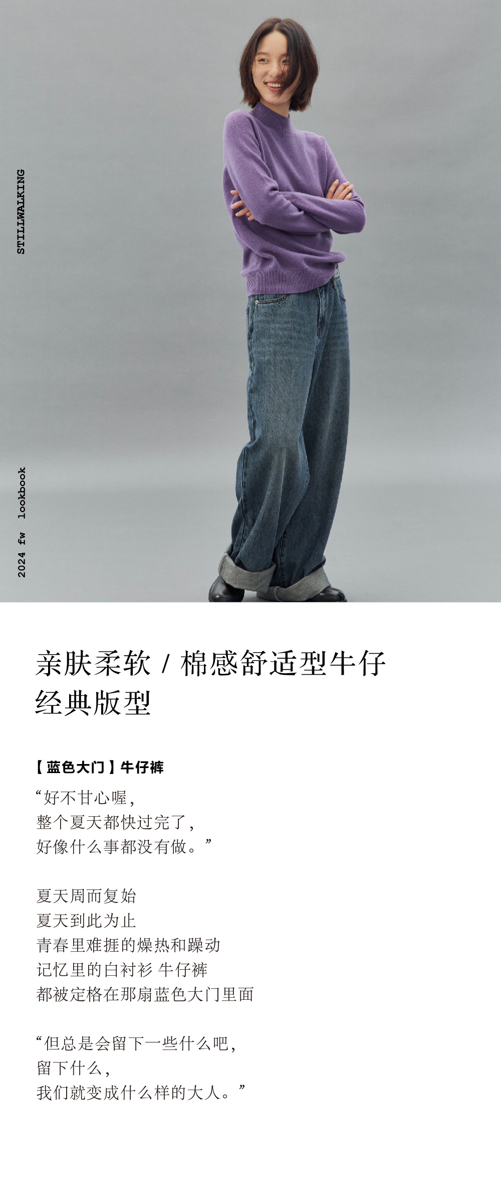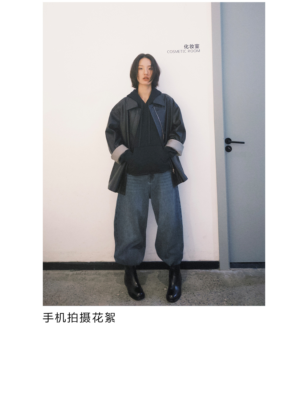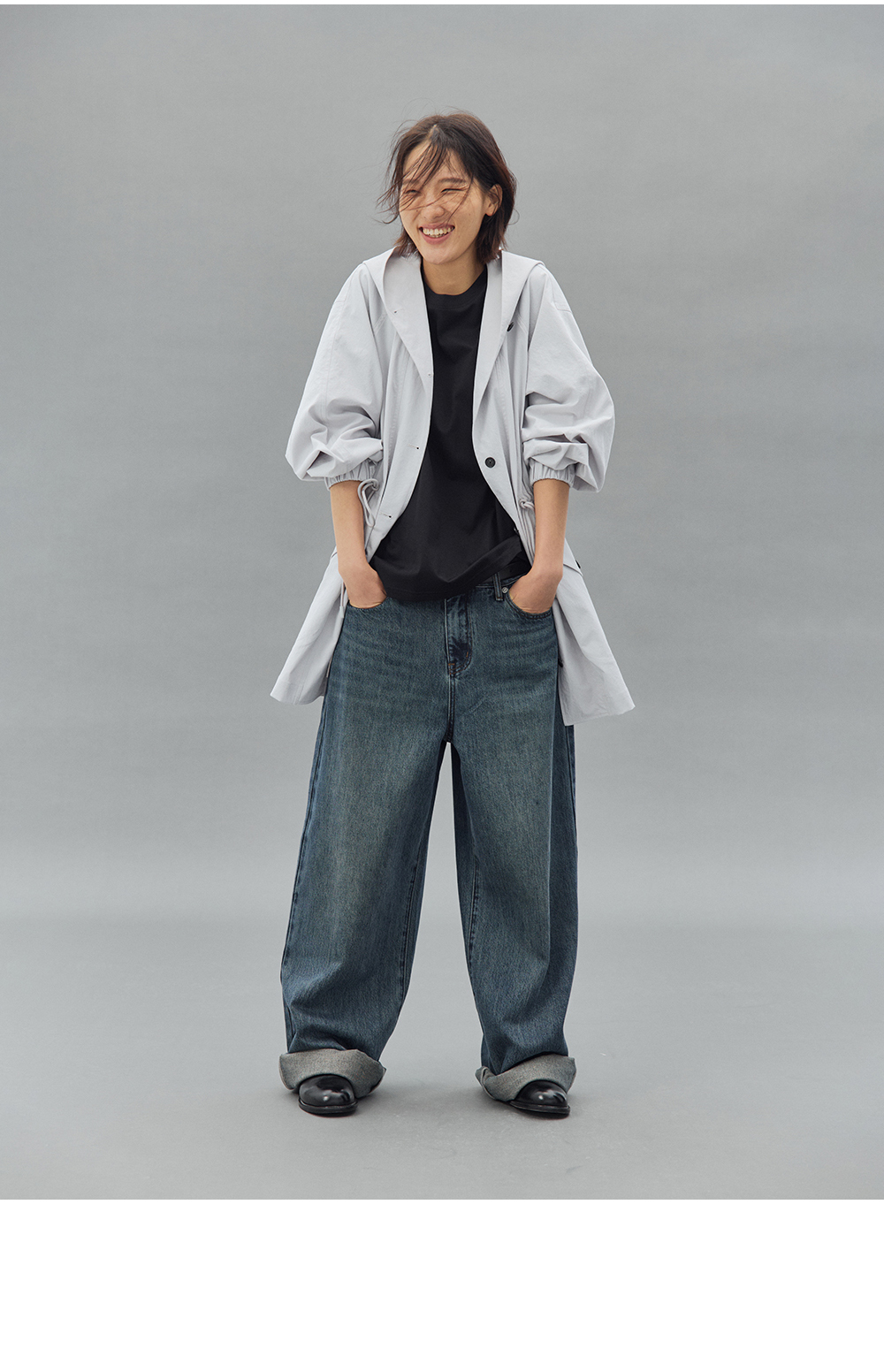 步履不停/4C42083C/美式复古宽松深蓝色牛仔裤