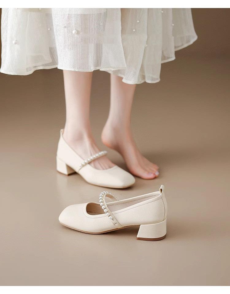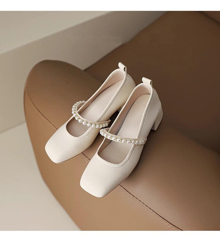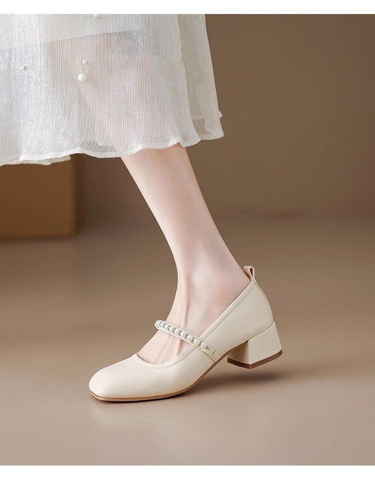 玛丽珍一字带鞋粗跟高跟鞋小皮鞋晚晚鞋韩版时尚单鞋35-40★娃娃优选