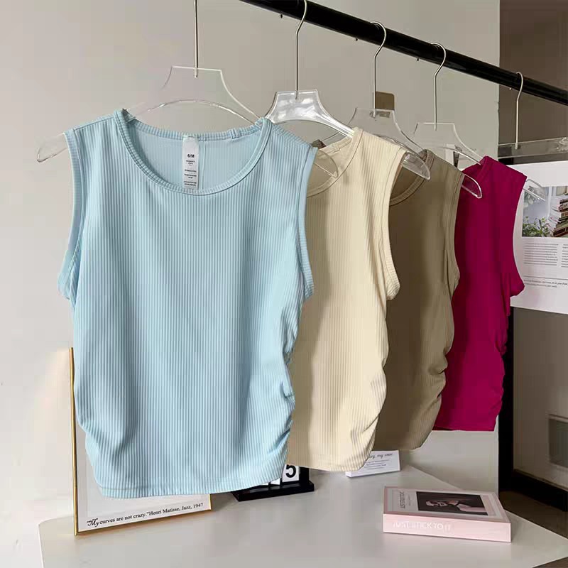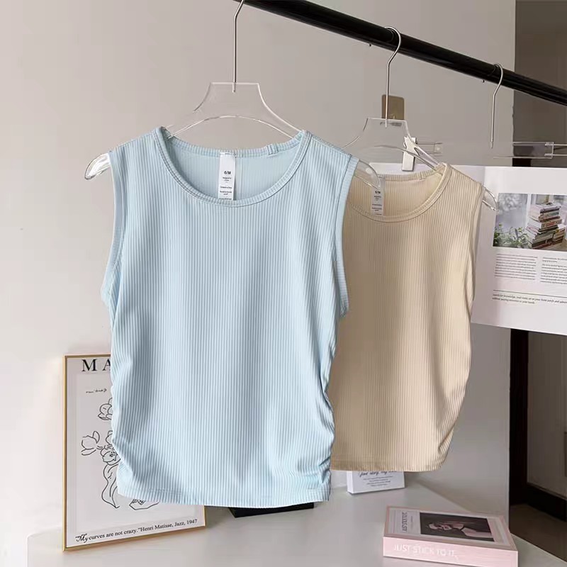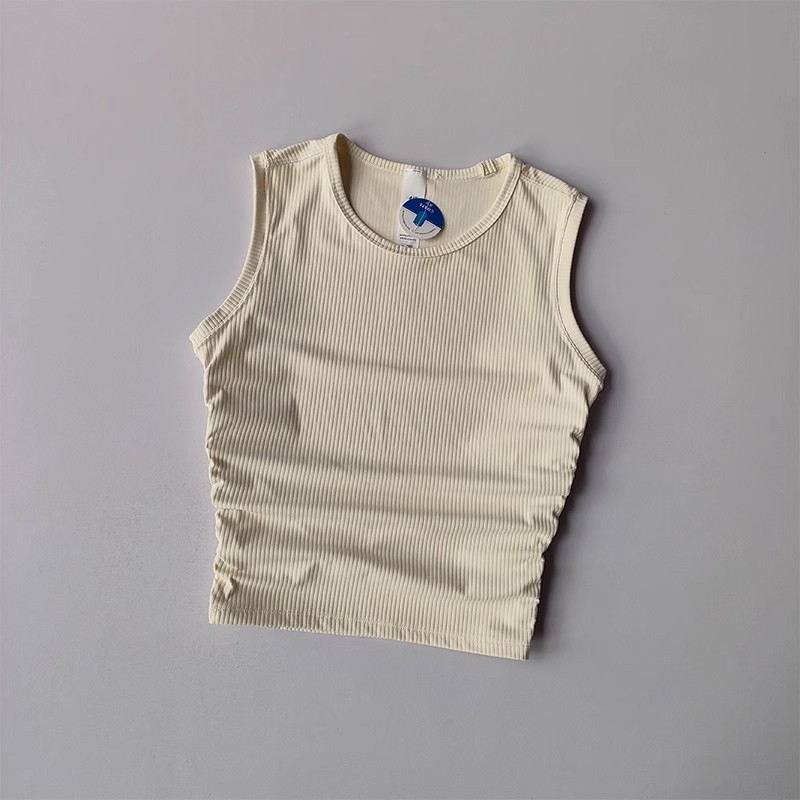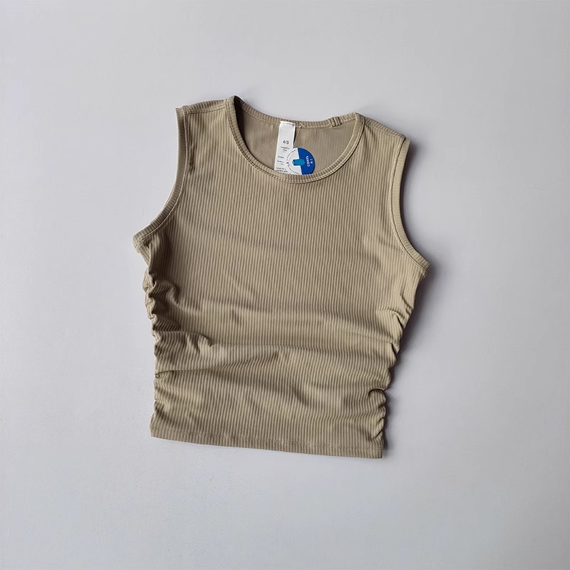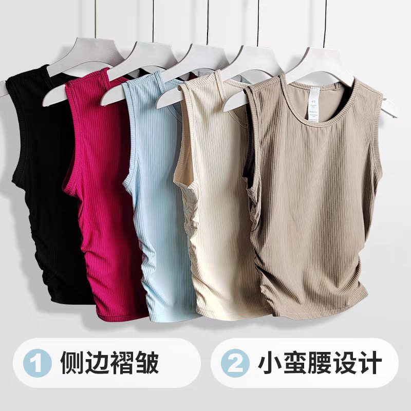 【Lu同款运动背心】夏季外穿 跑步高弹训练健身运动背心 螺纹褶皱显瘦瑜伽服