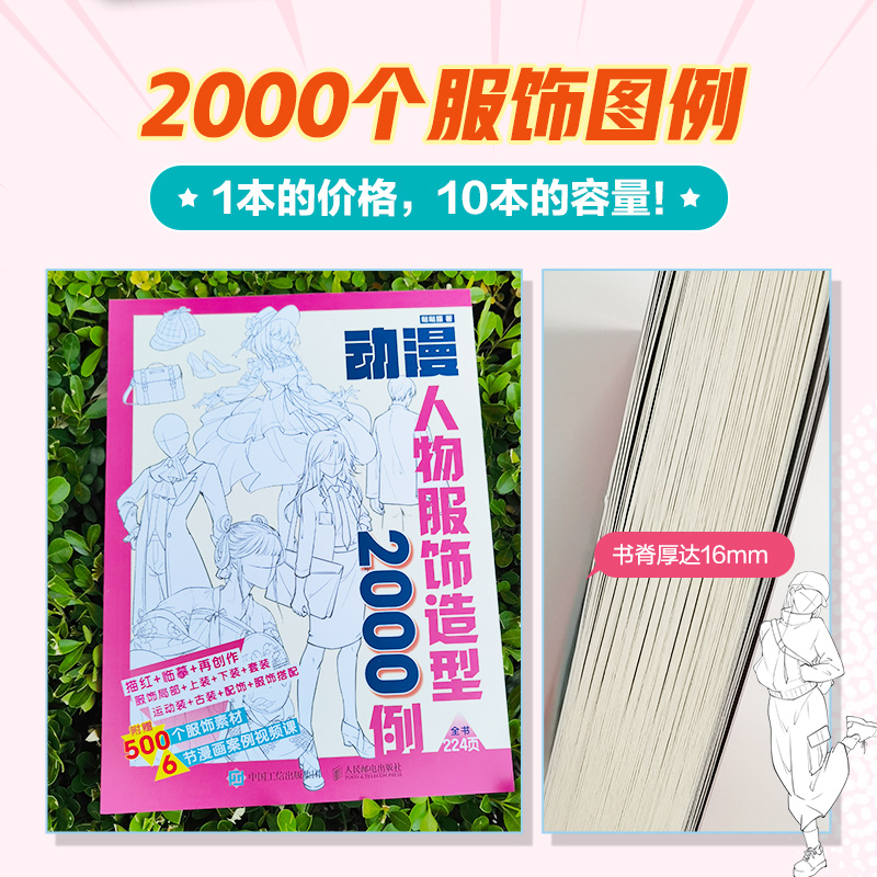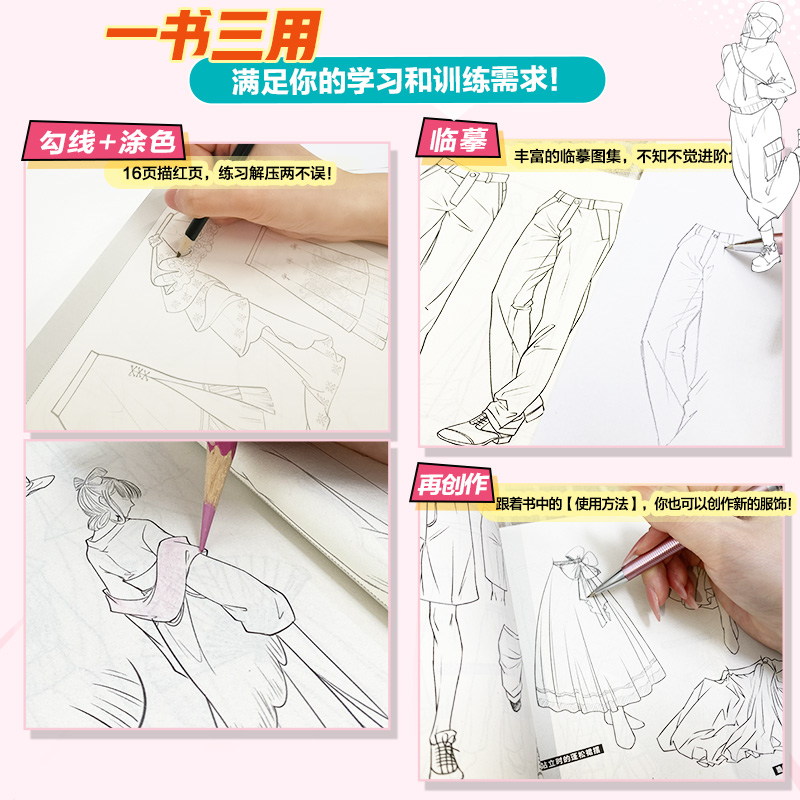 2000个图例,丰富电子赠品,勾线涂色、临摹、再创作 从小白到大神都值得拥有的漫画服饰造型动态集 1.一书三用,满足你的学习和训练需求! ☆勾线和涂色:16页描红页,练习解压两不误! ☆临摹:丰富的临摹图集,不知不觉进阶! ☆再创作:跟着书中的【使用方法】,你也可以为人物造型,创作丰满的人物! 2.2000个服饰图例,赠500个电子人体素材+6节漫画案例视频课,数码创作也不在话下! 3.解决漫画服饰造型的难点、痛点 ☆不会画衣服?没关系! 从服装要素开始,拆解服饰设计和造型 0基础也能快速上手练习 ☆不会画衣褶?没关系! 每种服装提供基础上身三视图,练习不同服装的衣褶画法! ☆只会画T恤?没关系! 2000个服饰图例,从头到脚,从男到女 满足你的练习需求! 12类上装 13类下装 10类套装 10类运动装 5类古装 15类配饰 分类详细,仅“针织衫”便有22种! 更有12类全身造型搭配示例,“人靠衣装”,用完整造型打造丰满人物!