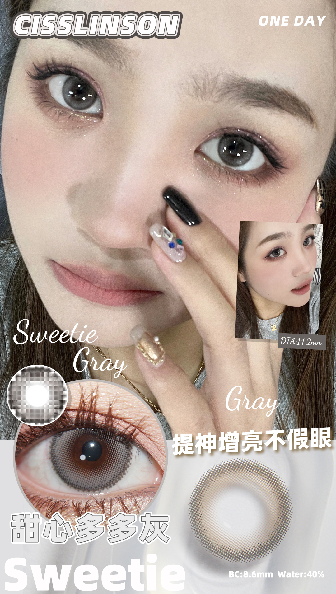 jellibo 甜心多多灰 14.2mm 年抛 非离子 有同款日抛