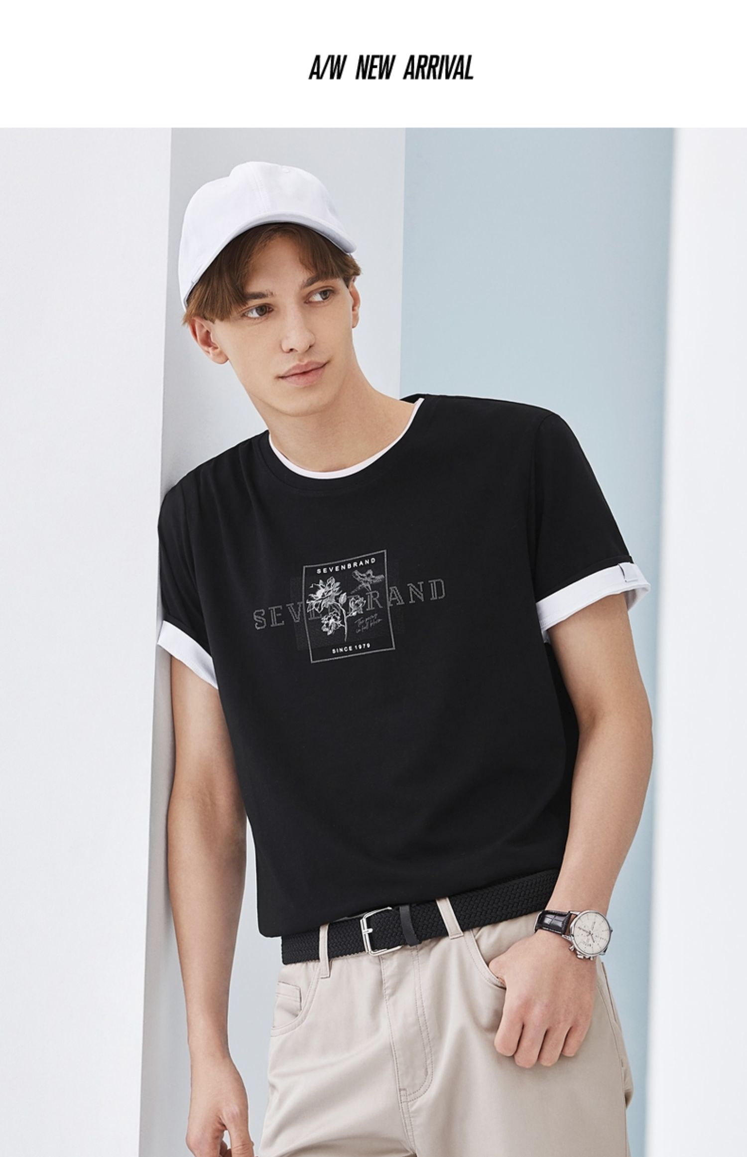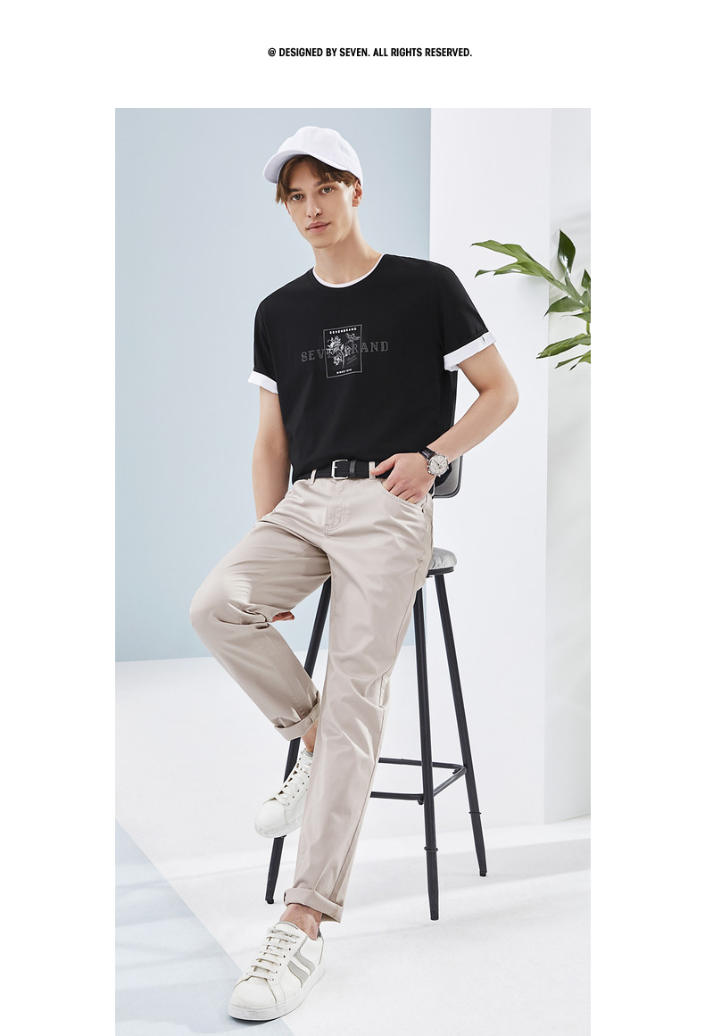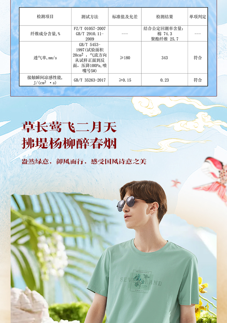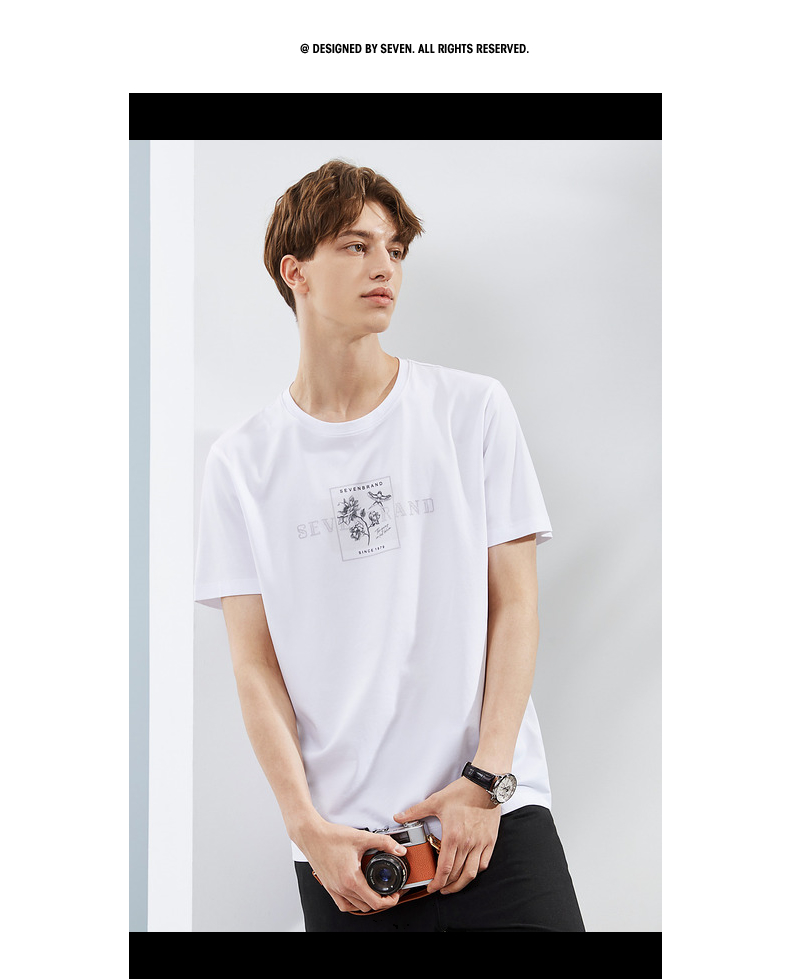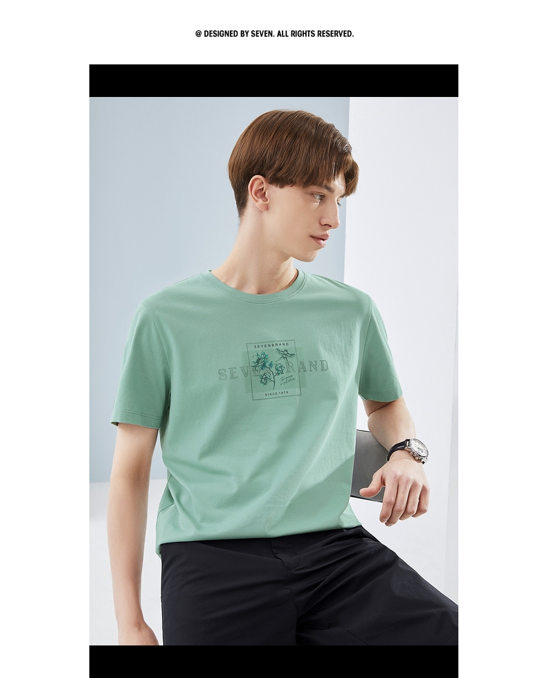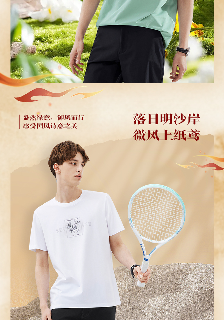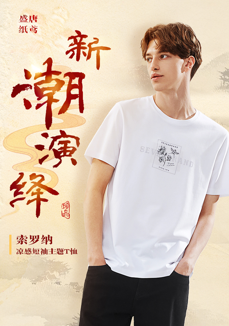 【凉感索罗那】柒牌冰丝短袖T恤男夏季新款国潮印花青年上衣 124T73030