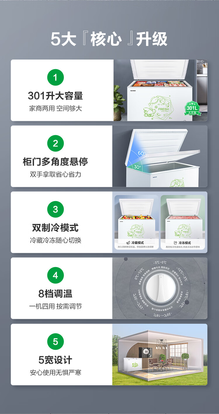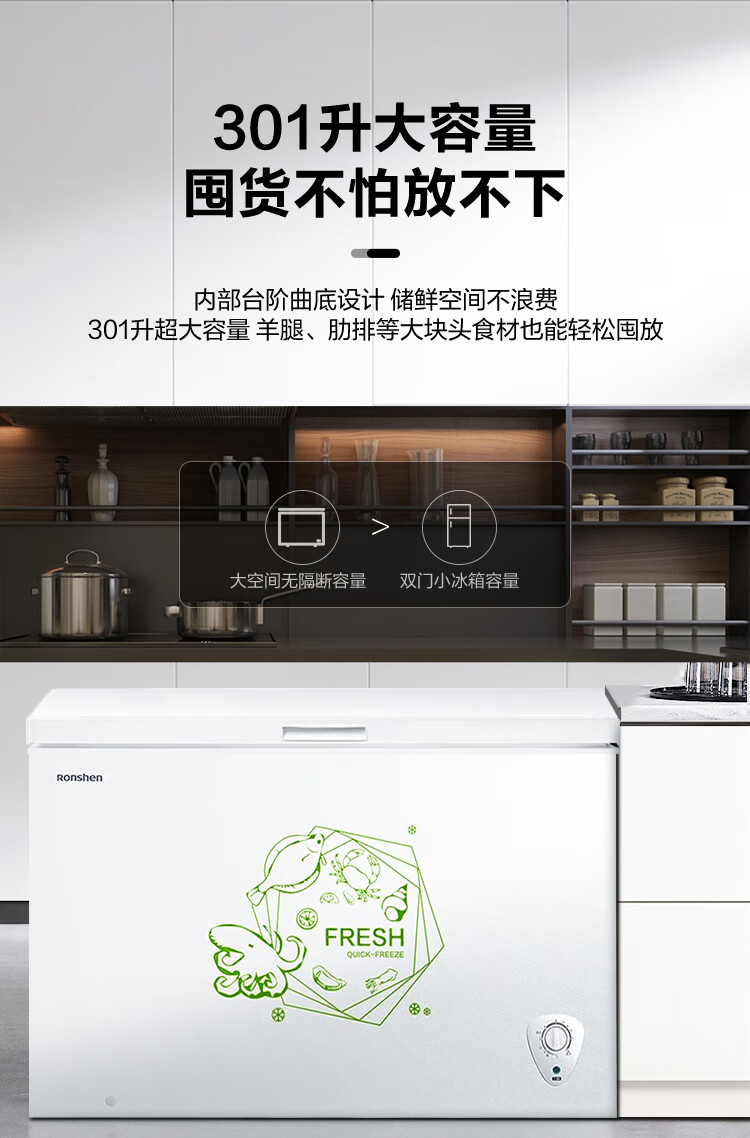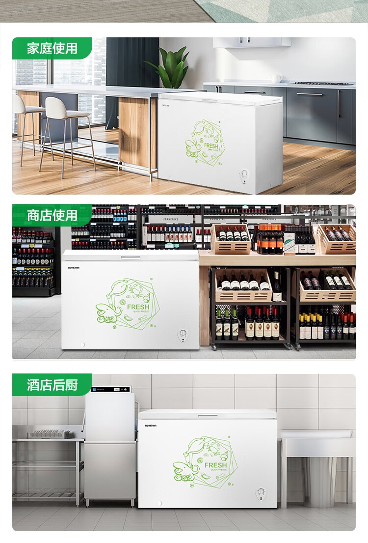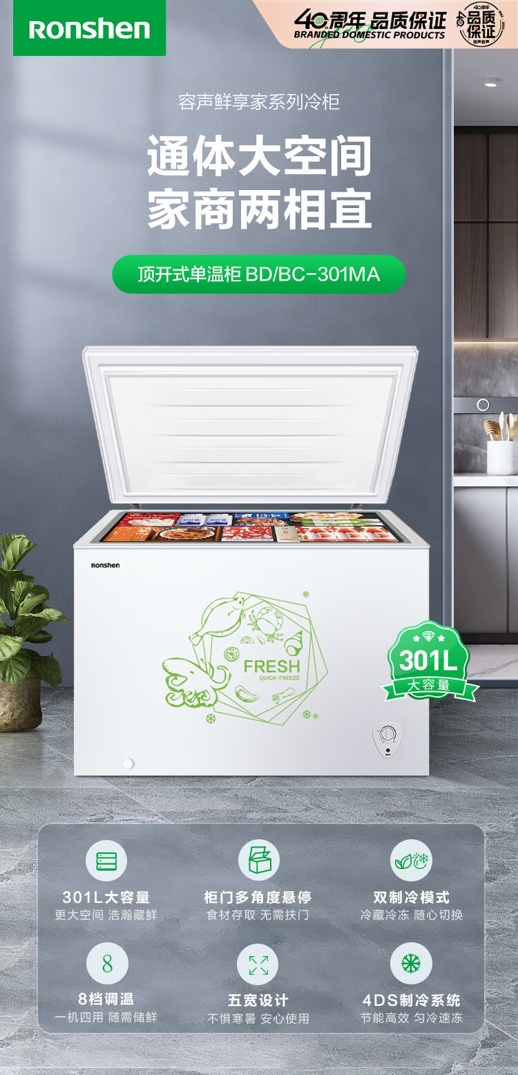 容声(Ronshen) 301升 大容量冰柜 家商两用 冷藏冷冻转换 单温冷柜 厨房雪糕冰箱 大冷冻力BD/BC-301MA